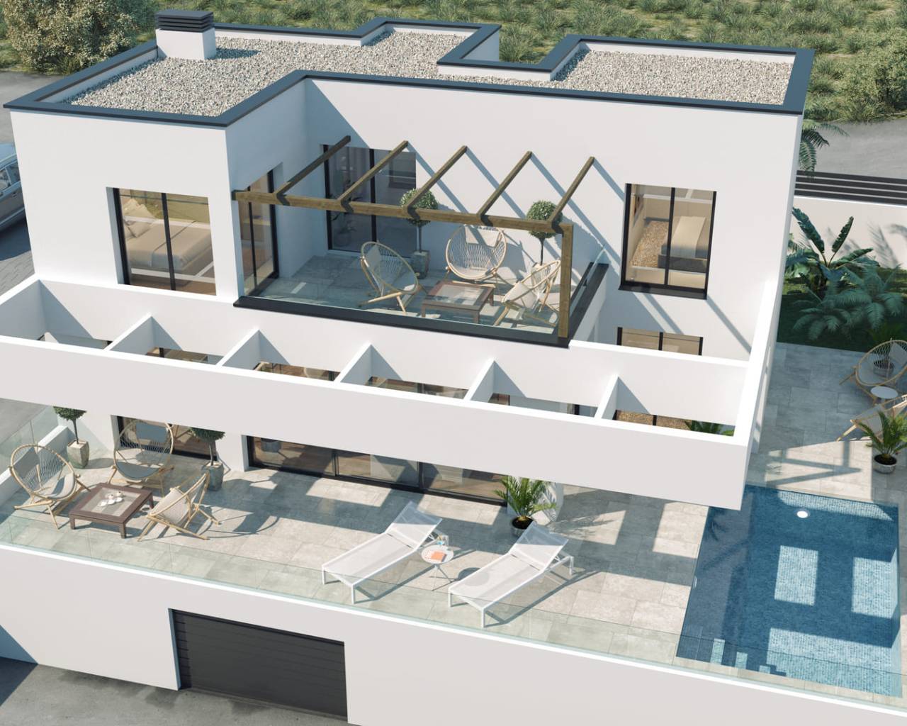 Presentamos un exclusivo proyecto de 10 villas de diseño moderno en Finestrat, con espectaculares vistas al mar y la montaña, situadas cerca del campo de golf Puig Campana. Estas villas están estratégicamente ubicadas a pocos minutos de Finestrat y Benidorm, ofreciendo una combinación perfecta de naturaleza y comodidad. La promoción se desarrollará en dos fases y ofrece viviendas de 1 o 2 plantas con 3 dormitorios, 2 o 3 baños completos, amplio salón-comedor con cocina integrada, lavadero, terraza, jardín, piscina privada, parking exterior y sótanos polivalentes. Las viviendas están construidas con materiales de primera calidad y tecnología de vanguardia, asegurando un hogar moderno y confortable.EXTERIORESLas villas destacan por su diseño contemporáneo y elegante, integrándose armoniosamente con el entorno natural de la Costa Blanca. Las fachadas presentan líneas limpias y minimalistas, complementadas con barandillas de cristal que permiten disfrutar de las vistas sin interrupciones. Los amplios jardines privados están diseñados para ofrecer tranquilidad y privacidad, con una piscina privada que incluye iluminación y una zona de playa con pavimento o césped artificial. Además, algunas villas cuentan con la posibilidad de un solárium opcional, perfecto para relajarse y disfrutar del sol mediterráneo.INTERIORESEl interior de las villas está diseñado para maximizar el confort y la funcionalidad. Los suelos de gres porcelánico de alta calidad aportan un toque de sofisticación a todas las estancias. Las cocinas de diseño minimalista están totalmente equipadas con electrodomésticos modernos y muebles elegantes, integrándose perfectamente con el salón-comedor para crear un espacio diáfano y luminoso. Los dormitorios dobles ofrecen un ambiente acogedor, con armarios y vestidores correderos completamente equipados. Los baños, con acabados de lujo, cuentan con todos los detalles necesarios para el bienestar diario.FINESTRATFinestrat, en la provincia de Alicante, es un lugar que combina la serenidad rural con la proximidad a zonas turísticas populares. Aunque no sea un destino turístico principal, su encanto radica en su belleza natural y su ambiente tranquilo. El turismo en Finestrat se centra en su entorno montañoso y en su proximidad a atracciones como el parque temático Terra Mítica y sus calas cercanas, como Cala Finestrat, ideales para disfrutar del mar. El estilo de vida en Finestrat es apacible y orientado a la naturaleza. Los residentes disfrutan de la vida tranquila en un entorno rural, donde se valora la tranquilidad y se fomenta la cercanía comunitaria. La gastronomía local se basa en platos típicos de la región, con influencias mediterráneas. Finestrat ofrece un ambiente sereno y natural para aquellos que buscan una vida apacible cerca de destinos turísticos reconocidos en la Costa Blanca.