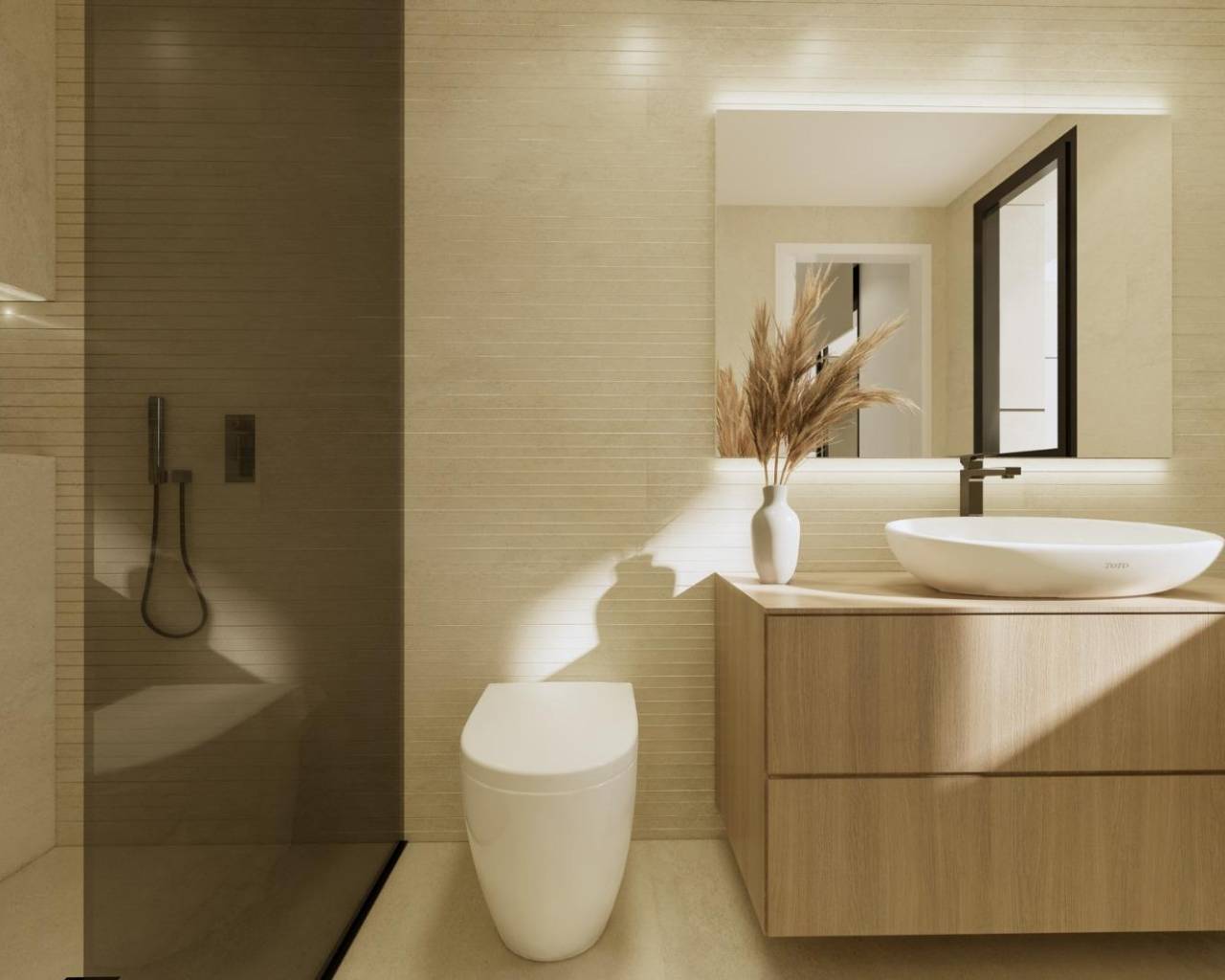 Estas modernas villas de dos plantas han sido diseñadas para ofrecer comodidad, funcionalidad y estilo. En la planta baja, encontrará una luminosa cocina abierta conectada al salón-comedor, con grandes puertas correderas que dan directamente a la terraza y al jardín privado con piscina. La planta baja también cuenta con un dormitorio con baño en suite, un aseo de invitados y una práctica zona de lavandería al aire libre.