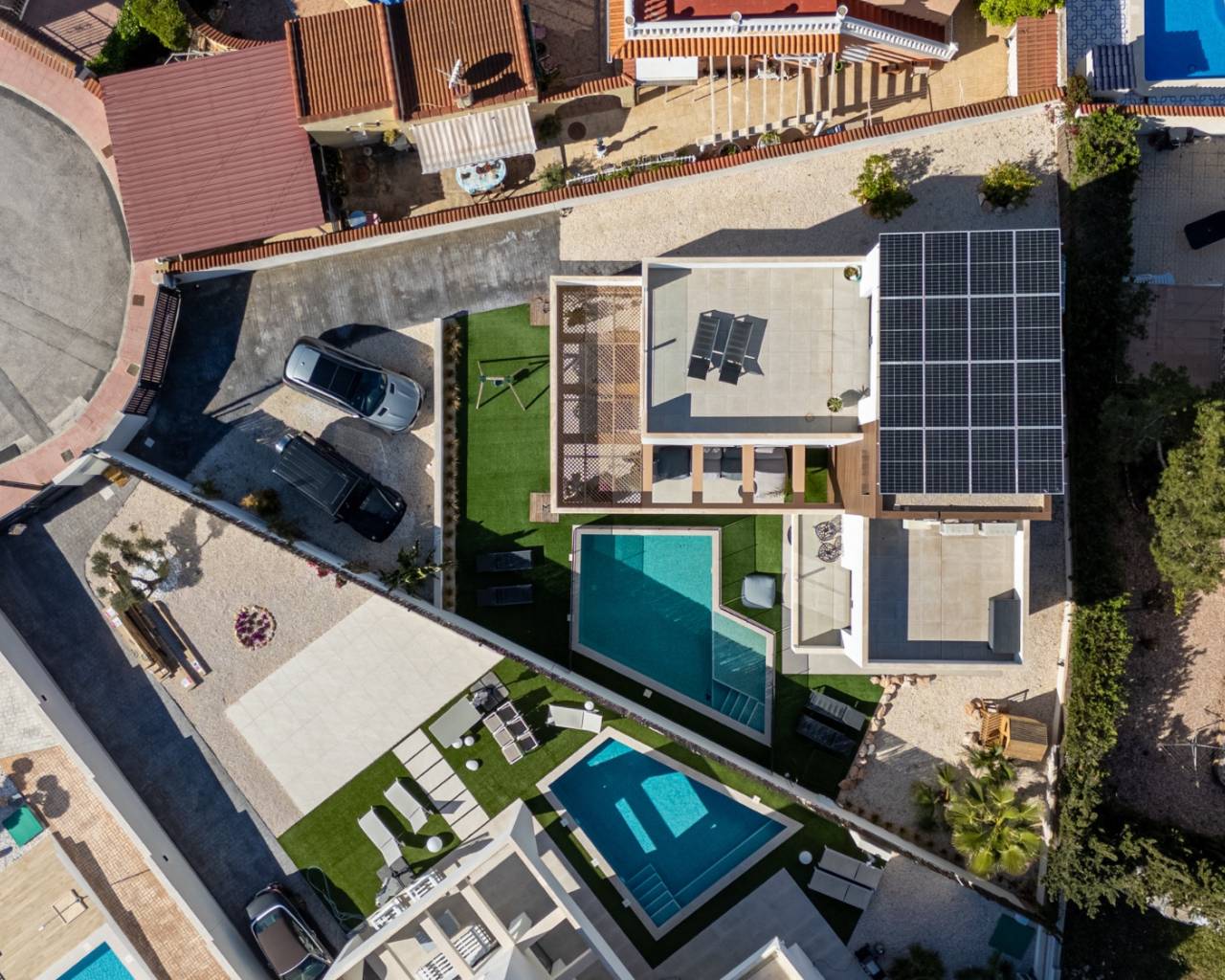 ???? Hermosa villa orientada al sur con vistas panorámicas y piscina privada en Ciudad Quesada Ubicación Esta impresionante villa está situada en una zona tranquila y muy solicitada de Ciudad Quesada. A pesar de su entorno apacible, el animado centro urbano se encuentra a solo 500 metros a pie.La playa de Guardamar está a tan solo 8 km, y el campo de golf La Marquesa se encuentra a 3 km — perfecta para quienes disfrutan del sol, el mar y el golf en la Costa Blanca. La villa está orientada al sur, lo que le permite disfrutar del sol durante todo el día, incluso en los meses de invierno. Distribución Construida en 2020, esta villa ha sido cuidadosamente mantenida.Ofrece cuatro amplios dormitorios y tres baños (con calefacción por suelo radiante), distribuidos en tres plantas. Planta baja: Cocina moderna de concepto abierto con electrodomésticos de alta calidadLuminoso y acogedor salón con grandes ventanales y mucha luz naturalLavadero independiente con lavadora, caldera y espacio de almacenamientoBaño completo y dormitorio amplio con acceso directo al jardín Primera planta: Dormitorio principal con baño en suite y vestidorDormitorio de invitados con balcón orientado al surBaño adicional para invitados Segunda planta: Cuarto dormitorio, actualmente utilizado como oficinaDos amplias terrazas solárium con vistas panorámicas de los alrededores, las lagunas saladas de La Mata y Torrevieja, e incluso una ligera vista al mar Zona exterior La villa cuenta con una piscina privada (sistema de agua salada), ideal para relajarse y disfrutar en los días soleados.También dispone de amplio espacio de aparcamiento en la parcela privada para varios coches.El jardín es de bajo mantenimiento y ofrece privacidad y sol durante todo el día.Gracias a su orientación sur, podrá disfrutar del clima mediterráneo durante todo el año, ideal para estancias en invierno.Las diversas terrazas alrededor de la casa invitan a disfrutar plenamente del estilo de vida al aire libre. Características principales Construida en 2020Calefacción por suelo radiante en los bañosPiscina privada (sistema de agua salada)Orientación sur – sol todo el día, incluso en inviernoPaneles solares – eficiente y sostenibleAparcamiento privado para varios vehículosVistas panorámicas a las lagunas saladas y los alrededoresA solo 8 km de la playa y 3 km del campo de golf La Marquesa Resumen Una villa moderna y lista para entrar a vivir, situada en una excelente ubicación, que ofrece lujo, comodidad y estilo.Con su piscina privada, orientación sur, vistas panorámicas y proximidad a la playa y al golf, esta propiedad es ideal para quienes buscan una casa de ensueño en la Costa Blanca.