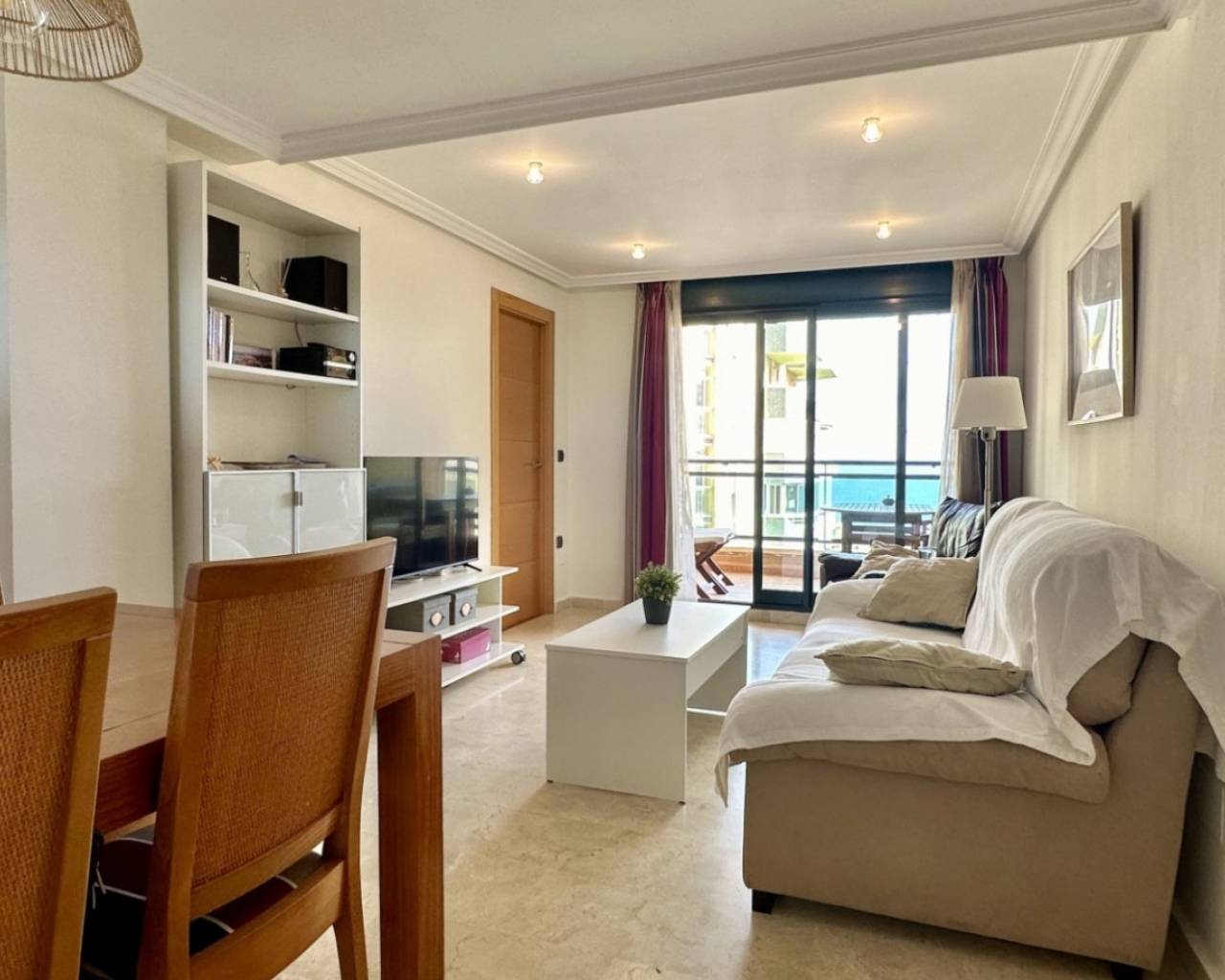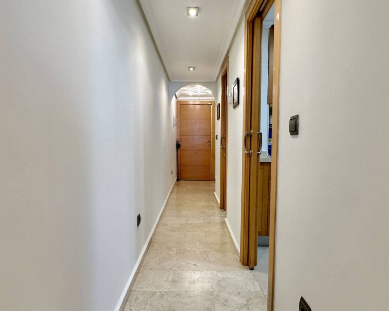 Descubre un apartamento luminoso y cómodo, situado a solo 100 metros del mar en una de las mejores zonas de Guardamar. Ubicado en una segunda planta con ascensor, ofrece vistas al mar desde el salón y el dormitorio principal, orientado al este. Con una superficie total de 78 m², la vivienda cuenta con un amplio salón, una cocina moderna completamente equipada con encimera de Silestone, placa de inducción, lavavajillas, sistema de ósmosis, campana plana y una gran despensa con luz automática. Dispone de dos dormitorios y dos baños, uno de ellos en suite con bañera. El segundo baño incluye columna de hidromasaje y grifería termostática. Las puertas correderas en cocina y baños optimizan el espacio. Entre sus extras destacan armarios empotrados, iluminación LED en toda la vivienda, aire acondicionado central renovado, colchones nuevos, televisores LED de 43" y 32", internet, caja fuerte, toldo renovado este año y un amplio trastero. La plaza de garaje está incluida. Situado muy cerca de restaurantes, supermercados y colegios, este hogar ofrece comodidad, vistas al mar y un auténtico estilo de vida mediterráneo — a solo 100 metros de la playa.