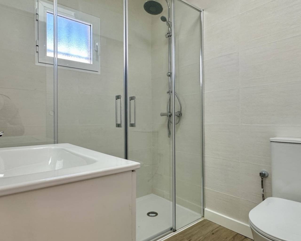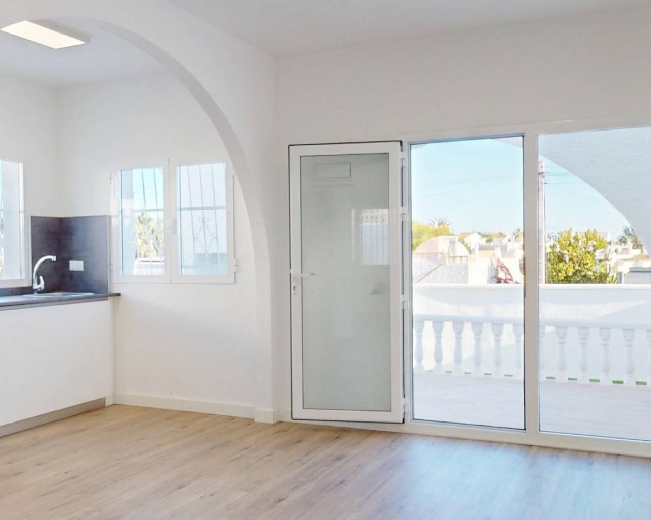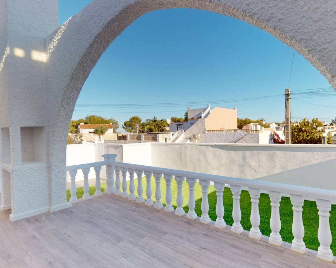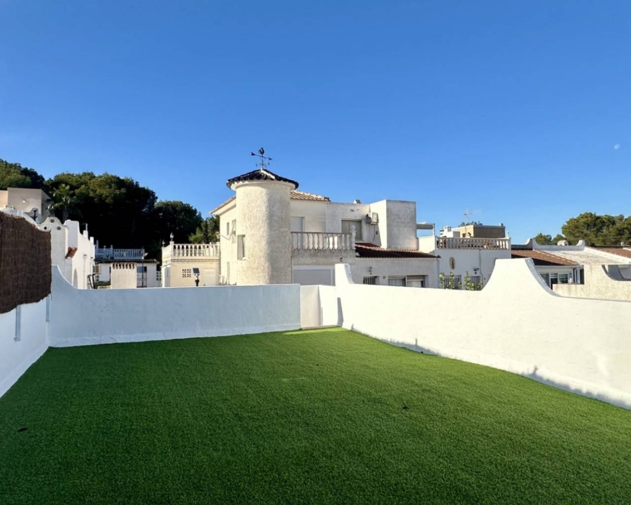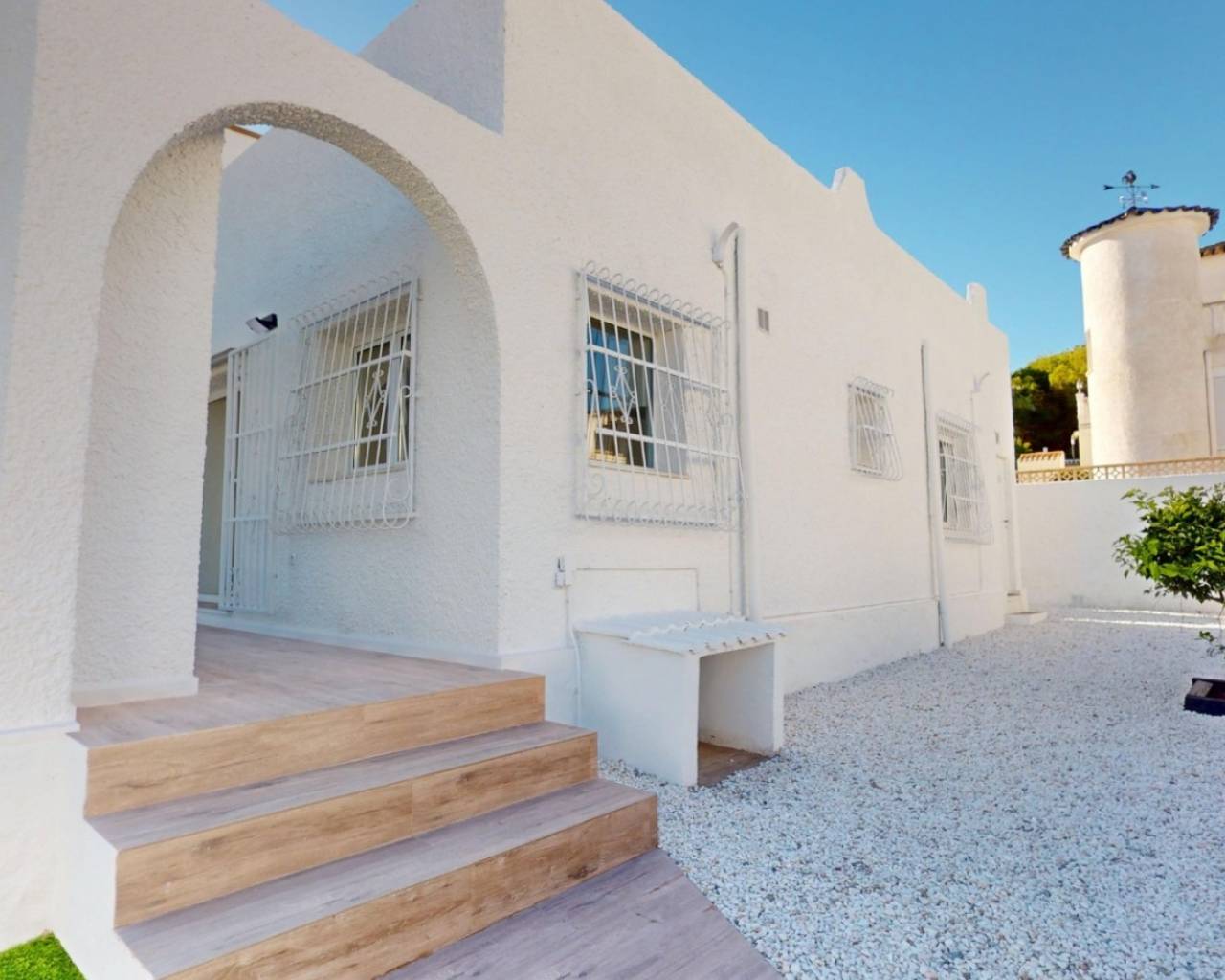 Bungalow completamente reformado y a estrenar, ubicado en una parcela de 202 m² con 147 m² de jardín privado, interiores modernos y un soleado solárium de 48 m² ideal para disfrutar todo el año. Características Principales Vivienda: 58 m² + 48 m² de soláriumParcela: 202 m²Trastero incluidoOpción de piscina privadaIBI: 144 € / añoComunidad: aprox. 199 € / año Detalles de la Reforma Suelo laminado efecto madera2 dormitorios1 baño moderno con ducha y mamparaCocina totalmente equipada con lavadora y lavavajillasSolárium con césped artificial y cerramiento lateral Ubicación – Blue Lagoon (Calle Jumilla) A 4 min a pie del Colegio El LimonarCerca de dos campos de golfPróximo al Centro Comercial VillamartínA 5 min del Marimba Blue Pool & Lounge BarA 4 min de Greenlands Blue Lagoon
