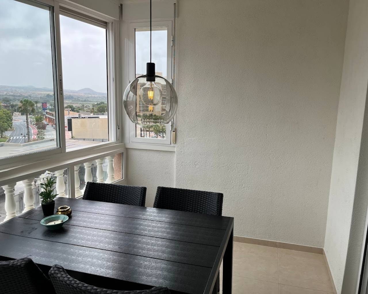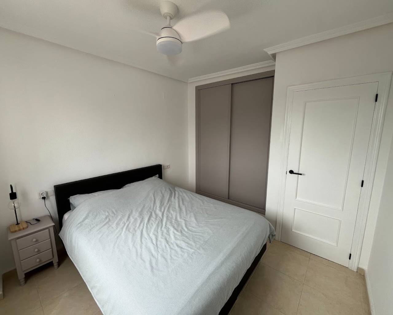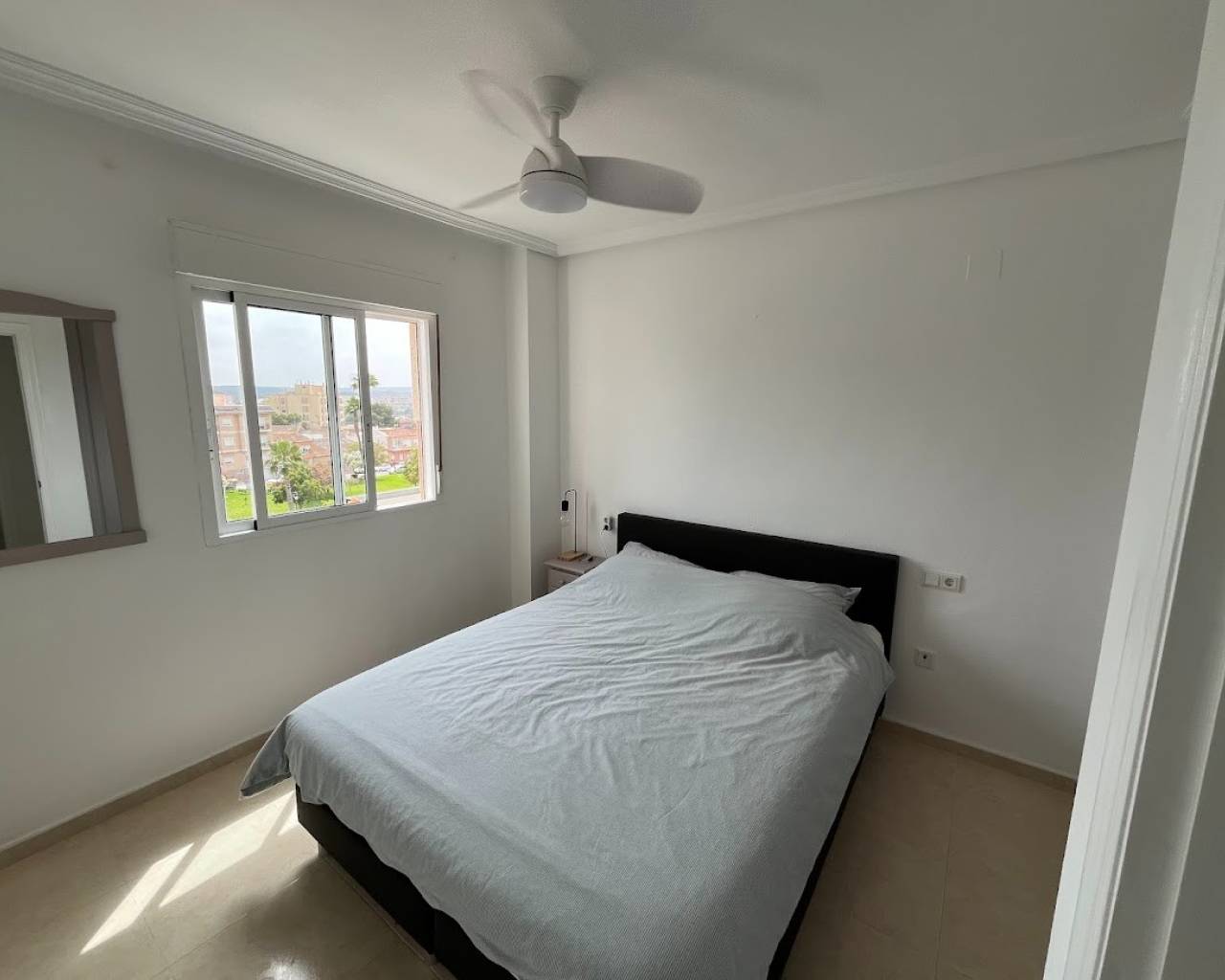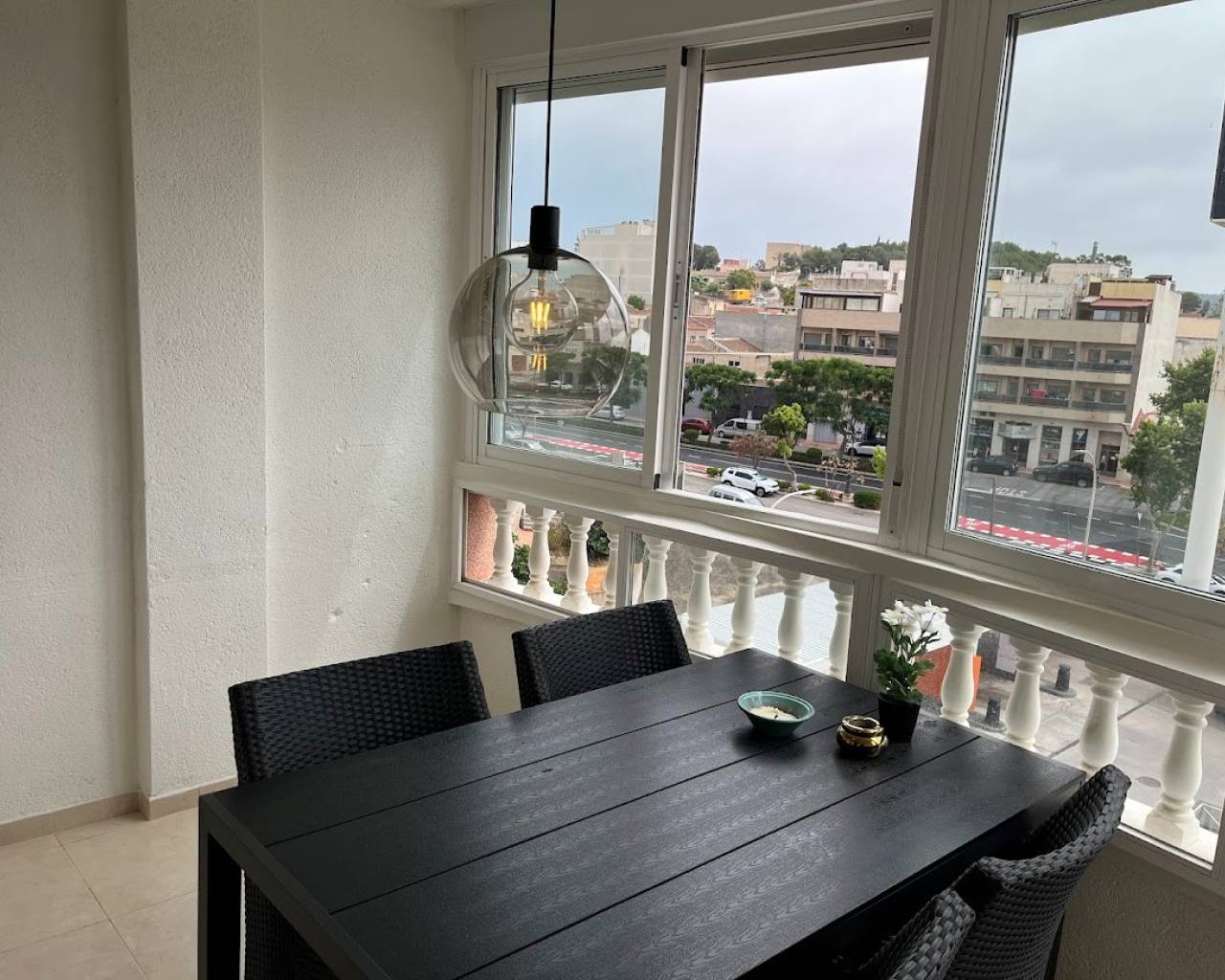 Bienvenido a este elegante apartamento totalmente amueblado, situado en una ubicación privilegiada en Guardamar del Segura, a poca distancia tanto del centro como de la playa. El apartamento se encuentra en la quinta planta de un cuidado complejo de apartamentos y es fácilmente accesible mediante un amplio ascensor. La vivienda cuenta con dos cómodas habitaciones, un moderno cuarto de baño, un luminoso salón y una cocina independiente de estilo contemporáneo. En la parte delantera hay un amplio balcón orientado al sur. En invierno, el balcón es el lugar ideal para comer con las ventanas abiertas, mientras que en verano se puede abrir completamente para disfrutar al máximo del sol. El complejo ofrece comodidades adicionales con aparcamiento cerrado, un amplio ascensor y una piscina comunitaria. Distribución y equipamiento Aire acondicionado central (frío/calor) Internet rápido (wifi) Salón con cómodo sofá y smart TV con Chromecast. Cocina totalmente equipada con nevera/congelador, placa de inducción, lavavajillas, cafetera Senseo y vajilla completa. Dormitorio 1 con cama doble con somier y amplio armario empotrado. Dormitorio 2 con dos camas individuales y armario. Cuarto de baño moderno con ducha espaciosa, inodoro y lavabo en la lavadora. Gran balcón orientado al sur, que se puede cerrar con paneles de cristal en invierno. Ropa de cama, toallas y todo lo necesario. Entorno A solo 250 metros hay un gran supermercado para las compras diarias y bocadillos. El acogedor centro de Guardamar del Segura está abierto al público a 10 minutos a pie, en una calle con restaurantes, bares de tapas y bares en restaurantes, en un bulevar ajardinado con una hermosa playa. Además, las dunas invitan a dar bonitos paseos hacia las tranquilas playas de arena y el puerto deportivo. Todos los miércoles hay un animado mercado semanal con productos frescos, ropa y accesorios. El transporte público es muy accesible: junto al supermercado hay una parada de autobús que le llevará al centro y a la playa por un módico precio. Desde la estación central de autobuses se puede viajar fácilmente a Alicante, Torrevieja, Santa Pola y otros lugares atractivos de la región.