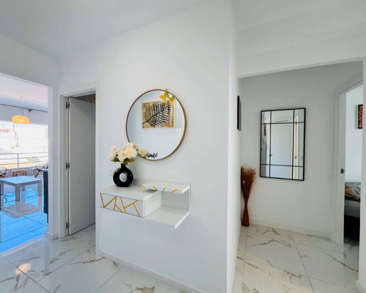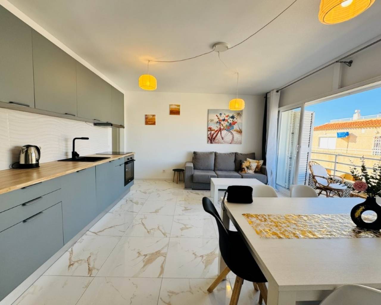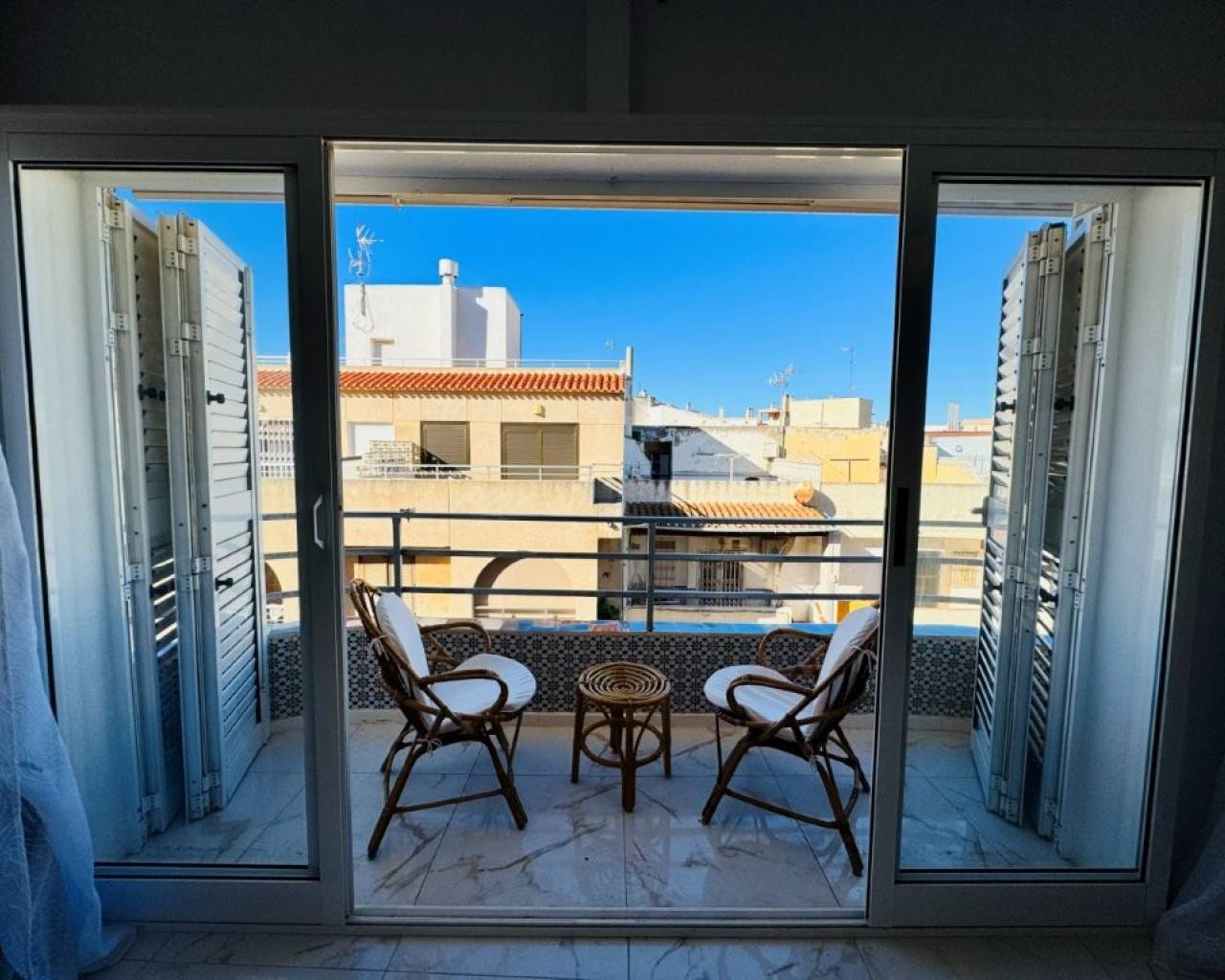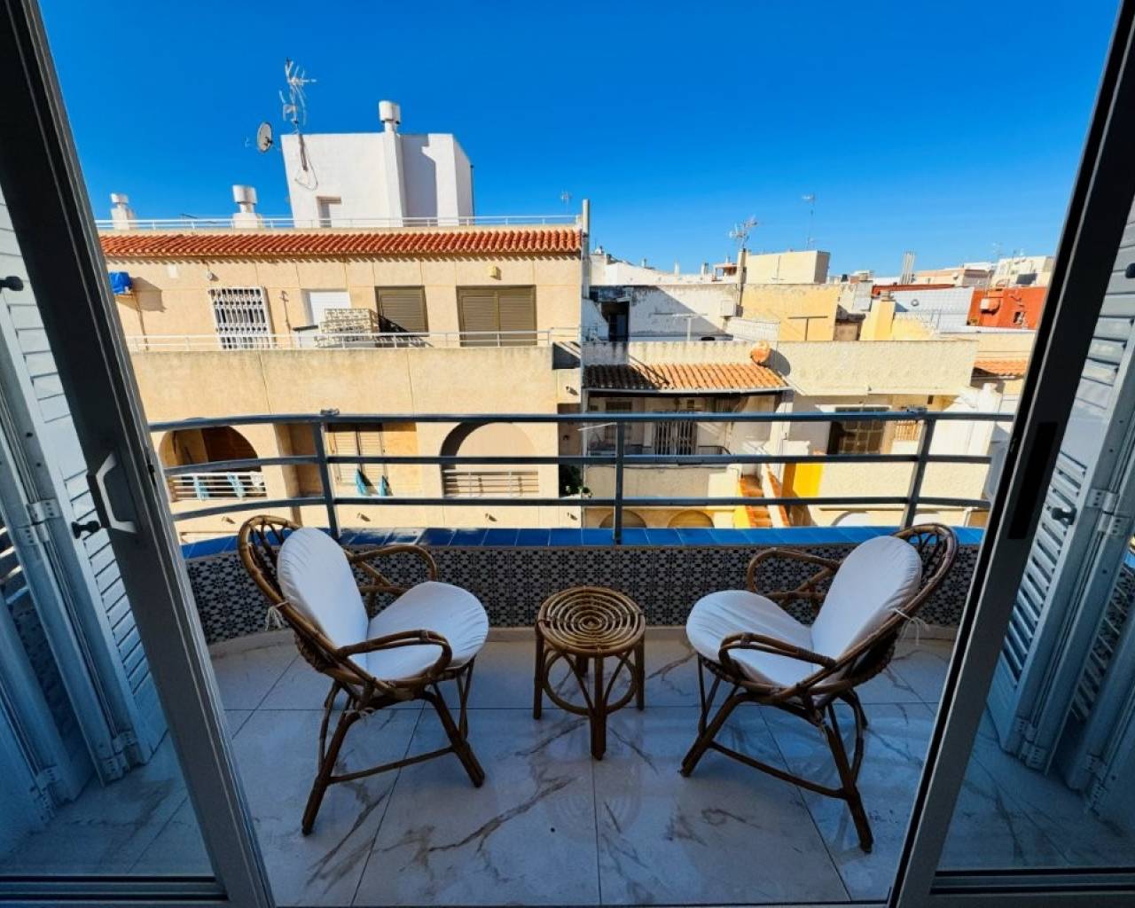 Es una vivienda situada en el corazón de La Mata, a tan solo 10 metros de la playa y situada en un edificio de primera línea de playa. La vivienda se encuentra en la 4ª y última planta del edificio. Dispone de 2 ascensores. Tiene una superficie de 76 m2 distribuidos en salón comedor y cocina abierto, 3 dormitorios y 2 baños. Tiene una terraza orientada al Oeste ( sol por la tarde ) La vivienda está completamente reformada y se vende amueblada y equipada. Dispone de Aire acondicionado y está para entrar a vivir. Comunidad: 530 € al año IBI: 228 €