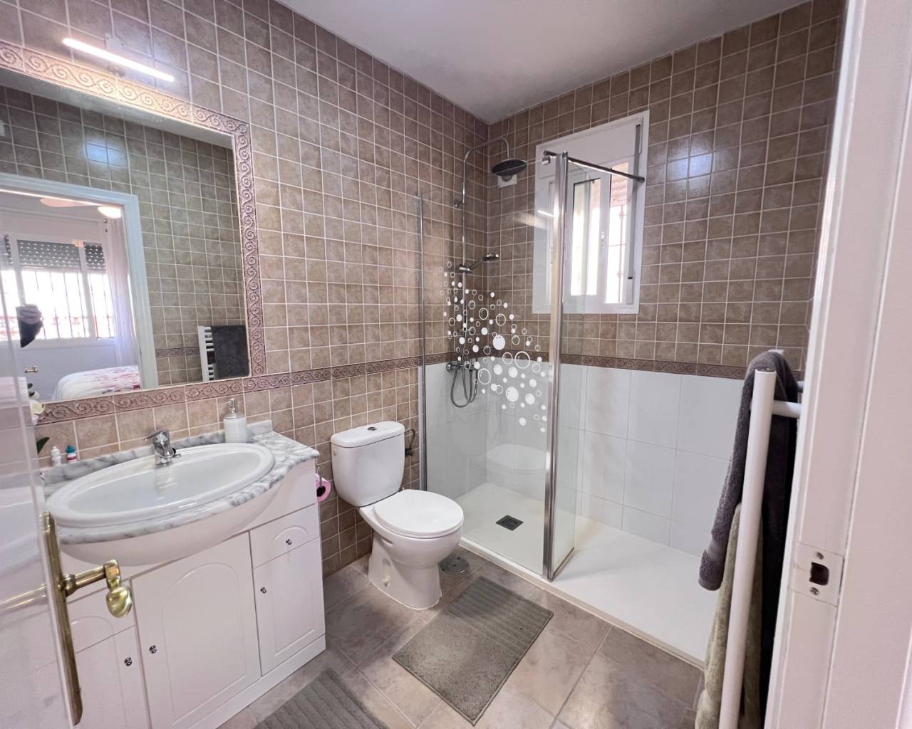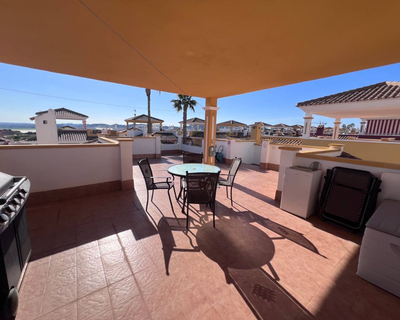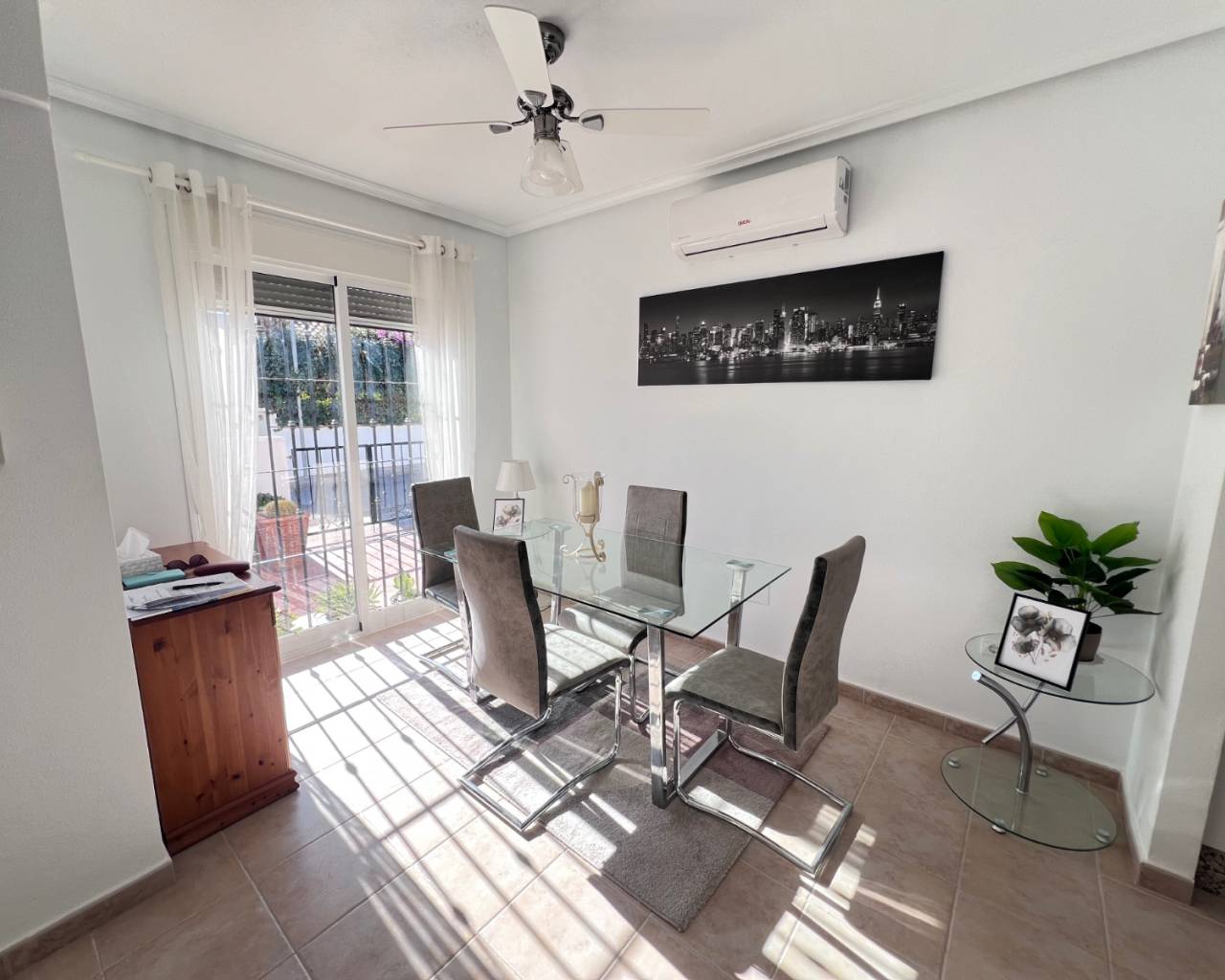 Ubicada en la demandada comunidad de Laguna Green 1, dentro de Vistabella Golf, esta cuidada vivienda de 3 dormitorios y 2 baños ofrece una excelente combinación de espacio, confort y vida al aire libre. La zona principal es luminosa y acogedora, con un salón-comedor de concepto abierto que conecta perfectamente con la cocina, creando un espacio ideal tanto para el día a día como para recibir invitados. La vivienda cuenta con tres amplios dormitorios, todos con armarios empotrados, y dos baños. Uno de los grandes atractivos de esta propiedad es su solárium privado, que ofrece un amplio espacio para tomar el sol, relajarse o disfrutar de reuniones al aire libre, aprovechando al máximo el clima mediterráneo. Es el lugar perfecto para crear una zona chill-out, comedor exterior o cocina de verano. Situada en un residencial bien mantenido, la vivienda se encuentra a poca distancia a pie del club social de Vistabella Golf, así como de bares, restaurantes y supermercado, lo que la convierte en una opción ideal como residencia habitual, vivienda vacacional o inversión para alquiler. Con fácil acceso a Orihuela, San Miguel de Salinas y Los Montesinos, y a un corto trayecto en coche de las playas de la Costa Blanca, esta propiedad representa una excelente oportunidad en una ubicación privilegiada.