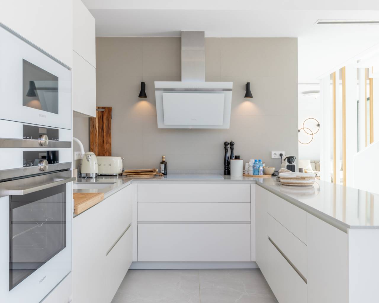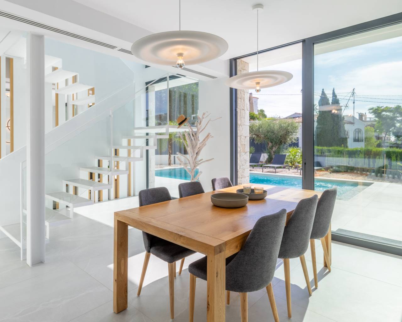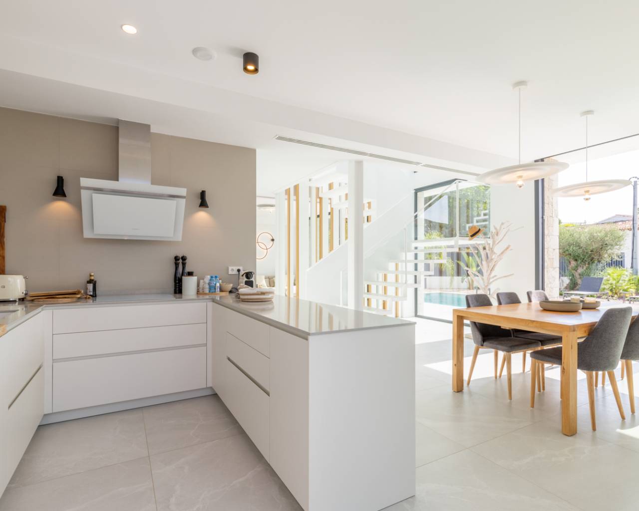 Preciosa obra nueva con vistas al mar – lista para entrar a vivir Ubicada cerca de la hermosa playa de La Fustera en Benissa, esta exquisita obra nueva, lista para entrar a vivir, ofrece una oportunidad única de vivir al máximo el estilo de vida mediterráneo. Ya sea que esté buscando una residencia permanente, una casa de vacaciones o una oportunidad de inversión, esta villa es una excelente opción. Una combinación perfecta de lujo, tranquilidad y naturaleza. La parcela de 800 m², que está completamente vallada y provista de puerta automática, alarma y cámaras, garantizará su relajada sensación de seguridad. En cuanto al espacio de estacionamiento, ya sea que tenga invitados o sea un entusiasta de los automóviles, disfrutará de la comodidad de tener un amplio espacio de estacionamiento directamente en su propiedad. Esta villa de 250 m² respira arquitectura y diseño modernos y fue construida con altos estándares con materiales de calidad, ¡una oportunidad única en esta región! Al ingresar a esta exquisita villa, se sentirá bienvenido en la espaciosa y acogedora sala de estar. Un lugar donde puede relajarse, entretenerse y disfrutar de las vistas al mar. El diseño fluido conecta a la perfección la sala de estar con la cocina abierta y totalmente equipada. También hay un baño independiente para su comodidad. Cuando suba la elegante escalera al nivel superior, encontrará 4 dormitorios y 3 baños. Cada dormitorio ofrece una sensación única de relajación y hay un amplio espacio para su familia o sus invitados. Las áreas al aire libre de esta villa están bien diseñadas. Hay una agradable zona de barbacoa, que ofrece una sombra refrescante en verano y una zona de piscina con una piscina de tamaño perfecto y una zona de salón. También apreciará la comodidad de un lavadero independiente. ¿Desea más información sobre esta propiedad, consultas o programar una visita, comuníquese con nosotros. No pierda esta oportunidad.