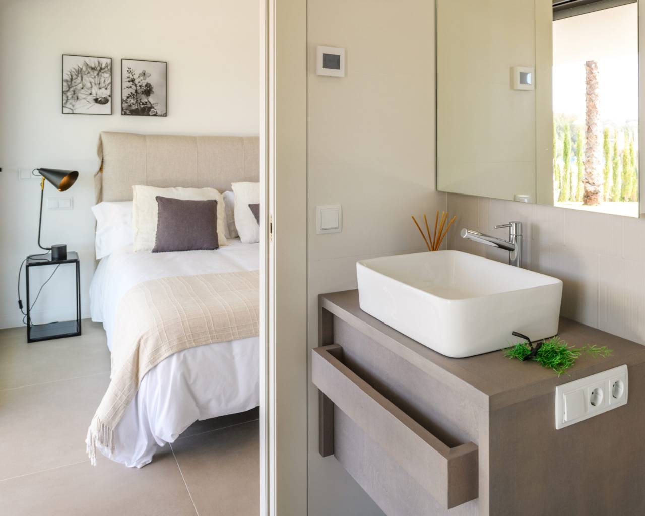 Ubicada en la exclusiva zona de Dehesa de Campoamor, esta colección de 16 propiedades ofrece un entorno privilegiado para quienes buscan un hogar en un entorno natural y tranquilo. Las tipologías disponibles incluyen Independiente y Villa, cada una diseñada para ofrecer el máximo confort y funcionalidad. La proximidad al campo de golf, a solo 0.5 km, añade un atractivo adicional para los amantes de este deporte, permitiendo disfrutar de un estilo de vida activo y saludable. La ubicación estratégica de estas propiedades garantiza un acceso fácil a servicios y comodidades, haciendo de este residencial una opción ideal para familias y parejas que buscan un equilibrio perfecto entre tranquilidad y conveniencia. EXTERIORES Las propiedades cuentan con espacios exteriores diseñados para maximizar el disfrute del clima mediterráneo. Cada vivienda dispone de un jardín privado, perfecto para crear un oasis personal de relajación. Además, las terrazas ofrecen un espacio adicional para disfrutar de comidas al aire libre o simplemente relajarse al final del día. La inclusión de una piscina privada en cada propiedad añade un toque de lujo, permitiendo a los residentes disfrutar de un refrescante chapuzón en la comodidad de su hogar. Estos espacios exteriores están pensados para ofrecer privacidad y confort, convirtiéndose en el lugar perfecto para disfrutar de momentos inolvidables con familiares y amigos. INTERIORES El interior de las viviendas está diseñado para ofrecer un ambiente acogedor y moderno. Cada propiedad cuenta con tres dormitorios y tres baños, proporcionando un espacio amplio y funcional para toda la familia. Los acabados de alta calidad incluyen suelos de gres porcelánico, que aportan un toque elegante y son fáciles de mantener. Las viviendas están completamente amuebladas y equipadas con electrodomésticos, asegurando que cada detalle esté cuidado para ofrecer el máximo confort. La tecnología también juega un papel importante, con características como domótica, aire acondicionado, calefacción por suelo radiante, videoportero y persianas eléctricas, que garantizan un estilo de vida moderno y eficiente. Los armarios empotrados ofrecen soluciones de almacenamiento prácticas y elegantes, completando un diseño interior que combina funcionalidad y estilo.