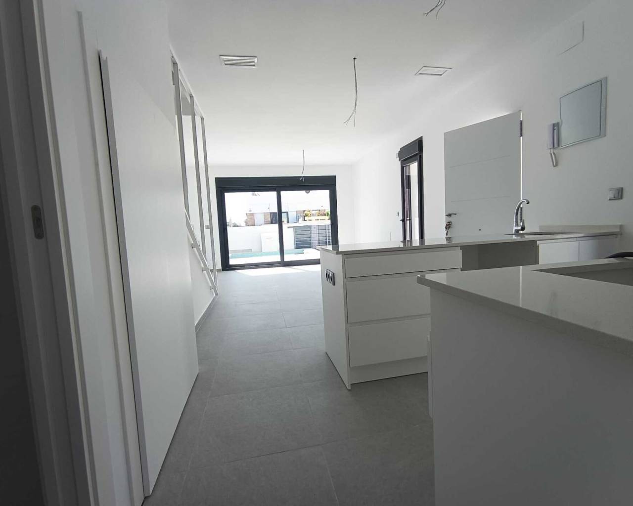 El interior de estas viviendas independientes en Daya Nueva está cuidadosamente diseñado para ofrecer confort y estilo. Los suelos de gres porcelánico aportan un toque moderno y son fáciles de mantener, lo que es ideal para un estilo de vida activo. Los armarios empotrados en los dormitorios proporcionan un almacenamiento eficiente, ayudando a mantener los espacios ordenados y libres de desorden. Con tres dormitorios y dos baños, estas viviendas están preparadas para satisfacer las necesidades de familias o parejas que buscan un hogar espacioso y bien distribuido. La inclusión de una terraza permite una transición fluida entre los espacios interiores y exteriores, ampliando las posibilidades de uso del hogar.