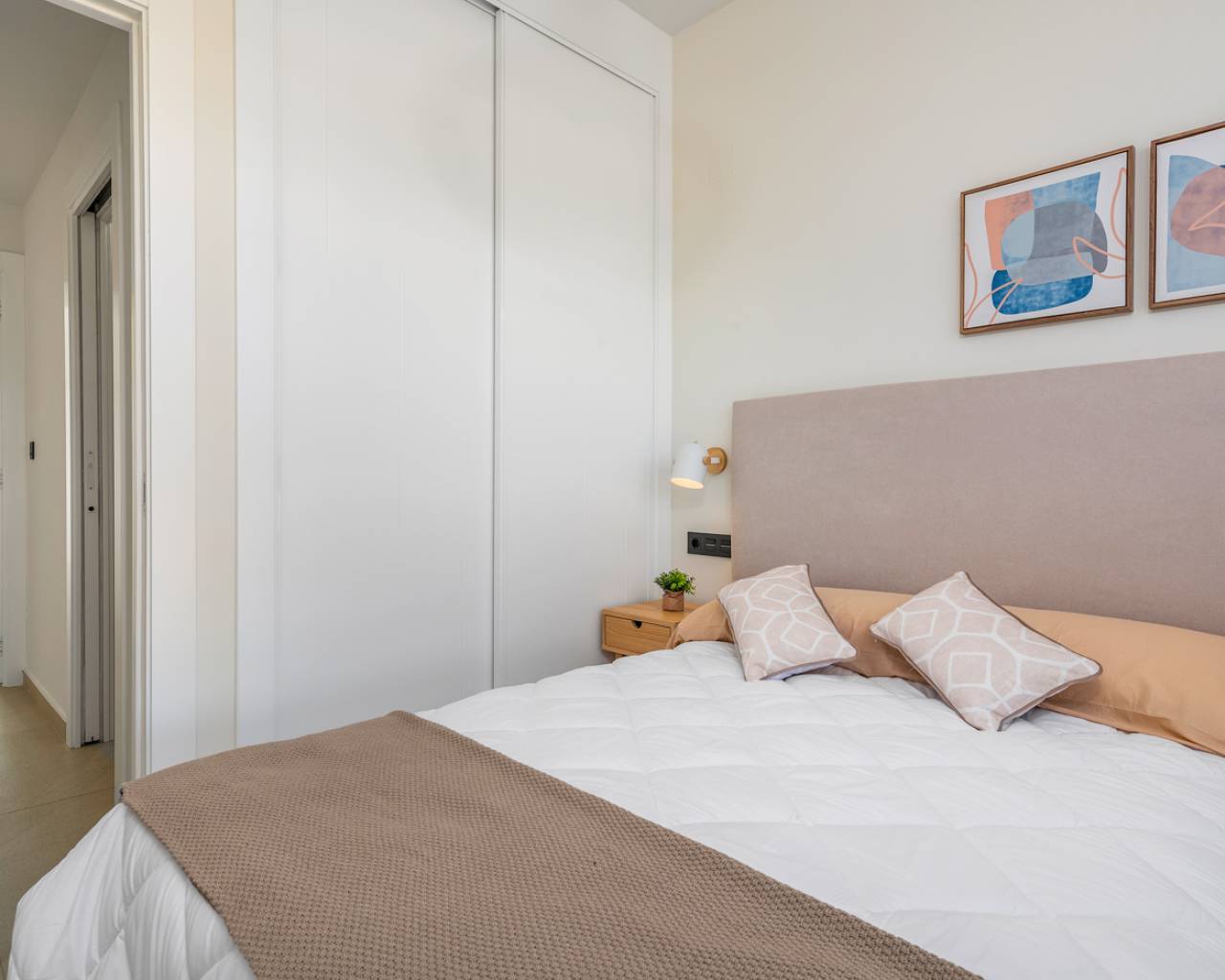 El interior de las viviendas está diseñado para ofrecer confort y estilo. Todas las propiedades vienen amuebladas, lo que facilita la mudanza y permite disfrutar del espacio desde el primer día. Los suelos de cerámica aportan un toque moderno y son fáciles de mantener. Las persianas eléctricas y los electrodomésticos incluidos son características que añaden comodidad a la vida diaria. Los armarios empotrados ofrecen un almacenamiento eficiente, mientras que la preinstalación de aire acondicionado asegura que el hogar esté preparado para cualquier clima.