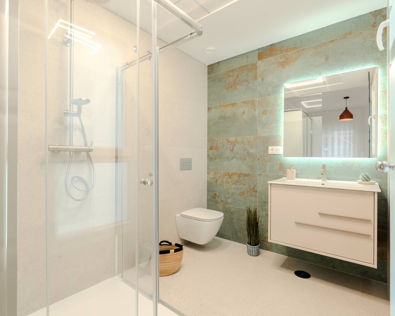 El interior de estos adosados está diseñado para ofrecer un ambiente acogedor y moderno. Cada vivienda dispone de tres dormitorios y tres baños, proporcionando un espacio amplio y cómodo para familias o para quienes valoran el espacio adicional. Las viviendas están equipadas con aire acondicionado, garantizando confort durante todo el año. Los armarios empotrados ofrecen soluciones de almacenamiento prácticas y elegantes. Además, las viviendas incluyen electrodomésticos, facilitando la mudanza y el inicio de una nueva vida en este entorno privilegiado. El videoportero añade un nivel extra de seguridad y comodidad, permitiendo controlar el acceso a la vivienda de manera eficiente.