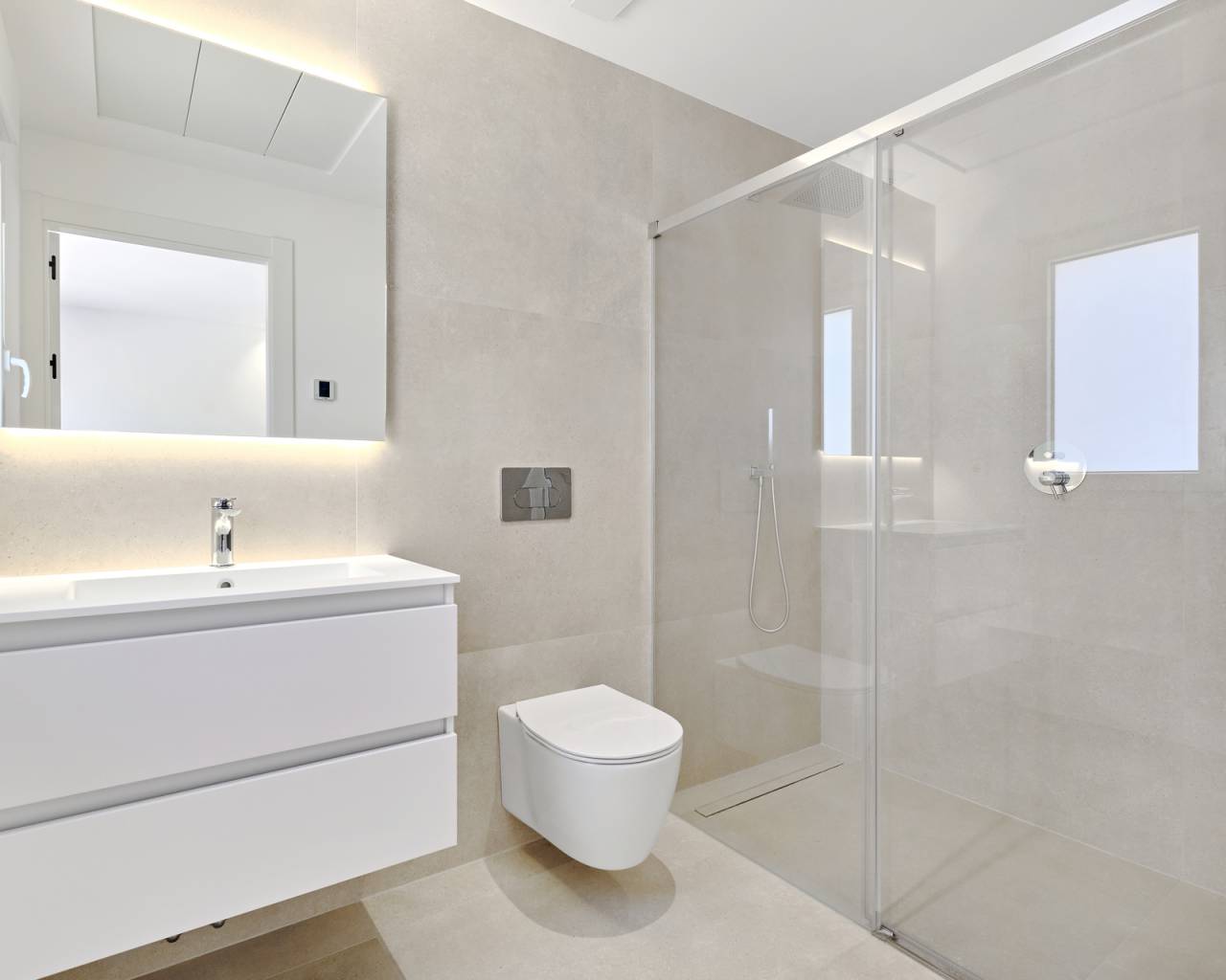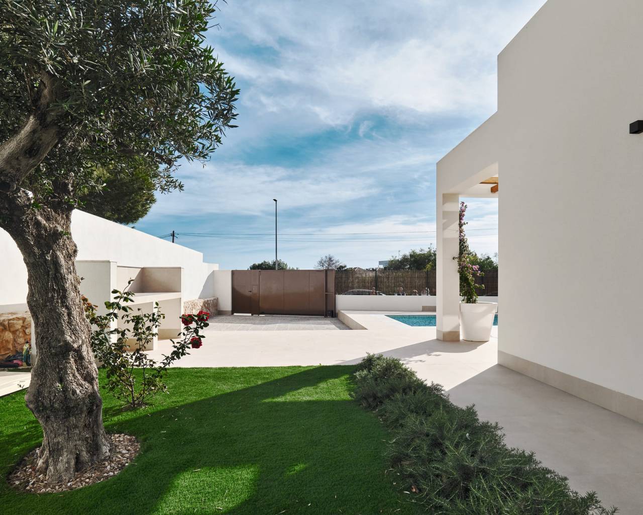 El interior del chalet está diseñado para ofrecer el máximo confort. Dispone de tres dormitorios, lo que lo hace perfecto para familias o para recibir invitados. Los dos baños están equipados con acabados modernos. La cocina está equipada con electrodomésticos de alta calidad, facilitando las tareas diarias. El sistema de aire acondicionado garantiza una temperatura agradable durante todo el año. Los suelos de gres porcelánico aportan un toque elegante y son fáciles de mantener. Además, cuenta con armarios empotrados que optimizan el espacio de almacenamiento. La seguridad está reforzada con un videoportero, proporcionando tranquilidad a sus residentes.