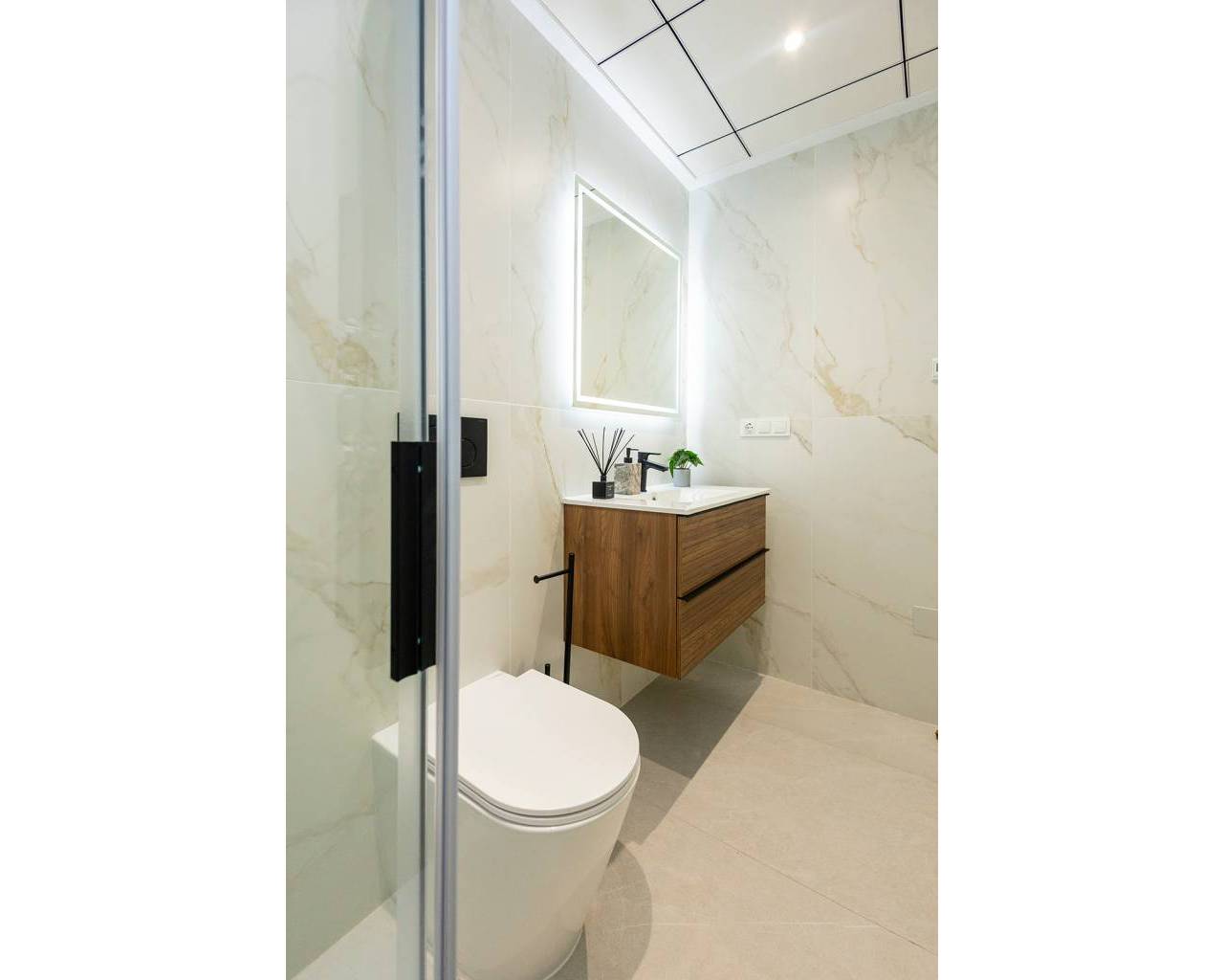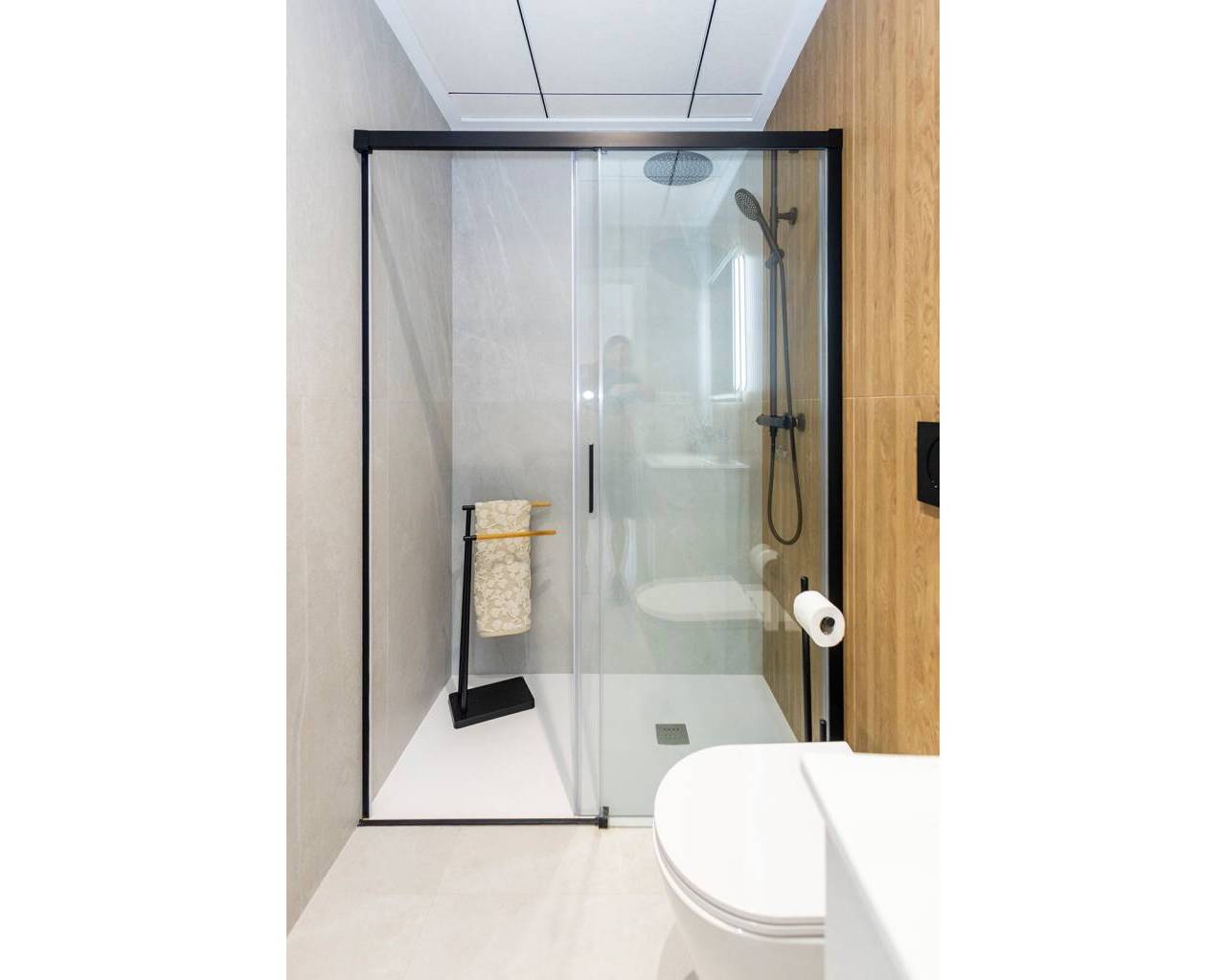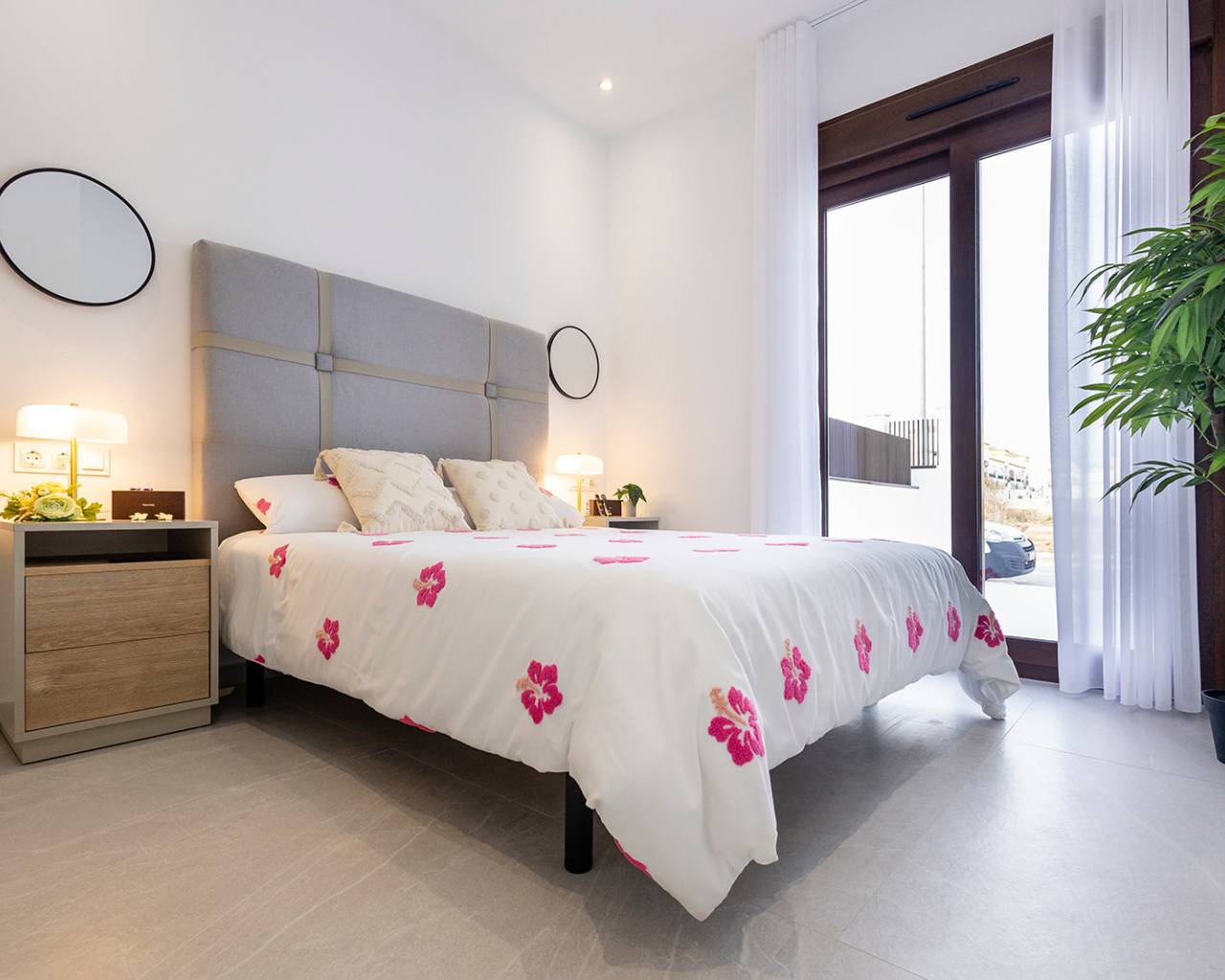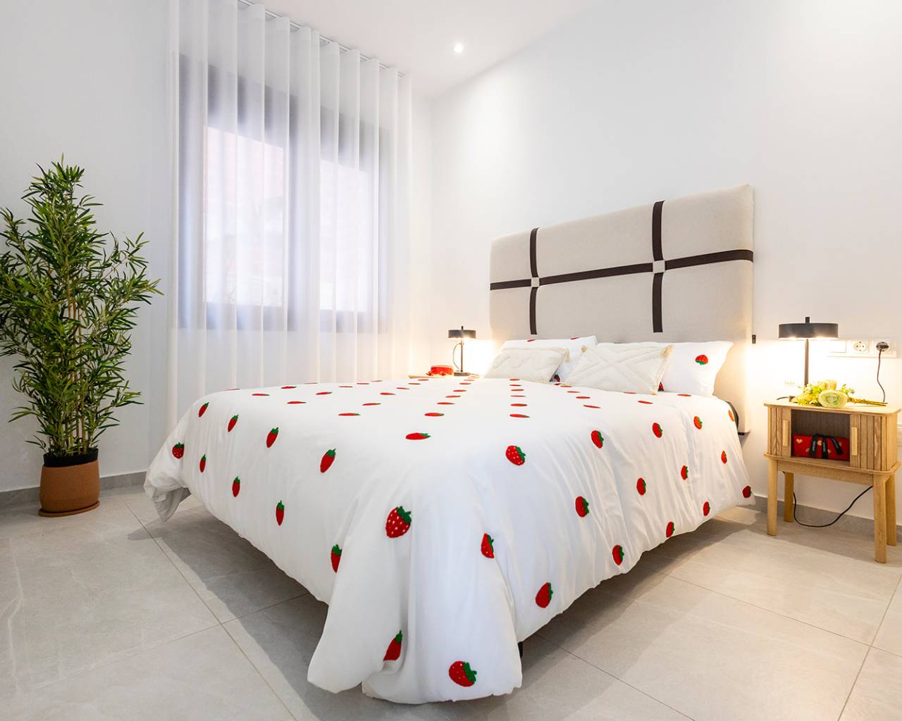 El interior de los adosados está diseñado con atención al detalle, ofreciendo un ambiente acogedor y moderno. Los suelos de porcelana aportan un toque de elegancia y son fáciles de mantener. La distribución incluye dos dormitorios y dos baños, lo que proporciona un espacio adecuado para la vida diaria. Las cocinas están equipadas con electrodomésticos, facilitando la vida cotidiana. Los armarios empotrados ofrecen soluciones de almacenamiento eficientes, mientras que las persianas eléctricas y el videoportero añaden comodidad y seguridad. La preinstalación de aire acondicionado permite adaptar el clima interior a las preferencias personales. Además, existe la opción de añadir un solárium, ampliando las posibilidades de uso del espacio.