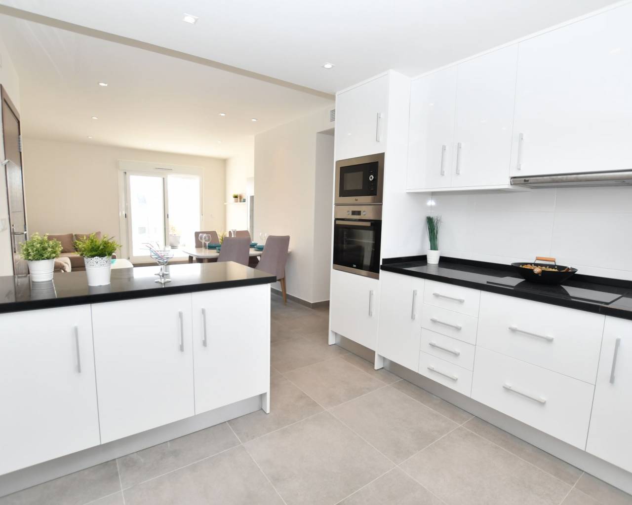 Los exteriores de estas viviendas están pensados para maximizar el disfrute del clima mediterráneo. Cada bungalow cuenta con un jardín privado, ideal para relajarse o disfrutar de actividades al aire libre. Además, las propiedades incluyen una terraza, perfecta para cenas al aire libre o simplemente para disfrutar de las vistas al mar. La presencia de un solárium privado en cada vivienda ofrece un espacio adicional para tomar el sol en total privacidad, convirtiéndose en un lugar privilegiado para disfrutar de las vistas panorámicas de la zona.