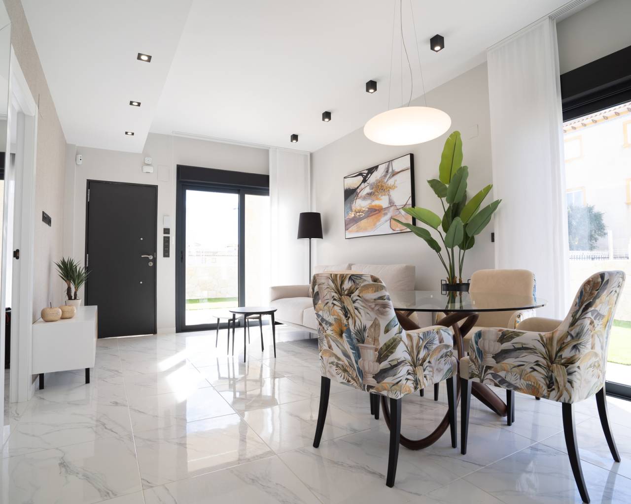 Los exteriores de estas viviendas han sido cuidadosamente diseñados para maximizar el disfrute del clima mediterráneo. Cada propiedad cuenta con un jardín privado, perfecto para relajarse o para actividades al aire libre. Además, las terrazas ofrecen un espacio adicional para disfrutar de las vistas y del entorno. Para aquellos que buscan un espacio extra al aire libre, el solárium es una opción ideal, proporcionando un lugar privado para tomar el sol o disfrutar de las noches estrelladas. Las pérgolas añaden un toque de elegancia y funcionalidad, proporcionando sombra y estilo a los espacios exteriores.