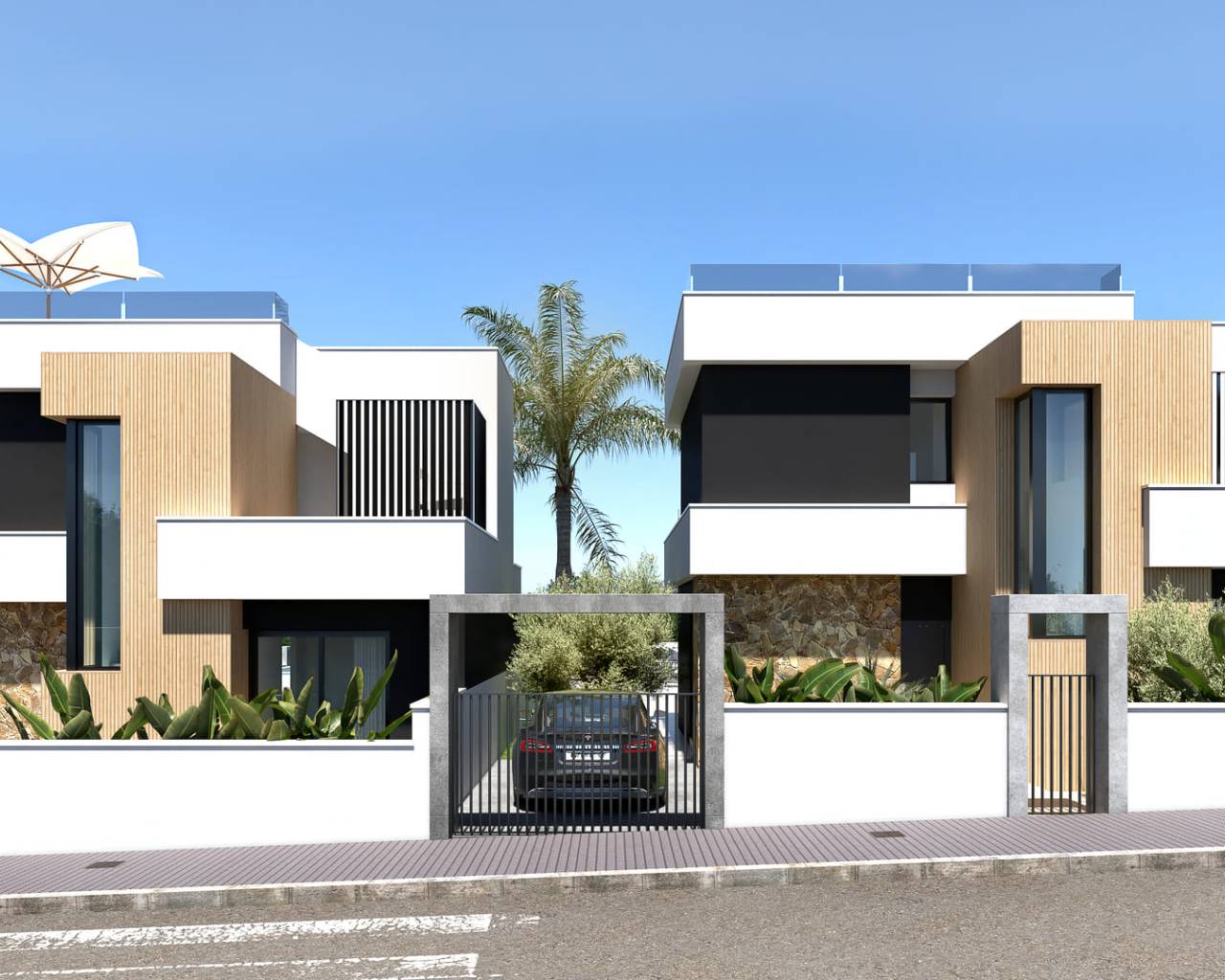Los exteriores de estas viviendas en Ciudad Quesada son un verdadero oasis de tranquilidad. Cada propiedad cuenta con un jardín privado, ideal para disfrutar del clima mediterráneo. Además, las viviendas disponen de una piscina privada, perfecta para relajarse y disfrutar del sol en total privacidad. La terraza es otro de los atractivos exteriores, ofreciendo un espacio adicional para el ocio y el entretenimiento al aire libre. El solárium, presente en cada vivienda, permite disfrutar de vistas panorámicas y momentos de descanso bajo el cielo abierto.