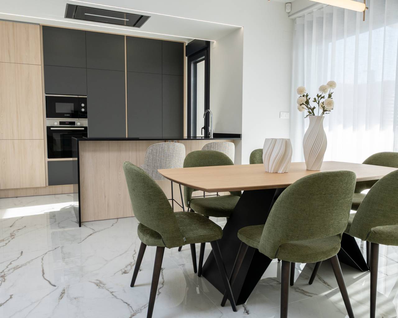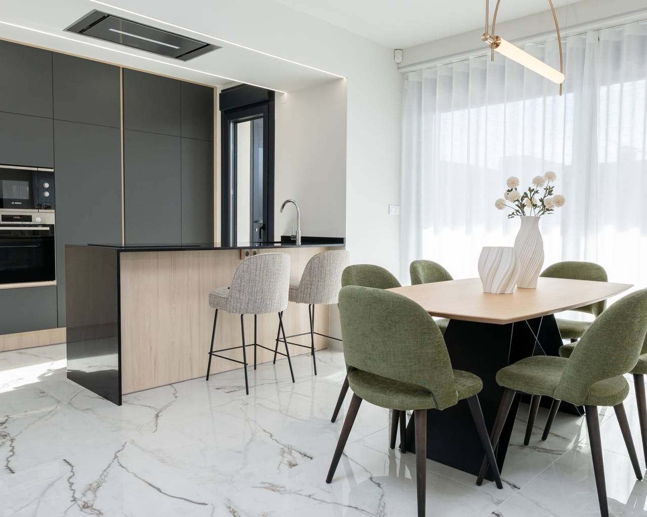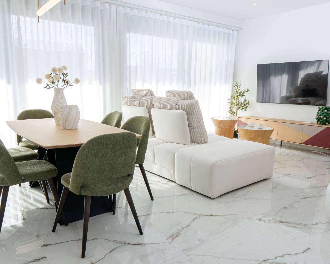 El interior de estas viviendas independientes en Ciudad Quesada está diseñado con un enfoque en la comodidad y la funcionalidad. Con tres dormitorios y tres baños, cada propiedad ofrece un espacio amplio y bien distribuido para satisfacer las necesidades de cualquier familia. Los suelos de gres porcelánico aportan un toque de elegancia y durabilidad. Las viviendas están equipadas con armarios empotrados, proporcionando un almacenamiento eficiente y discreto. Además, cuentan con videoportero, garantizando seguridad y comodidad. La opción de incluir un garaje añade un nivel adicional de conveniencia para los residentes.