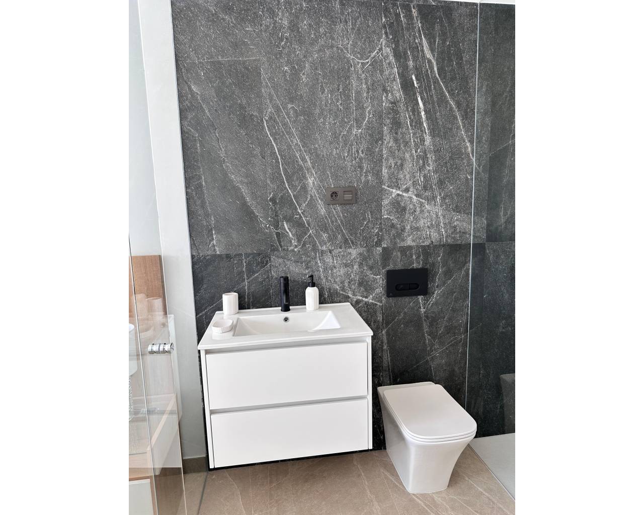 El interior de las viviendas está diseñado con un enfoque en la funcionalidad y el estilo moderno. Los suelos de gres porcelánico aportan un toque elegante y son fáciles de mantener. Las persianas eléctricas y los armarios empotrados añaden comodidad y espacio de almacenamiento. Además, todas las propiedades cuentan con preinstalación de aire acondicionado, asegurando un ambiente agradable durante todo el año. Las opciones de distribución incluyen viviendas de 2 y 3 dormitorios, todas con 2 baños, lo que ofrece flexibilidad para diferentes necesidades familiares.