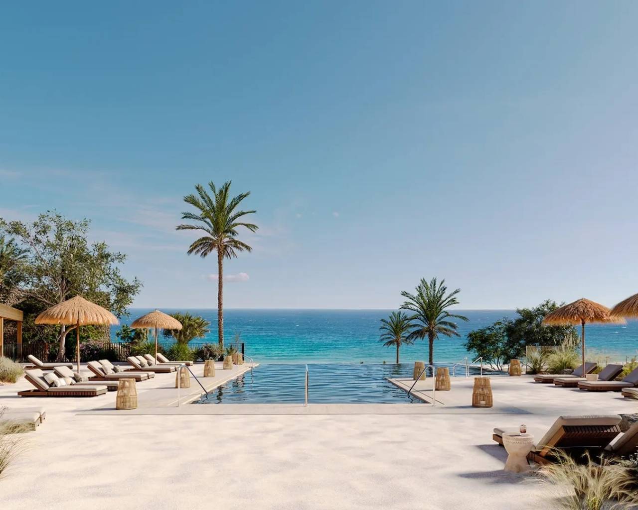 Las propiedades cuentan con espacios exteriores que invitan al relax y al disfrute del entorno natural. Cada vivienda dispone de terraza, ideal para contemplar las vistas al mar y disfrutar del clima mediterráneo. Además, algunas tipologías incluyen jardín privado y solárium, ofreciendo un espacio adicional para el ocio al aire libre. La ubicación en Macenas permite un acceso privilegiado a la costa, potenciando la experiencia de vivir en primera línea de mar.