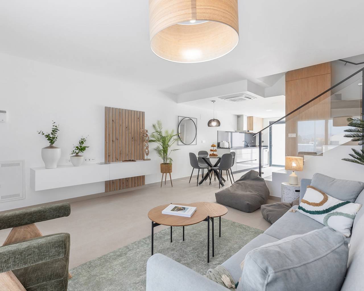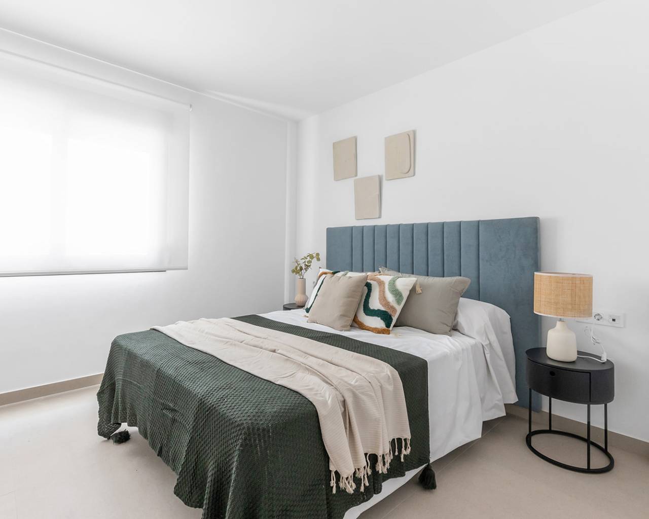 El interior de las viviendas adosadas en Rafal está diseñado para ofrecer confort y modernidad. Los suelos de gres porcelánico aportan un toque elegante y son fáciles de mantener, mientras que las persianas eléctricas añaden comodidad y eficiencia energética. Los armarios empotrados en los dormitorios proporcionan un amplio espacio de almacenamiento, manteniendo las áreas de descanso ordenadas y libres de desorden. La preinstalación de aire acondicionado asegura que las viviendas estén preparadas para la instalación de sistemas de climatización, permitiendo a los residentes disfrutar de un ambiente fresco y confortable durante los meses más cálidos. La distribución de las viviendas, con opciones de 3 y 4 dormitorios y 2 baños, está pensada para ofrecer un espacio funcional y adaptable a las necesidades de cada familia.