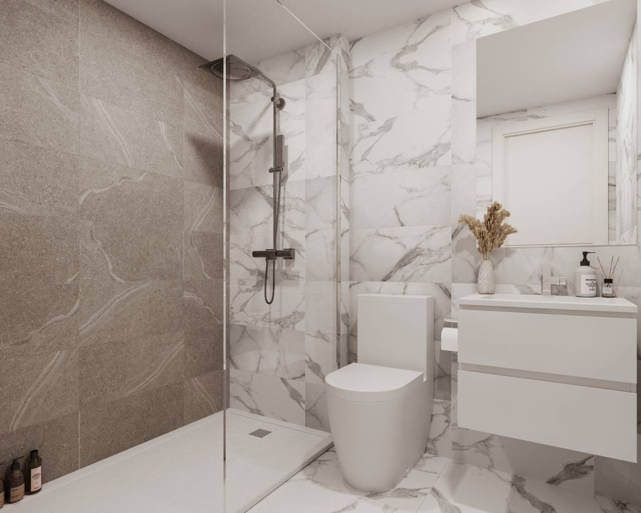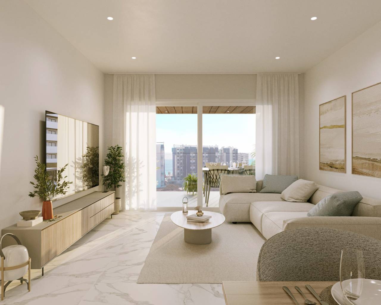 El interior de las viviendas en este residencial de Punta Prima está diseñado para ofrecer el máximo confort y funcionalidad. Con opciones de 2 y 3 dormitorios y 2 baños, estas propiedades se adaptan a diversas necesidades familiares. Los suelos de gres porcelánico aportan un toque de elegancia y durabilidad, mientras que el sistema de aire acondicionado garantiza un ambiente agradable durante todo el año. Las cocinas están equipadas con electrodomésticos modernos, facilitando las tareas diarias. Los armarios empotrados ofrecen un almacenamiento eficiente, manteniendo el espacio ordenado y despejado. Además, las persianas eléctricas y el videoportero añaden un nivel extra de comodidad y seguridad, haciendo de estas viviendas un lugar ideal para vivir.
