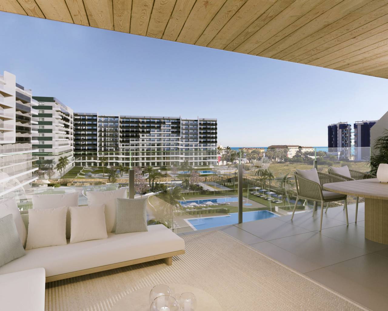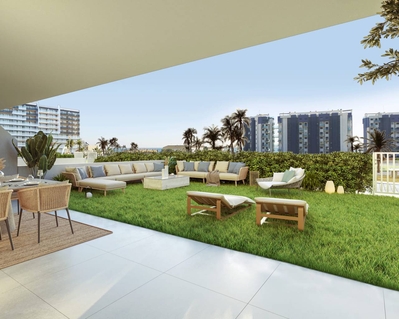 Los exteriores de este residencial en Punta Prima están diseñados para ofrecer un estilo de vida al aire libre excepcional. Todas las viviendas cuentan con terrazas, ideales para disfrutar de las vistas al mar y del clima mediterráneo. Las plantas bajas incluyen jardines privados, proporcionando un espacio adicional para el ocio y la relajación. Los áticos, por su parte, disponen de solárium, un lugar perfecto para tomar el sol en privacidad. La proximidad al mar, a solo 0.5 km, permite disfrutar de paseos costeros y actividades acuáticas. La arquitectura moderna y los acabados de alta calidad se integran armoniosamente con el entorno, creando un espacio exterior que invita al descanso y al disfrute.
