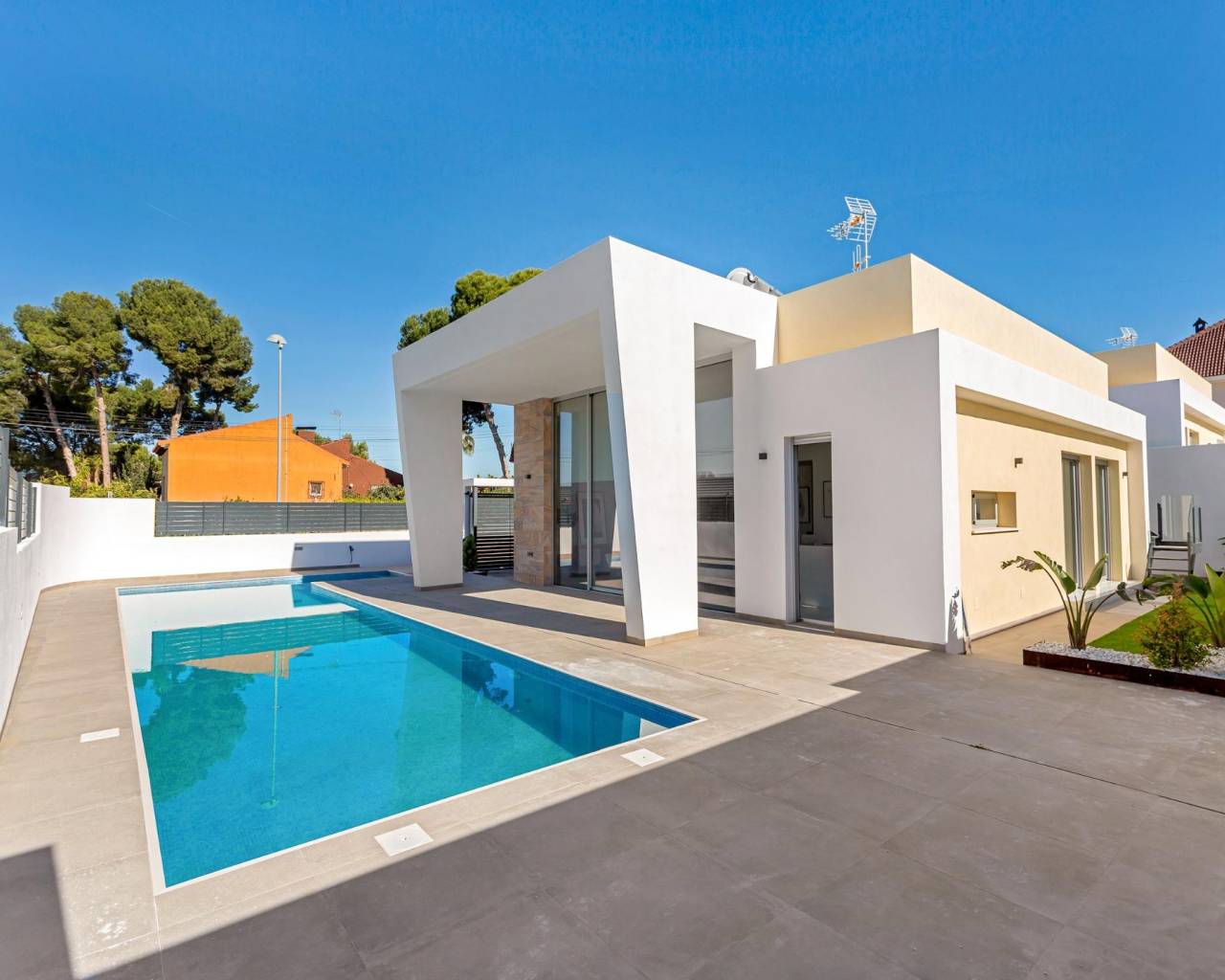 Gelegen in een van de meest veelbelovende gebieden van de stad, bieden onze villa’s privacy, rust en uitstekende verbindingen. Slechts 5 minuten van het centrum van Torrevieja, maar met alle voordelen van een exclusieve woonwijk, omgeven door groene zones, de lagune van La Mata en essentiële voorzieningen zoals supermarkten, gezondheidscentra, internationale scholen en winkels.