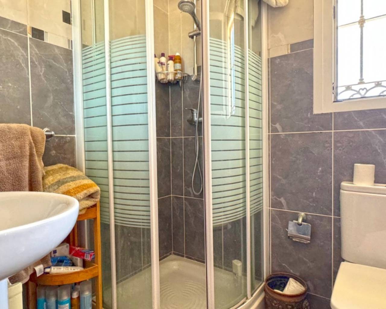 De tweede verdieping heeft 2 slaapkamers, elk met een eigen badkamer, wat extra privéruimte biedt. Vanaf hier heb je toegang tot het grote terras dat om de hoek van het huis loopt en uitkijkt over het zwembad, en ook naar het solarium voor prachtige uitzichten.