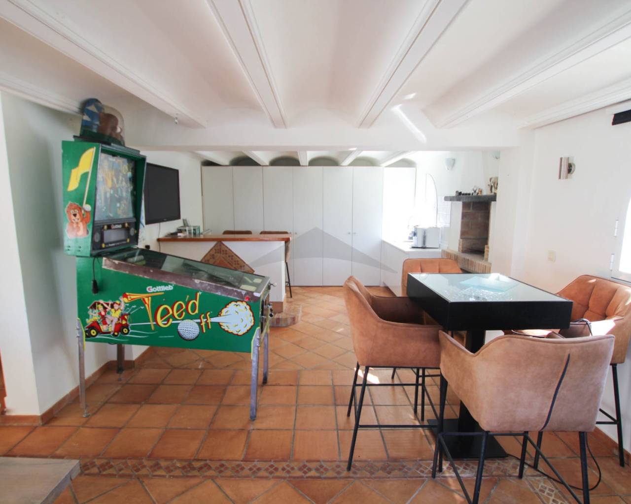 Ruime villa met uitzicht op de golfbaan in San Jaime, Benissa. Mooie grote villa met uitzicht op de golfbaan van San Jaime en een klein uitzicht op zee, gelegen in een privésector van San Jaime. Het pand bestaat uit een hoofdgebouw en een appartement. De villa bestaat uit een woonkamer, eetkamer, ingerichte keuken, 3 slaapkamers, 2 badkamers (waarvan 1 met badkamer), 2 gastentoiletten, berging/wasruimte. Het appartement beschikt over een aparte entree, woonkamer, keuken, slaapkamer en badkamer.
