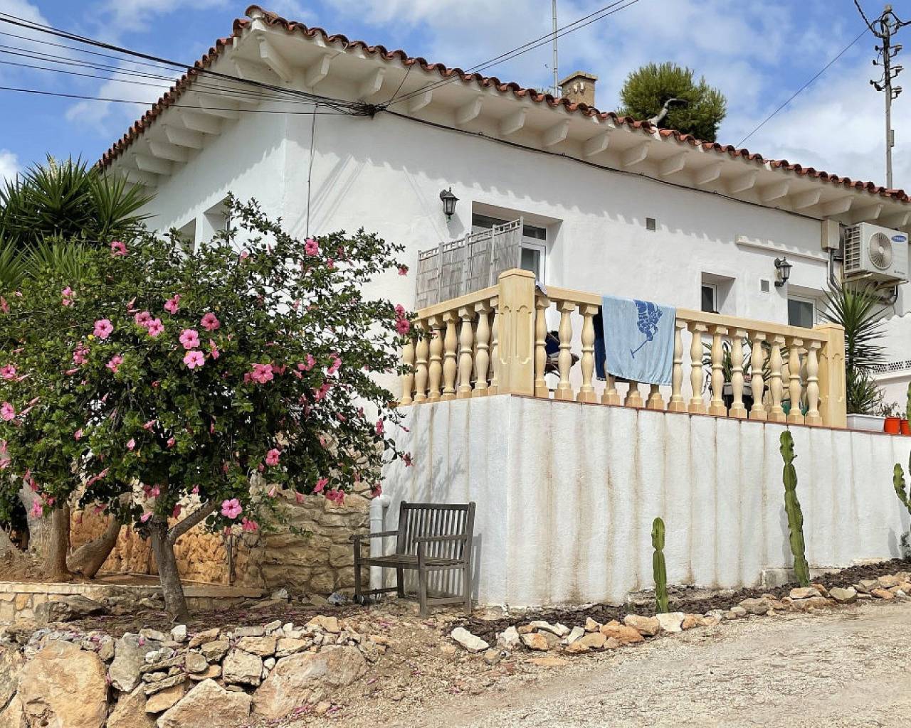 Villa te koop nabij het centrum van Moraira Costa Blanca. Een woning met veel potentieel, vlakbij Moraira. Het betreft een gerenoveerd kantoorgebouw bestaande uit één driekamerappartement en drie tweekamerappartementen. Twee van de appartementen zijn aan renovatie toe, maar twee zijn al gerenoveerd en worden verhuurd aan gasten. Het gebouw is gelegen op een totaal perceel van circa 2.528 m2 en daarvoor is een bouwkavel van 1.000 m2 af te scheiden, dit heeft afgescheiden mogen worden van het oorspronkelijke perceel, maar wordt samen verkocht. Goede investering/project. Buiten is er voldoende parkeergelegenheid voor circa 10 auto's en een aangelegde tuin. De eerste appartementen aan de rechterzijde van het gebouw hebben een grote open keuken met ruime woonkamer en airconditioning. Er zijn twee slaapkamers, waarvan één met een eigen badkamer en een familiebadkamer. Eén van de slaapkamers wordt momenteel gebruikt als kleedkamer. Het tweede appartement beschikt over een ruime woonkamer met open haard, plafondventilator en U-vormige kitchenette. Er zijn twee slaapkamers en een grote badkamer. Het derde appartement wordt momenteel gebruikt als kantoor en zal gerenoveerd moeten worden. Eén slaapkamer doet dienst als bergruimte en de keuken is relatief nieuw. Airconditioning is al geïnstalleerd en zou niet al te veel werk moeten vergen om er een goede woonruimte van te maken. Het vierde appartement, dat gerenoveerd gaat worden, beschikt over een open haard en airconditioning. Het grootste deel van het werk bestaat uit het opnieuw schilderen van de muren en een eigen badkamer die gerenoveerd moet worden. De mogelijkheden zijn talrijk met dit pand en het aangrenzende land, een investeringsmogelijkheid die u niet mag missen.