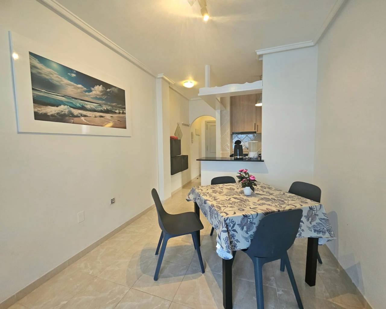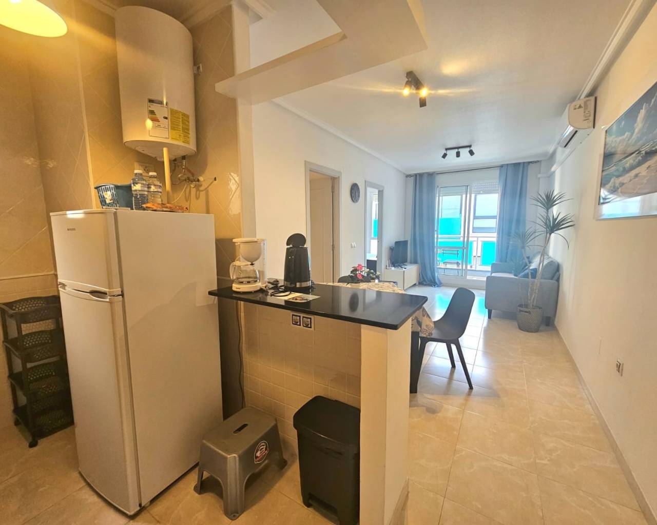 Smaakvol Gerenoveerd appartement in het hart van Torrevieja Dit stijlvolle appartement is ideaal gelegen vlakbij het centrum van Torrevieja, op loopafstand van de boulevard en de populaire stranden Playa del Cura en Playa Los Locos.  Het appartement bevindt zich op de bovenste verdieping, wat zorgt voor extra rust – geen buren boven u! Het beschikt over twee slaapkamers en één moderne badkamer, volledig gerenoveerd en voorzien van een frisse, eigentijdse look. De open keuken sluit naadloos aan op de woonkamer en is perfect om gezellig te koken en samen te komen. Daarnaast is er airconditioning aanwezig, en op warme dagen kunt u afkoelen in het gemeenschappelijk zwembad. Dankzij de centrale ligging is dit appartement ideaal om Torrevieja te ontdekken en te genieten van alles wat het Spaanse leven te bieden heeft. Bent u op zoek naar een goede investering onder de €150.000 – voor eigen gebruik of voor verhuur – dan is dit een uitstekende kans. Wacht niet te lang en maak snel een afspraak met een van onze professionele makelaars voordat deze woning verkocht is!