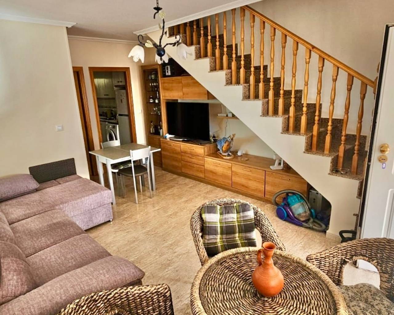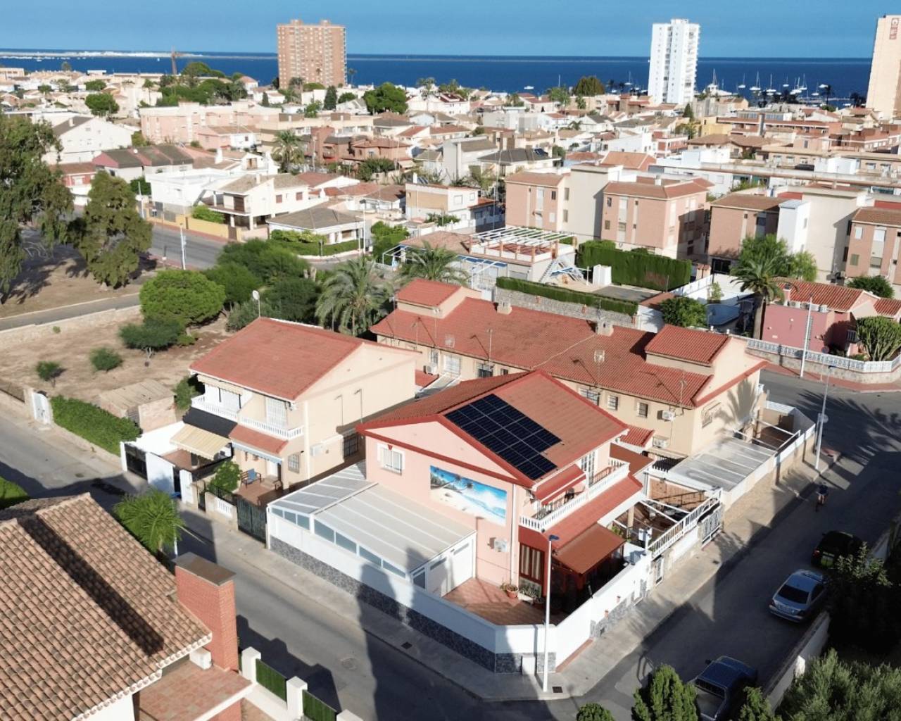 Ontdek deze lichte hoek-duplex, ideaal gelegen op slechts 440 meter van het strand en de boulevard in Santiago de la Ribera. Met zuidgerichte ligging geniet u de hele dag van zon en vrij uitzicht op twee rustige straten zonder hoge gebouwen. De woning ligt op een perceel van 165 m² en biedt 155 m² woonruimte, met een ruime woon- en eetkamer, een recent gerenoveerde keuken met kwaliteitsapparatuur en een binnenpatio met beweegbaar dak voor veel natuurlijk licht. Er zijn drie ruime slaapkamers, twee badkamers, volledig gemeubileerd, met garage en berging inbegrepen. Uitgerust met een volledig Smart-Home-systeem waarmee u verlichting, airco, garagedeur, zonne-energie en beveiliging via uw smartphone kunt bedienen. Inclusief videointercom, beveiligingscamera’s, centrale airco met inverter en Wi-Fi-technologie. Het 9-paneels zonne-energiesysteem zorgt voor duurzaamheid en lagere energiekosten. Extra veiligheid met versterkte deur en tralies op ramen en deuren. Gelegen aan een rustige straat met openbaar medisch centrum, wekelijkse markt (50 m) en goede verbindingen naar Los Alcázares, Cartagena en Murcia. Dicht bij golfbanen, nautische club, tennis, fitness, en strandbars en restaurants– ideaal voor de Mediterrane levensstijl aan de Mar Menor.