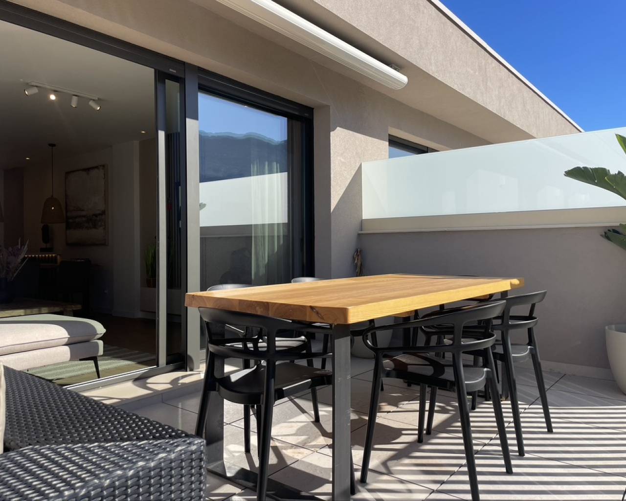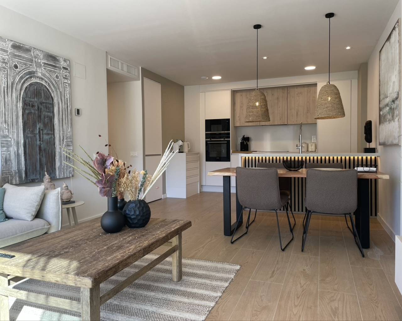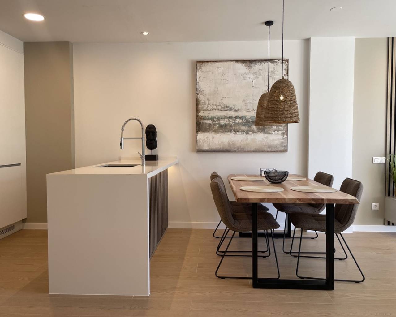 Maak kennis met dit spectaculaire, gloednieuwe penthouse, een unieke woning die design, kwaliteit en een toplocatie combineert op slechts een steenworp afstand van het centrum van Dénia, de jachthaven en het strand van Las Rotas. Dankzij de zuidoriëntatie geniet dit penthouse het hele jaar door van de zon, vooral in de winter. U kunt optimaal genieten van het prachtige terras van 38 m², perfect om buiten te eten, te ontspannen of samen te komen met vrienden onder het natuurlijke licht dat het appartement de hele dag door binnenstroomt. Het interieur is ruim, modern en zeer licht. De indeling is als volgt: - Open woon-eetkamer verbonden met de open keuken - Drie slaapkamers - Twee complete badkamers, waarvan één en-suite bij de hoofdslaapkamer - Volledig nieuw appartement, volledig uitgerust en gemeubileerd met gloednieuw meubilair De afwerking is van de hoogste kwaliteit: Airconditioning, vloerverwarming, elektrische rolluiken en zonneschermen, luxe voorzieningen en maximale energie-efficiëntie Het appartement beschikt over een parkeerplaats en een berging. Deze ontwikkeling, gebouwd in 2025, is een ware oase: Weelderige tuinen, een zwembad, een fitnessruimte, vergaderruimtes, coworkingruimtes en gastenverblijven. Dit alles heeft een modern, elegant design, ontworpen om comfort, privacy en een werkelijk luxueuze levensstijl te bieden. De locatie is ronduit uitzonderlijk: op slechts een steenworp afstand van het stadscentrum, de jachthaven en het strand, met alle voorzieningen – supermarkten, restaurants, een apotheek en een tankstation – op loopafstand. Een auto is hier niet meer nodig. Dit penthouse is een unieke kans, volledig instapklaar en direct te betrekken.