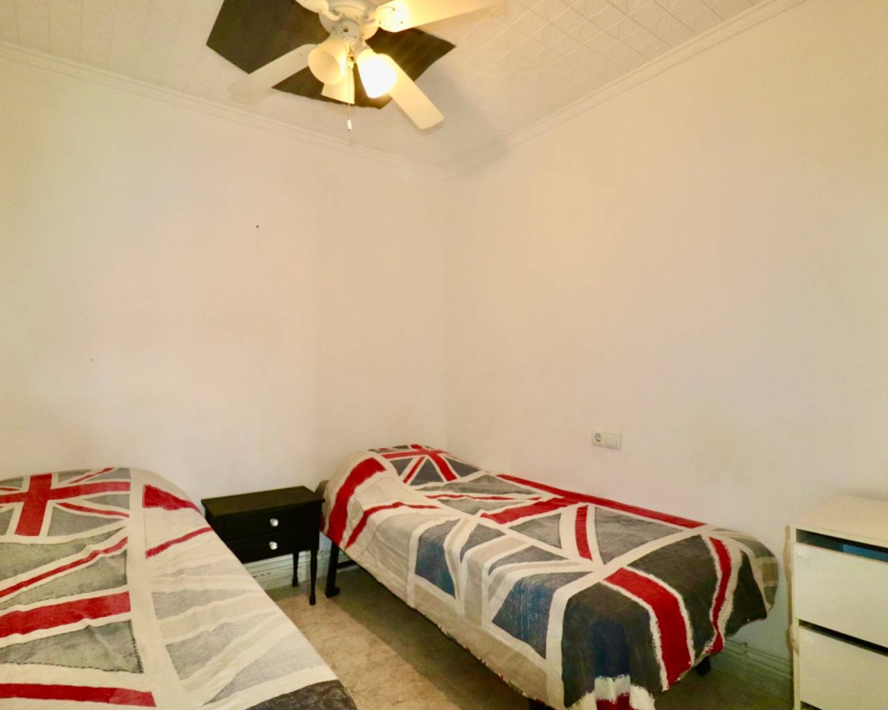 Charmante geschakelde bungalow te koop in de populaire wijk La Siesta, Torrevieja. Deze woning beschikt over 2 slaapkamers, 1 moderne badkamer, een gezellige woonkamer en een open keuken die recent is gerenoveerd. Ook de badkamer is onlangs vernieuwd. Daarnaast beschikt de bungalow over een ruime, fraai aangelegde tuin met recent vernieuwde zonneschermen. De bungalow is gelegen in een gewilde omgeving, dicht bij alle voorzieningen en daardoor perfect als vakantiewoning, investering of voor permanente bewoning. De community heeft recent een gemeenschappelijk zwembad aangelegd. Indien gewenst kun je je inkopen om hiervan gebruik te maken.Afstanden: Strand: circa 10 minuten rijdenCentrum Torrevieja: circa 10 minuten rijdenLuchthaven Alicante: circa 40 minuten rijdenWinkels, restaurants en supermarkten: op loopafstand