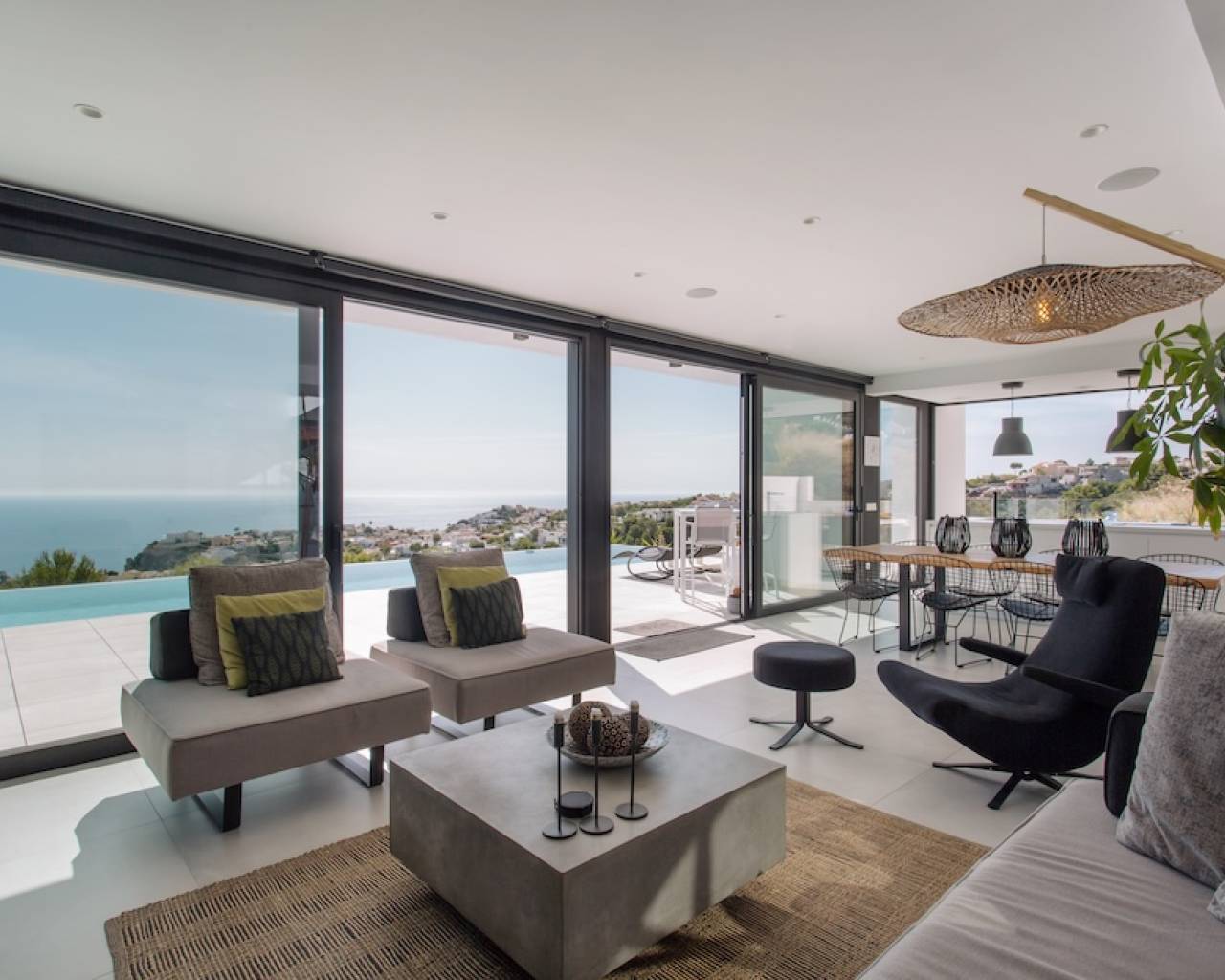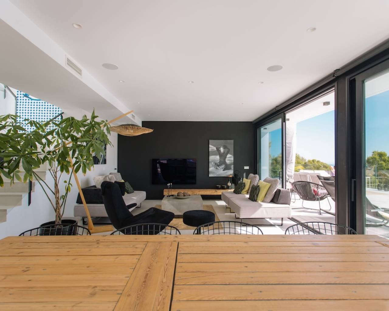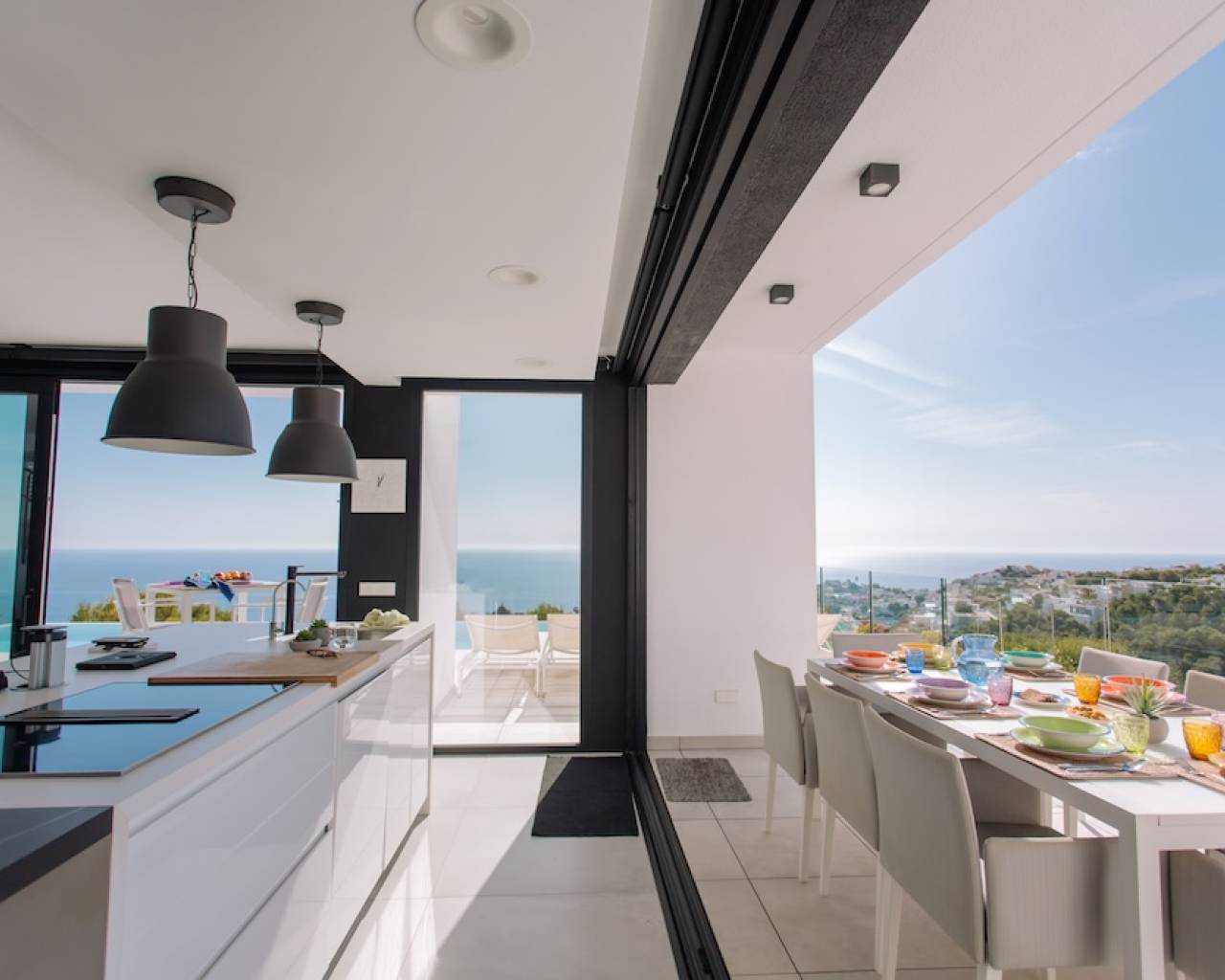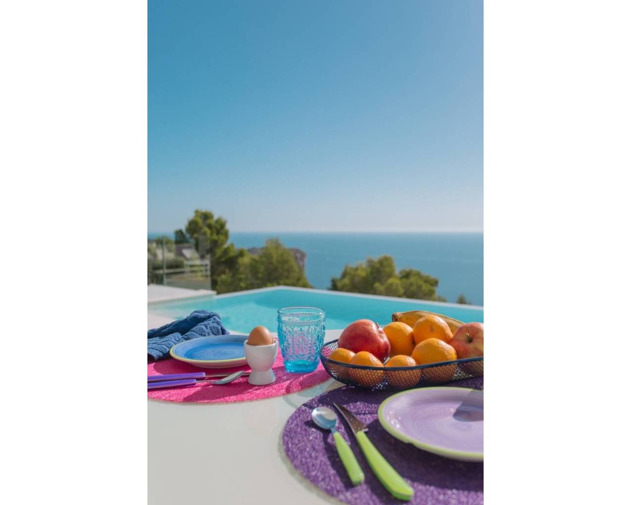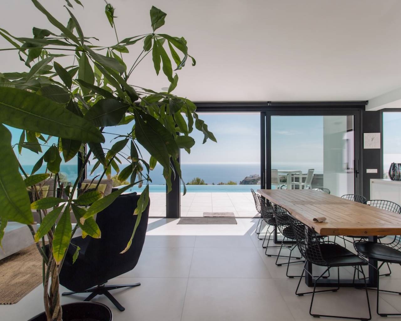 Welkom in uw nieuwe paradijs in Cumbre del Sol! Deze luxe villa biedt u een unieke ervaring met adembenemende panoramische uitzichten over de Middellandse Zee en het eiland Ibiza. Op de eerste verdieping wordt u verwelkomd door een elegante master bedroom met en-suite badkamer, geflankeerd door twee extra tweepersoonsslaapkamers. De open woonkamer, met geïntegreerde keuken en toilet, vormt het hart van het huis en biedt een adembenemend uitzicht op zee. De open keuken, ideaal voor de zomer, is voorzien van grote ramen die de ruimte overspoelen met natuurlijk licht. Op de woonverdieping vindt u een tweede master bedroom met en-suite badkamer en dubbele wastafels. Geniet van het verwarmde overloopzwembad van 11,6 x 4 meter en ontspan op de ruime terrassen met uitzicht op zee. De woonkamer beneden, met houten vloeren en een vuurkorf, is perfect voor koelere avonden. Ook de buitenkant van de villa is prachtig: een pergola van saxun, drie zonneschermen en mediterrane tuinen met een oude olijfboom, palmen en fruitbomen maken dit juweel compleet. Met een bebouwde oppervlakte van 353 m² (inclusief 200 m² woonoppervlak), 4 slaapkamers, 4 badkamers, inbouwkasten en een berging, verkeert deze woning uit 2019 in uitstekende staat. De woning beschikt tevens over een warmtepomp voor warm en koud water, een ligging op het zuiden en oosten, een perceel van 774 m² en een garage. Mis deze kans niet om te wonen in deze luxe oase met energieklasse A!