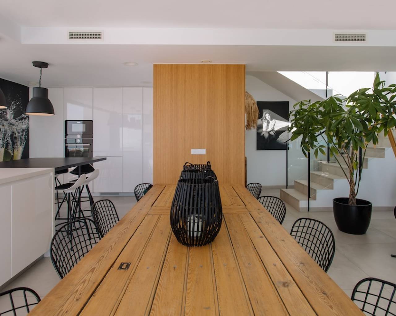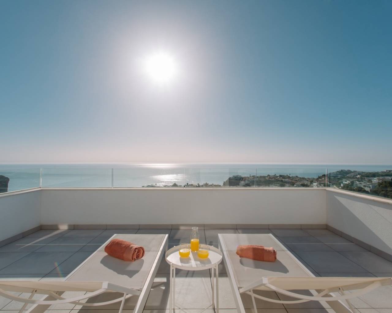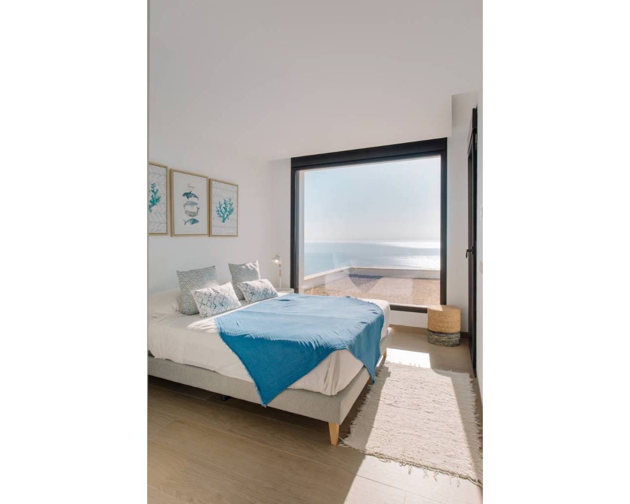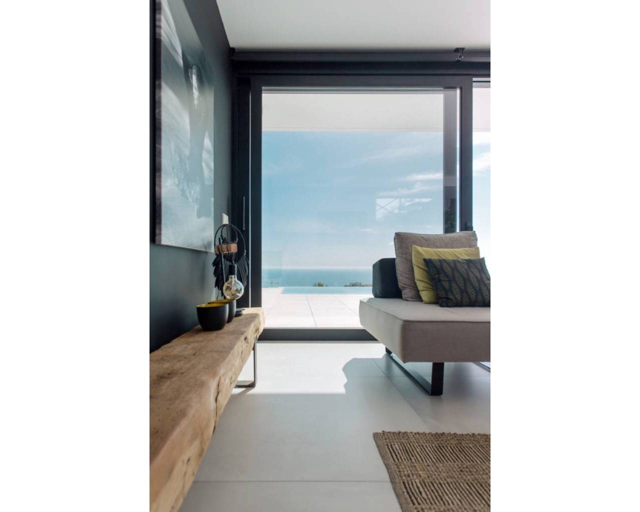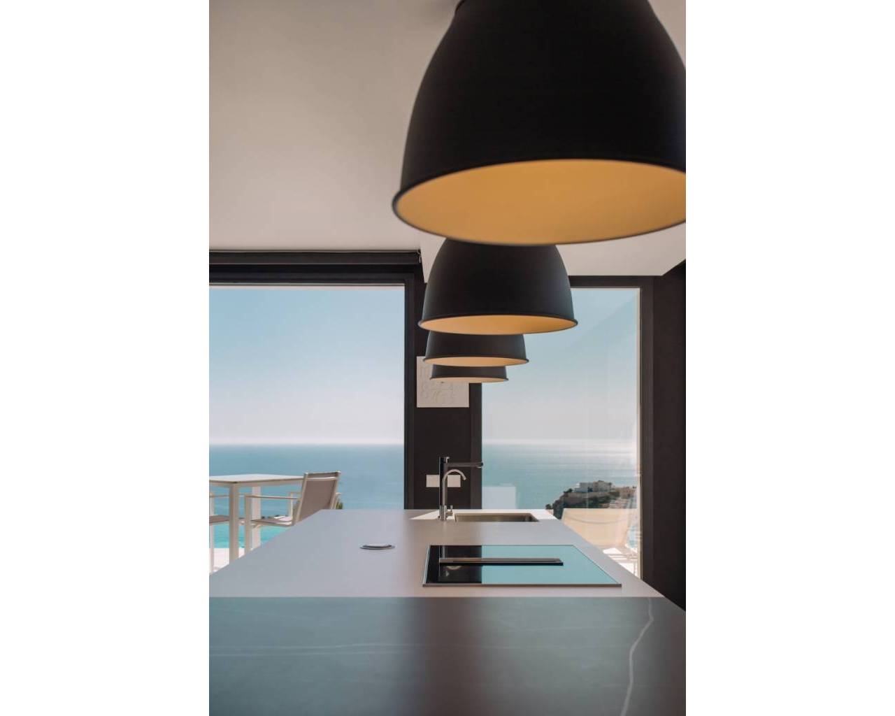 Welkom in uw nieuwe paradijs in Cumbre del Sol! Deze luxe villa biedt u een unieke ervaring met adembenemende panoramische uitzichten over de Middellandse Zee en het eiland Ibiza. Op de eerste verdieping wordt u verwelkomd door een elegante master bedroom met en-suite badkamer, geflankeerd door twee extra tweepersoonsslaapkamers. De open woonkamer, met geïntegreerde keuken en toilet, vormt het hart van het huis en biedt een adembenemend uitzicht op zee. De open keuken, ideaal voor de zomer, is voorzien van grote ramen die de ruimte overspoelen met natuurlijk licht. Op de woonverdieping vindt u een tweede master bedroom met en-suite badkamer en dubbele wastafels. Geniet van het verwarmde overloopzwembad van 11,6 x 4 meter en ontspan op de ruime terrassen met uitzicht op zee. De woonkamer beneden, met houten vloeren en een vuurkorf, is perfect voor koelere avonden. Ook de buitenkant van de villa is prachtig: een pergola van saxun, drie zonneschermen en mediterrane tuinen met een oude olijfboom, palmen en fruitbomen maken dit juweel compleet. Met een bebouwde oppervlakte van 353 m² (inclusief 200 m² woonoppervlak), 4 slaapkamers, 4 badkamers, inbouwkasten en een berging, verkeert deze woning uit 2019 in uitstekende staat. De woning beschikt tevens over een warmtepomp voor warm en koud water, een ligging op het zuiden en oosten, een perceel van 774 m² en een garage. Mis deze kans niet om te wonen in deze luxe oase met energieklasse A!