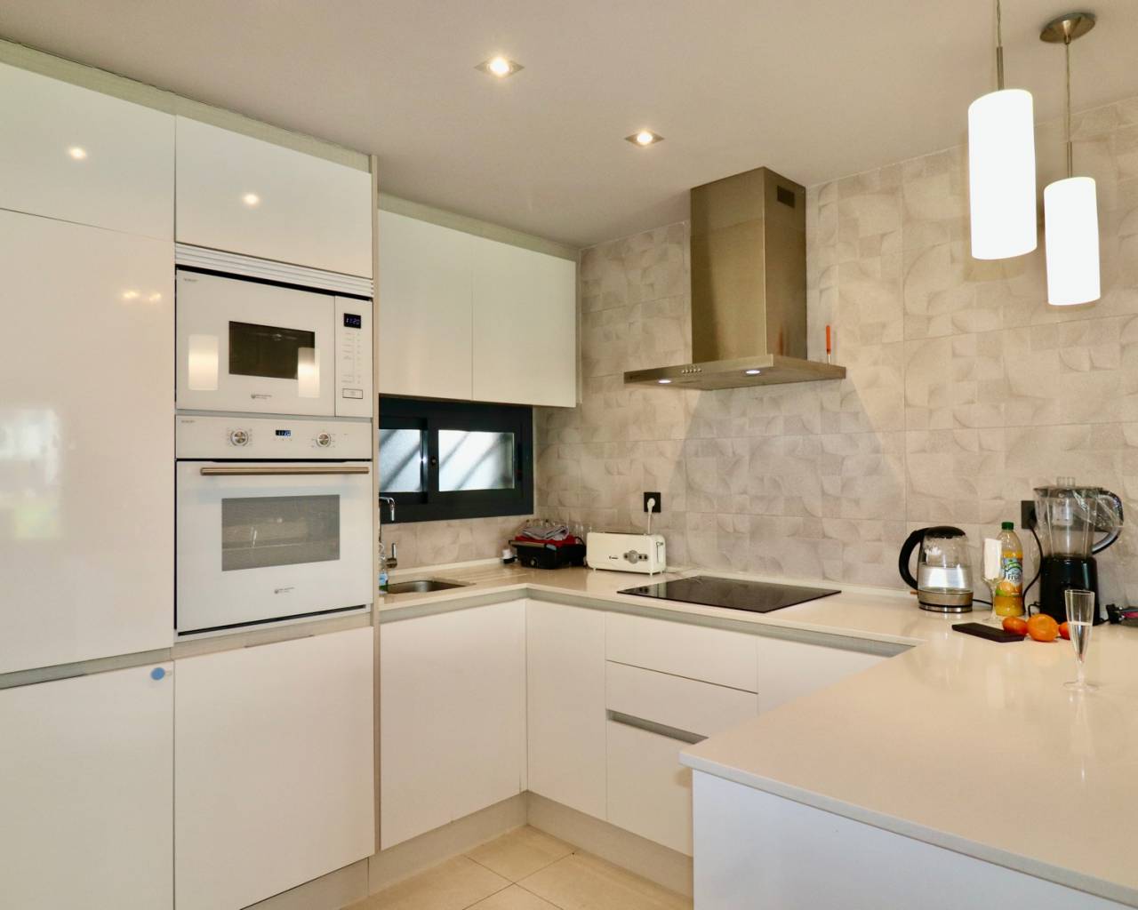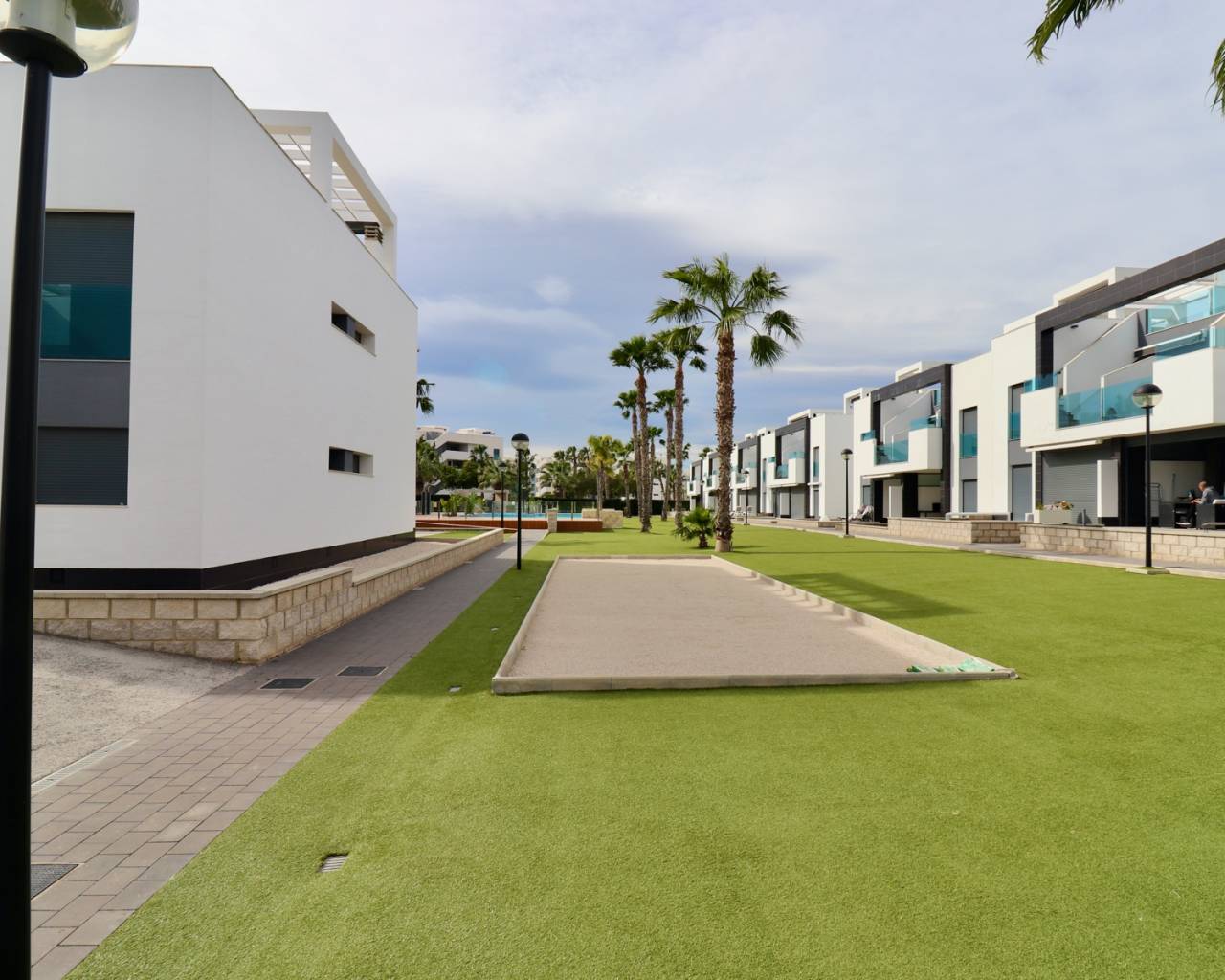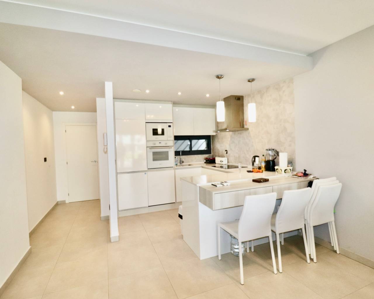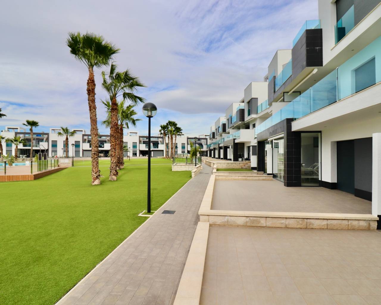 Dit moderne appartement is gelegen in een rustige, recent ontwikkelde woonwijk nabij Guardamar del Segura, een populaire badplaats aan de Costa Blanca. In de buurt vindt u allerlei voorzieningen zoals gezellige cafés, winkels, restaurants, boetieks en een prachtig natuurgebied met wandelpaden naar de charmante haven. Het brede zandstrand van Guardamar is gemakkelijk bereikbaar en ideaal om te ontspannen. De centrale ligging zorgt ervoor dat u snel andere mooie plekken kunt bereiken, en golfbanen en grote winkelcentra zijn ook gemakkelijk te bereiken. Dit maakt deze locatie perfect voor een heerlijke vakantie of om er permanent te wonen. Het appartementencomplex is recent gebouwd en biedt veel rust en comfort. Bewoners kunnen gebruikmaken van diverse luxe voorzieningen, waaronder een groot buitenzwembad met aangelegde tuinen en een wellnessruimte met een heerlijke jacuzzi. Er is tevens een eigen parkeerplaats bij het appartement. Het appartement zelf bevindt zich op de begane grond, heeft een oppervlakte van 105 m2 en is gemakkelijk bereikbaar. Er is ook een lift in het complex. U komt binnen in een lichte woonkamer met open keuken. Vanuit de woonkamer stapt u op het ruime terras met uitzicht op de fraai aangelegde gemeenschappelijke tuin en een van de twee grote zwembaden. De indeling bestaat verder uit een hoofdslaapkamer met eigen badkamer en toegang tot het terras, 2 slaapkamers, een aparte badkamer en een praktische berging/wasruimte. Extra's zijn onder andere airconditioning (warm/koud), elektrische rolluiken, video-intercom, elektrische zonwering, camerabewaking in het hele complex en volledige meubilering bij oplevering. Guardamar del Segura staat bekend om zijn uitgestrekte zandstranden en aangename boulevard. Het centrum biedt tal van voorzieningen en een ontspannen sfeer. De luchthaven van Alicante ligt op slechts 30 minuten rijden.