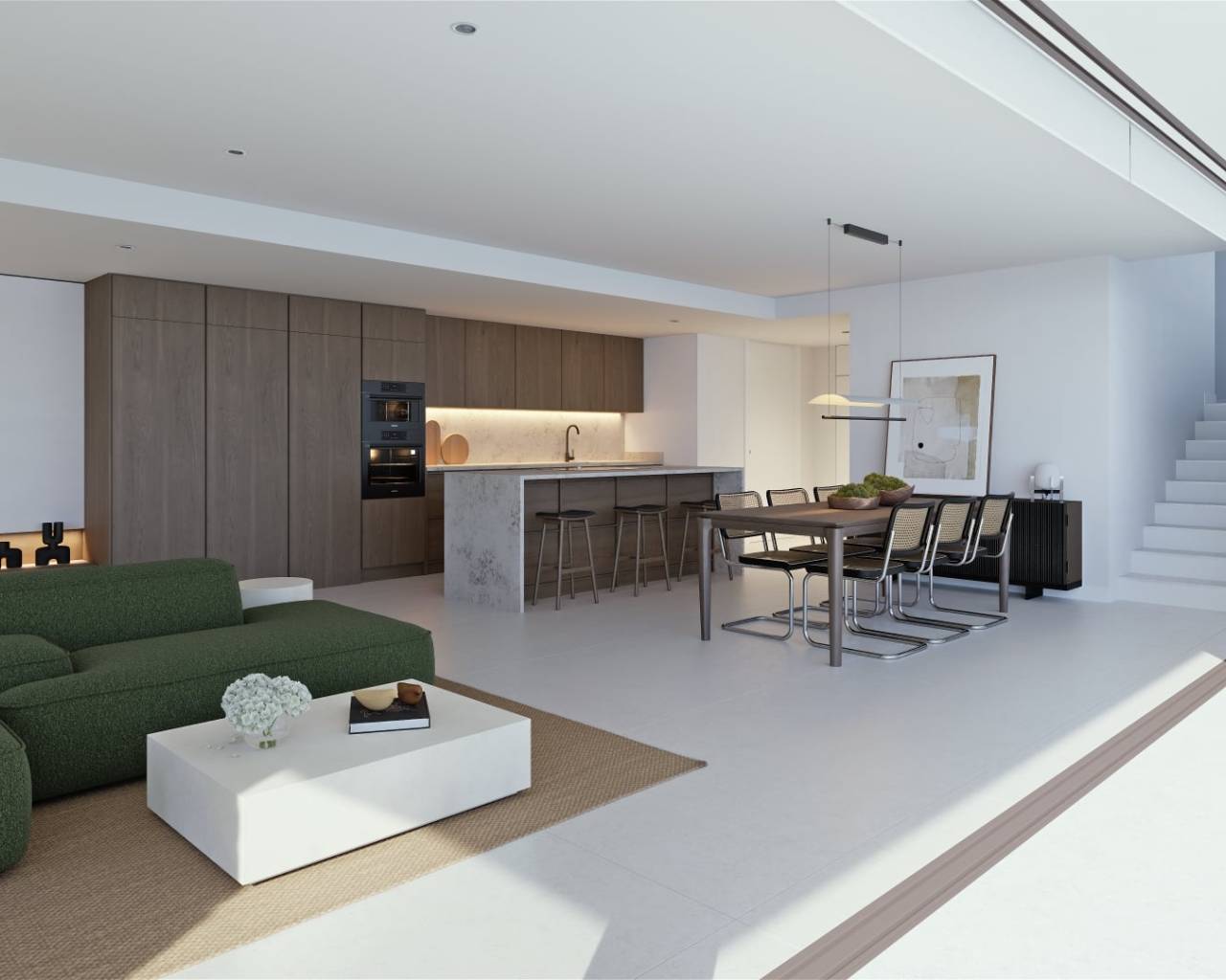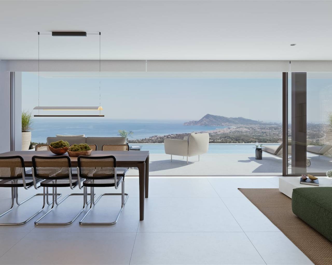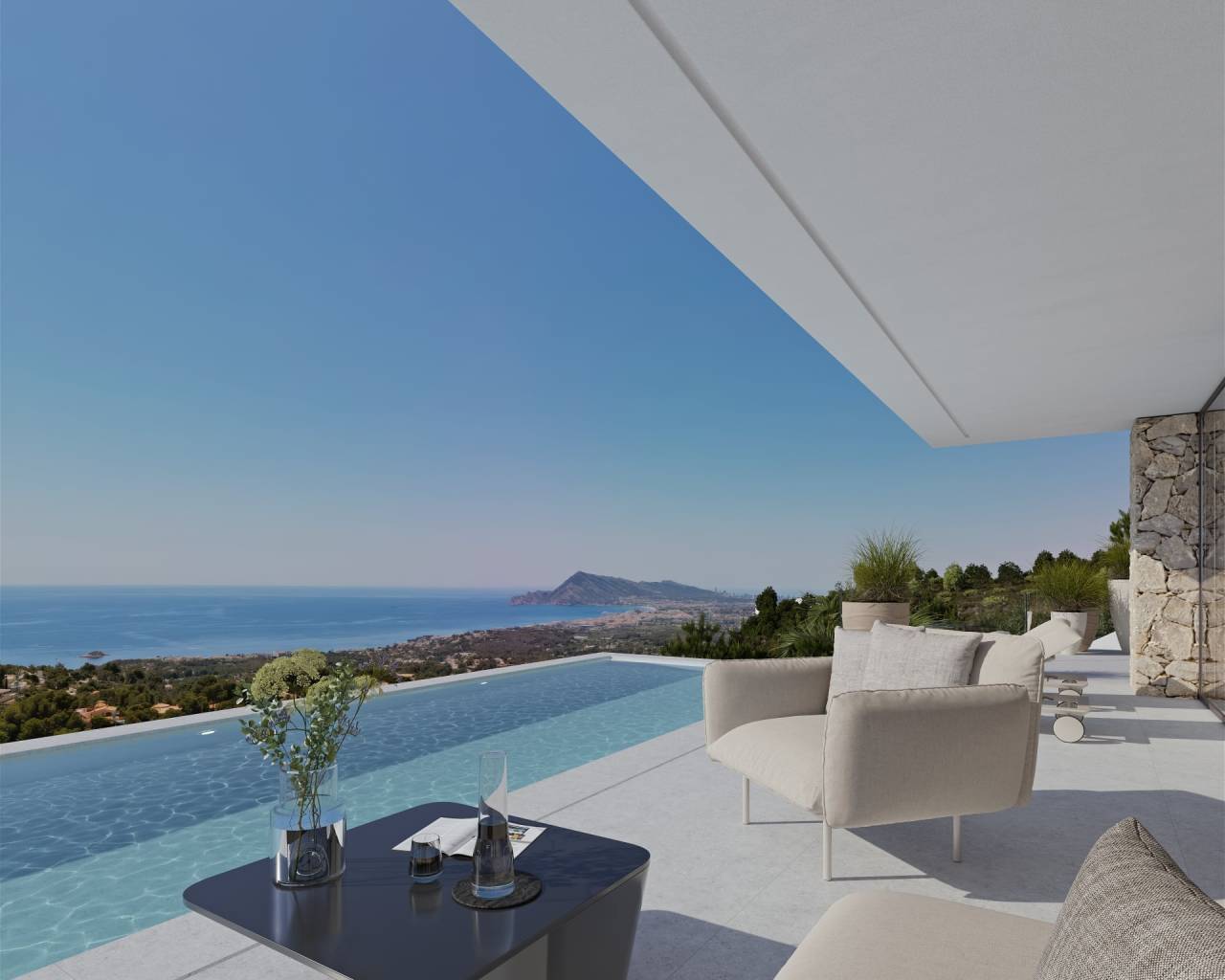 Gelegen in het charmante stadje Altea, bieden deze exclusieve villa's een bevoorrechte omgeving met uitzicht op zee. Met slechts twee beschikbare eenheden is elke villa ontworpen om een luxueuze en comfortabele levensstijl te bieden. De nabijheid van de zee, op slechts 3 km afstand, maakt het mogelijk om te genieten van de zeebries en indrukwekkende landschappen. Deze villa's zijn ideaal voor degenen die op zoek zijn naar een woning in een rustige en verfijnde omgeving, met alle moderne gemakken.BUITENRUIMTESDe buitengebieden van deze villa's in Altea zijn ontworpen om optimaal te genieten van de natuurlijke omgeving. Elke villa beschikt over een privé tuin, perfect om te ontspannen of te genieten van buitenactiviteiten. De aanwezigheid van een privézwembad voegt een vleugje exclusiviteit toe, waardoor het mogelijk is om af te koelen op warme dagen of gewoon te genieten van een duik in de privacy van uw eigen huis. De ruime terrassen bieden extra ruimte voor recreatie, ideaal voor diners in de buitenlucht of om te genieten van het uitzicht op zee.BINNENRUIMTESHet interieur van de villa's is zorgvuldig ontworpen om maximaal comfort en functionaliteit te bieden. Met vier slaapkamers en vijf badkamers is elke ruimte geoptimaliseerd voor het welzijn van de bewoners. De villa's zijn uitgerust met een domoticasysteem dat het beheer van verschillende functies in huis vergemakkelijkt, wat comfort en efficiëntie garandeert. Ingebouwde kasten bieden praktische en elegante opbergruimte. Bovendien beschikken ze over een privé garage, die veiligheid en gemak voor de voertuigen van de bewoners garandeert.GEMEENSCHAPPELIJKE RUIMTESDe gemeenschappelijke ruimtes van deze residentie omvatten groene gebieden die de natuurlijke omgeving van Altea aanvullen. Deze groene ruimtes zijn ontworpen om een ontspannende en aangename sfeer te bieden, waar bewoners kunnen genieten van de natuur en de frisse lucht.