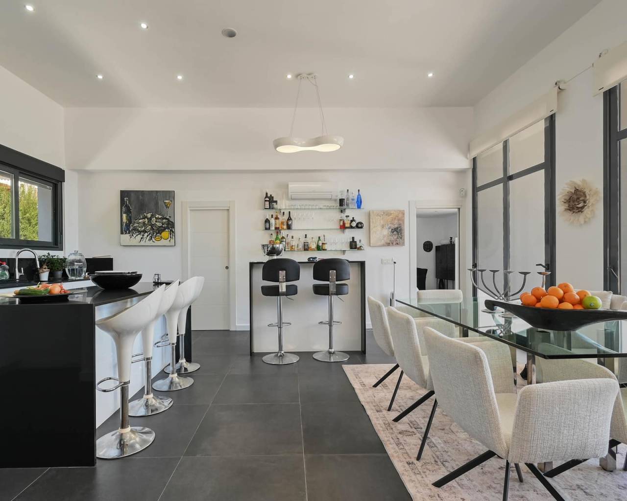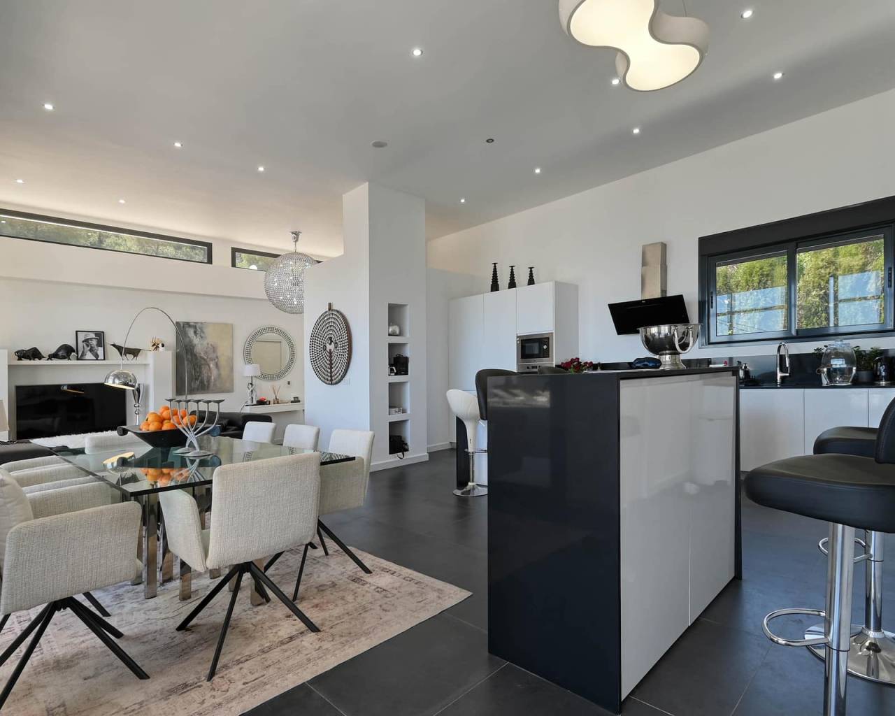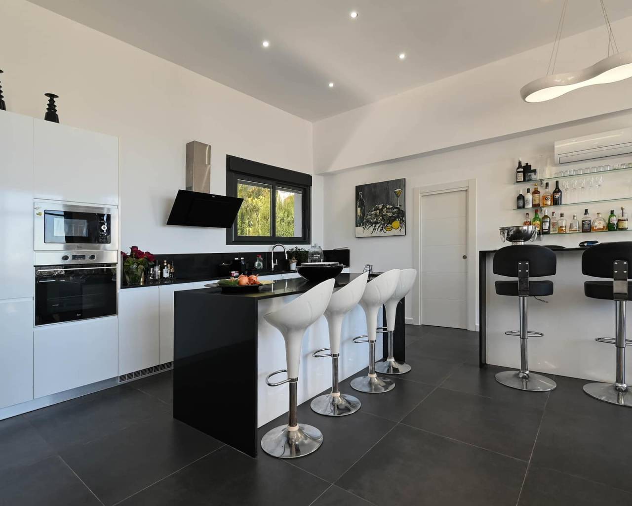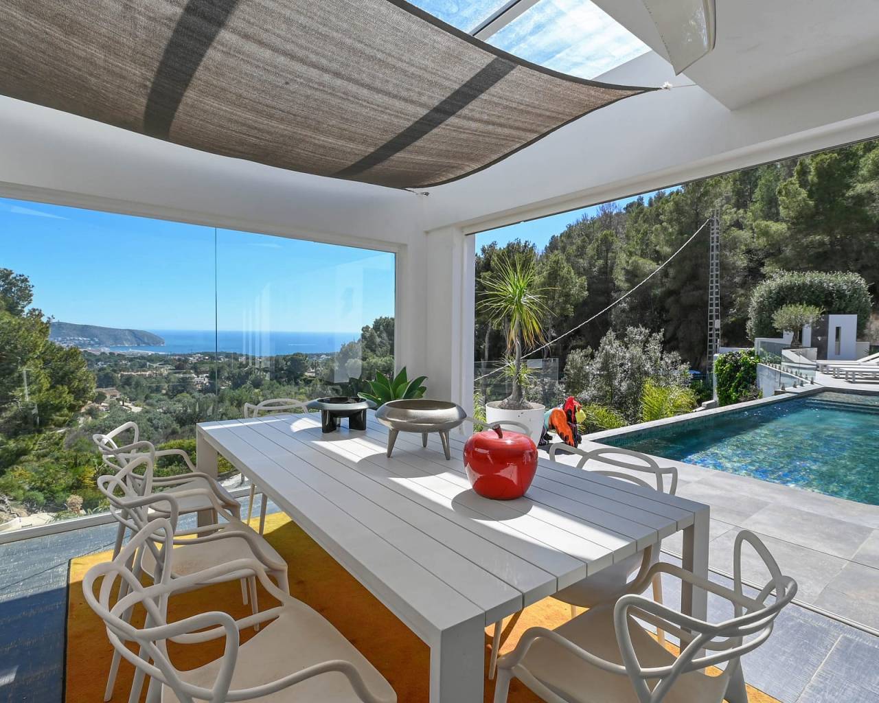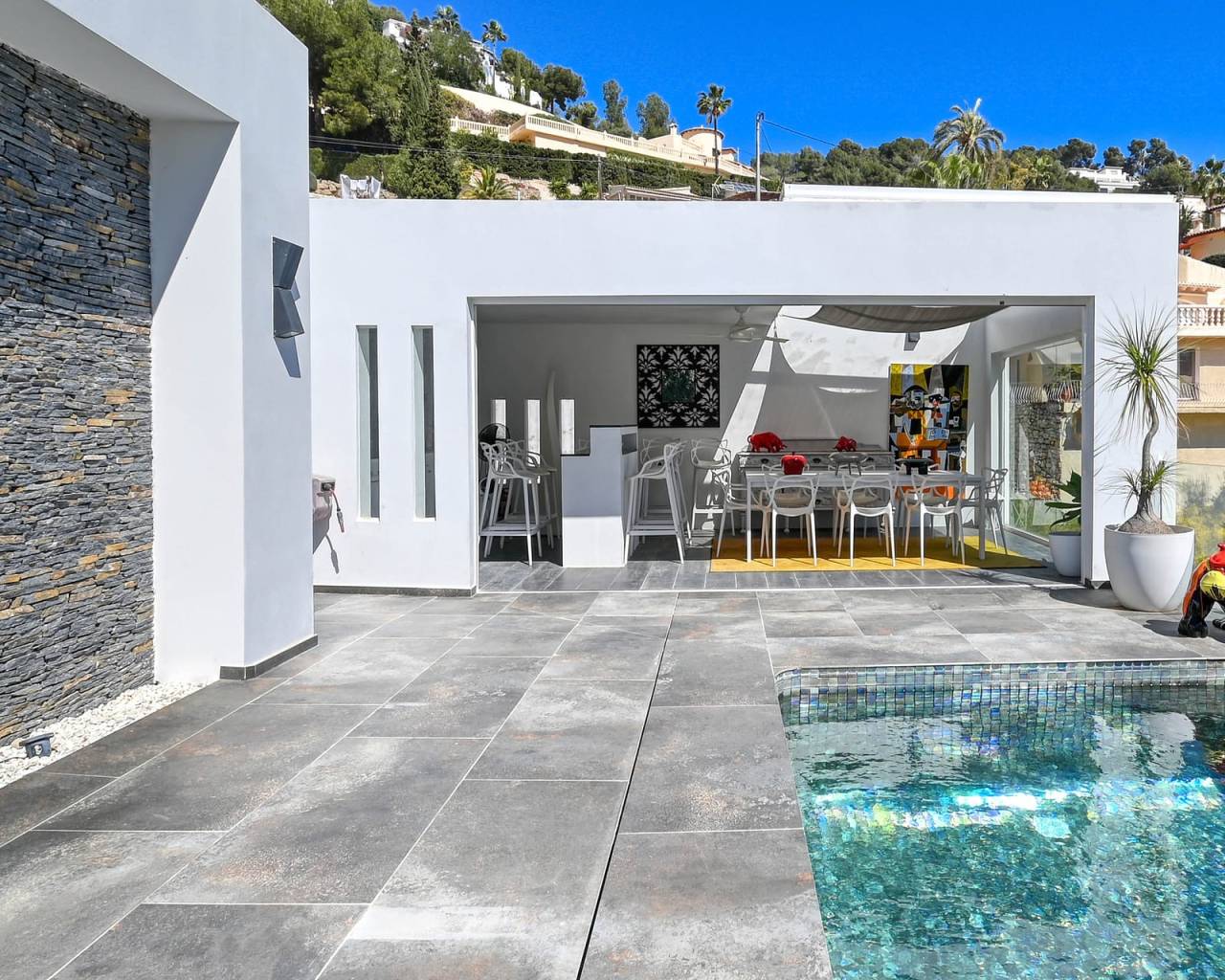 Hedendaagse luxe villa met panoramisch uitzicht op zee in Moraira Moraira - Villa, een opvallende, eigentijdse residentie in Benimeit, is een toonbeeld van moderne mediterrane luxe en biedt moeiteloze verfijning met een adembenemend uitzicht op zee en een uitzonderlijk design. Gebouwd in 2018, creëren strakke architectonische lijnen en plafonds van 3,5 meter hoog een gevoel van ruimte en licht in de open woonruimte, waar een volledig geïntegreerd geluidssysteem en vloerverwarming het dagelijks leven verrijken. De keuken loopt naadloos over in de eet- en woonkamer, met directe toegang tot een bijkeuken voor extra functionaliteit. Het hart van de woning is de master suite, die ronduit spectaculair is, omlijst door een panoramisch uitzicht op zee en aangevuld met een inloopkast met een centraal geplaatst vrijstaand bad, een perfecte combinatie van luxe en design. Elke slaapkamer is voorzien van een eigen en-suite badkamer, inclusief een aparte gastenkamer, wat privacy en comfort biedt voor zowel familie als bezoekers. Een gastentoilet, een aparte berging, airconditioning door het hele huis en een volledig alarmsysteem zorgen voor gemak en gemoedsrust. Buiten komt de woning pas echt tot zijn recht. Een verwarmd overloopzwembad met een terras nodigt uit tot lange, zonovergoten dagen, terwijl de ruime, vlakke terrassen uitzonderlijke ruimte bieden om gasten te ontvangen. Een volledig uitgeruste buitenkeuken en een overdekte zithoek maken het plaatje compleet – perfect om in stijl te entertainen. Een privé-oprit met plaats voor drie auto's maakt deze perfect ingerichte woning helemaal af. Naadloos binnen-buitenleven en verfijnd comfort kenmerken Moraira - Villa Costa Blanca. Hoogtepunten van de woning Panoramisch uitzicht op zee en landschap Hoofdgebouw en buitenruimte gelijkvloers 3 slaapkamers met eigen badkamer in de hoofdvilla 1 gastenverblijf met eigen badkamer en privé-ingang Overdekte zomerkeuken met verstelbare glazen afscheiding voor gebruik het hele jaar door Verwarmd zwembad met zonneterras 3,5 meter hoge plafonds in keuken en woonkamer Geïntegreerd 'MARK' geluidssysteem in keuken en woonkamer Handige en discrete bijkeuken Dubbele beglazing op alle ramen Elektrische rolgordijnen en jaloezieën voor comfort en privacy Beveiligde elektrische poort en bedieningspaneel voor voetgangers Geïntegreerd alarmsysteem voor gemoedsrust Over de omgeving Perfect gelegen op slechts enkele minuten van Moraira, biedt deze woning een uitzonderlijke balans tussen privacy en het bruisende leven aan de kust. Binnen 5-10 minuten bent u van de rustige, hoger gelegen Benimeit in het hart van de jachthaven van Moraira. Gouden stranden en een verfijnde culinaire scene. Denk aan zonovergoten ochtenden aan zee, lange lunches met uitzicht op de jachthaven. En een levensritme dat zowel verfijnd als verfrissend ontspannen aanvoelt. Het is een levensstijl die moeiteloos privacy combineert met bereikbaarheid, waar het bezit van een huis een investering wordt in hoe goed je leeft.