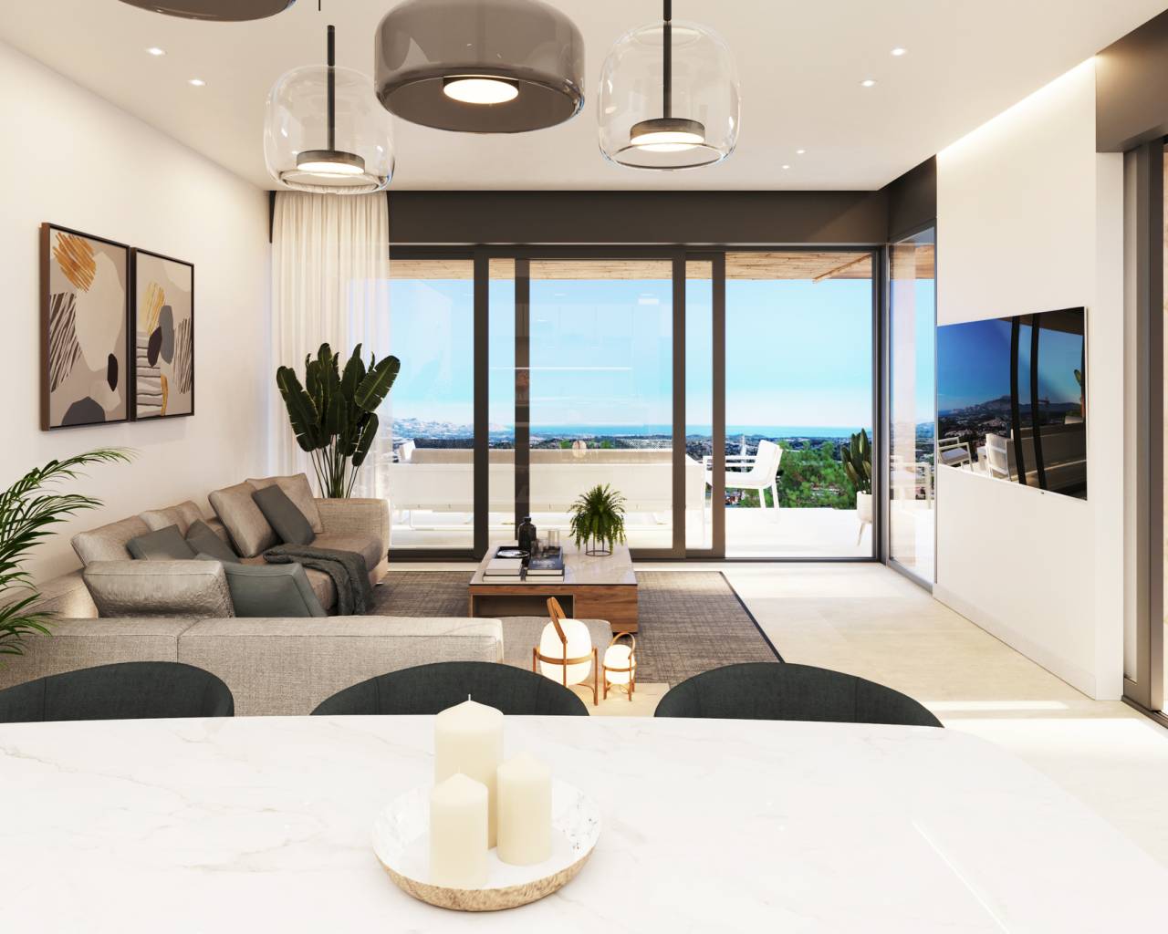 Gelegen in het charmante stadje Polop, biedt deze exclusieve gemeenschap van 49 onafhankelijke woningen een bevoorrechte omgeving met uitzicht op zee. De eigendommen zijn ontworpen voor degenen die op zoek zijn naar een modern en comfortabel huis, met opties van 2, 3 of 4 slaapkamers en 2 of 3 badkamers, aangepast aan de behoeften van elk gezin. De eigentijdse architectuur en de hoogwaardige afwerkingen zorgen voor een verfijnde levensstijl in een ongeëvenaarde natuurlijke omgeving. BUITENRUIMTES De woningen beschikken over ruime buitenruimtes, waaronder een privétuin en een terras, ideaal om te genieten van het mediterrane klimaat. Bovendien heeft elke woning een solarium en een pergola, perfect om te ontspannen en te genieten van het indrukwekkende uitzicht op zee. De aanwezigheid van een privézwembad en een jacuzzi voegt een vleugje luxe en comfort toe, waardoor u kunt genieten van momenten van vrije tijd en ontspanning in de privacy van uw eigen huis. BINNENRUIMTES Het interieur van de woningen is ontworpen om maximaal comfort en functionaliteit te bieden. Uitgerust met airconditioning en moderne apparaten, zorgen deze huizen het hele jaar door voor een aangename sfeer. De keramische vloeren geven een elegante uitstraling en zijn gemakkelijk te onderhouden. De woningen beschikken ook over inbouwkasten, elektrische rolluiken en een video-intercom, wat comfort en veiligheid garandeert. De indeling omvat een garage, die een veilige parkeerplaats biedt.