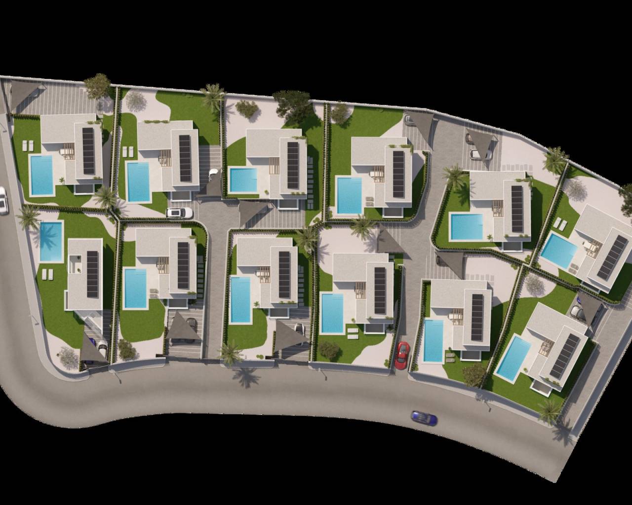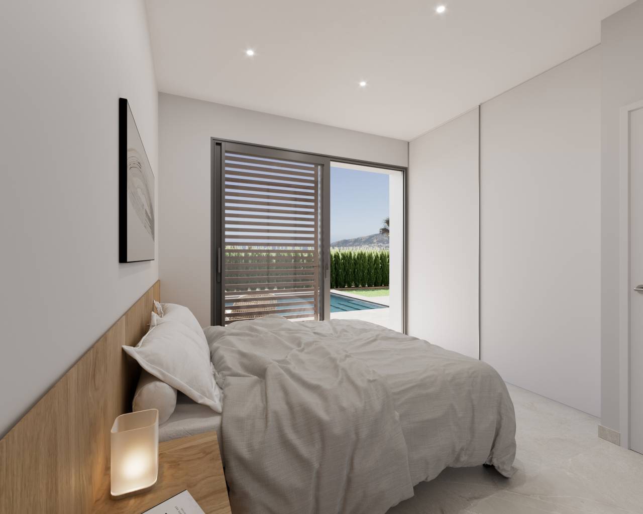 Gelegen in het charmante dorpje Alfaz del Pi, biedt dit exclusieve complex van 11 vrijstaande chalets een bevoorrechte omgeving met uitzicht op zee. De locatie is ideaal voor wie op zoek is naar een balans tussen rust en nabijheid van voorzieningen, met de zee op slechts 5 km en de luchthaven op 27 km. Deze chalets vallen op door hun moderne en functionele ontwerp, aangepast aan de behoeften van het hedendaagse leven. De woningtypologie is "Vrijstaand", wat privacy en een unieke ruimte voor elke familie garandeert. BUITENRUIMTES De buitenruimtes van deze woningen zijn ontworpen om optimaal te genieten van het mediterrane klimaat. Elk chalet heeft een privé tuin, perfect om een persoonlijke oase van rust te creëren. De terrassen bieden extra ruimte voor buitenplezier, ideaal voor diners bij zonsondergang of ontspannende momenten met uitzicht op zee. Bovendien is er de optie om een privézwembad toe te voegen, wat een vleugje luxe en exclusiviteit toevoegt. De aanwezigheid van pergola's biedt schaduw en comfort, waardoor de buitenruimtes het hele jaar door een aangename plek zijn. BINNENRUIMTES Het interieur van de chalets is zorgvuldig ontworpen voor comfort en functionaliteit. Met een indeling die 3 slaapkamers en 2 badkamers omvat, is elke ruimte geoptimaliseerd voor het welzijn van de bewoners. De keramische vloeren geven een moderne uitstraling en zijn gemakkelijk te onderhouden. De woningen zijn uitgerust met airconditioning, wat een aangename temperatuur garandeert in elk seizoen. De keuken is voorzien van moderne apparatuur, wat het dagelijks leven vergemakkelijkt. Ingebouwde kasten bieden efficiënte opslag, terwijl de optie voor elektrische autolading een toewijding aan duurzaamheid weerspiegelt. GEMEENSCHAPPELIJKE RUIMTES De gemeenschappelijke ruimtes van dit wooncomplex omvatten aangelegde tuinen die uitnodigen tot wandelen en genieten van de natuurlijke omgeving. Daarnaast is er gemeenschappelijke parkeergelegenheid, wat gemak en veiligheid biedt voor de bewoners en hun bezoekers.