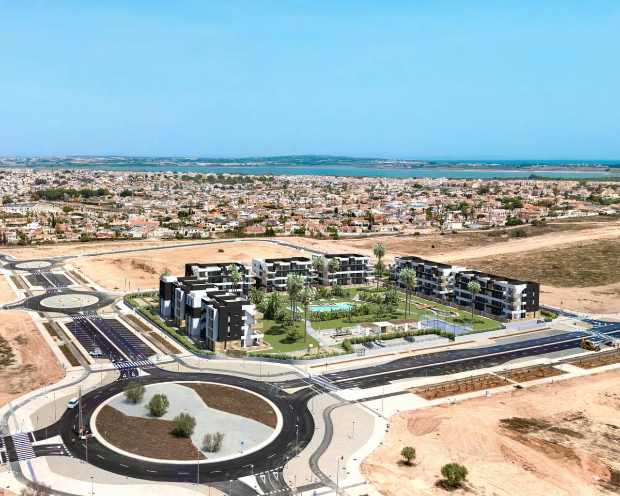 Gelegen in de charmante stad Torrevieja, biedt deze residentie een verscheidenheid aan woonopties die passen bij verschillende behoeften en levensstijlen. Met in totaal 112 eigendommen kunnen toekomstige bewoners kiezen uit appartementen, begane grond en penthouses, elk ontworpen om maximaal comfort en functionaliteit te bieden. De nabijheid van de zee, op slechts 5 km afstand, maakt het mogelijk om te genieten van de zeebries en spectaculaire uitzichten, terwijl de luchthaven op een handige afstand van 43,6 km ligt, wat nationale en internationale reizen vergemakkelijkt. BUITENRUIMTES De buitengebieden van deze residentie zijn ontworpen om een uitzonderlijke leefomgeving te bieden. Elke woning heeft een terras, ideaal om te genieten van het mediterrane klimaat en ontspannende momenten buiten. Bovendien beschikken de begane grond over een solarium, wat extra ruimte biedt voor vrije tijd en ontspanning. De aanwezigheid van garages zorgt voor gemak en veiligheid voor de voertuigen van de bewoners. De nabijheid van de zee, op slechts 5 km afstand, maakt het mogelijk om te genieten van kustwandelingen en watersportactiviteiten. BINNENRUIMTES Het interieur van de woningen is zorgvuldig ontworpen om een moderne en uitnodigende sfeer te bieden. De appartementen, begane grond en penthouses beschikken over twee slaapkamers en twee badkamers, wat voldoende ruimte biedt voor gezinnen of koppels. De woningen zijn uitgerust met airconditioning, wat het hele jaar door comfort garandeert. De porseleinen vloertegels voegen een vleugje elegantie en duurzaamheid toe, terwijl elektrische rolluiken en geïntegreerde apparaten een extra niveau van gemak bieden. Ingebouwde kasten bieden praktische en efficiënte opslagoplossingen. GEMEENSCHAPPELIJKE RUIMTES De residentie beschikt over een reeks gemeenschappelijke ruimtes die de woonervaring van de bewoners verrijken. Deze omvatten een gemeenschappelijk zwembad, perfect om af te koelen tijdens warme zomerdagen, en tuinen die een groene en rustige omgeving bieden. De kleintjes kunnen genieten van een veilige en leuke speeltuin, terwijl sportliefhebbers een padelbaan tot hun beschikking hebben om actief en gezond te blijven.
