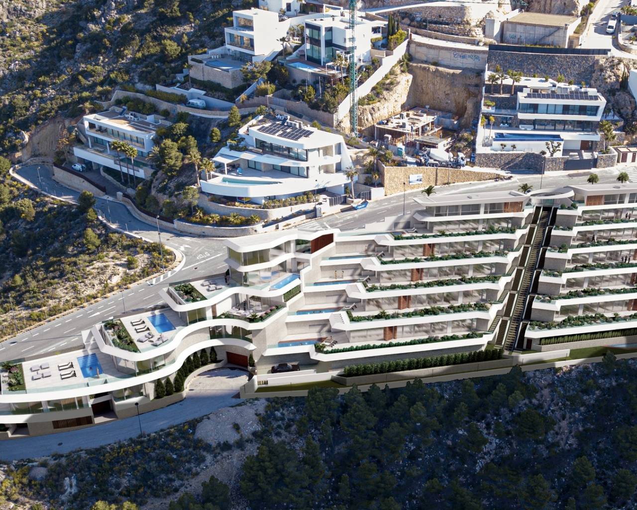 Gelegen in het charmante Pueblo Mascarat, biedt deze exclusieve residentie een selectie van appartementen en penthouses ontworpen voor degenen die op zoek zijn naar een verfijnde en ontspannen levensstijl. Met slechts 10 beschikbare woningen is elke woning zorgvuldig ontworpen om comfort en elegantie te maximaliseren. De bevoorrechte locatie biedt de mogelijkheid om te genieten van indrukwekkende uitzichten op zee en creëert een serene en exclusieve sfeer. De nabijheid van de zee, op slechts 400 meter afstand, maakt het mogelijk om te genieten van de zeebries en ontspannen wandelingen langs de kust. De woningen beschikken over moderne en functionele kenmerken zoals airconditioning, vloerverwarming en een domoticasysteem dat het beheer van het huis vergemakkelijkt. Bovendien zijn ze uitgerust met hoogwaardige apparatuur en een video-intercom voor extra veiligheid. De mogelijkheid om elektrische voertuigen op te laden en de aanwezigheid van pergola's in de buitenruimtes voegen een vleugje moderniteit en duurzaamheid toe aan het complex.
