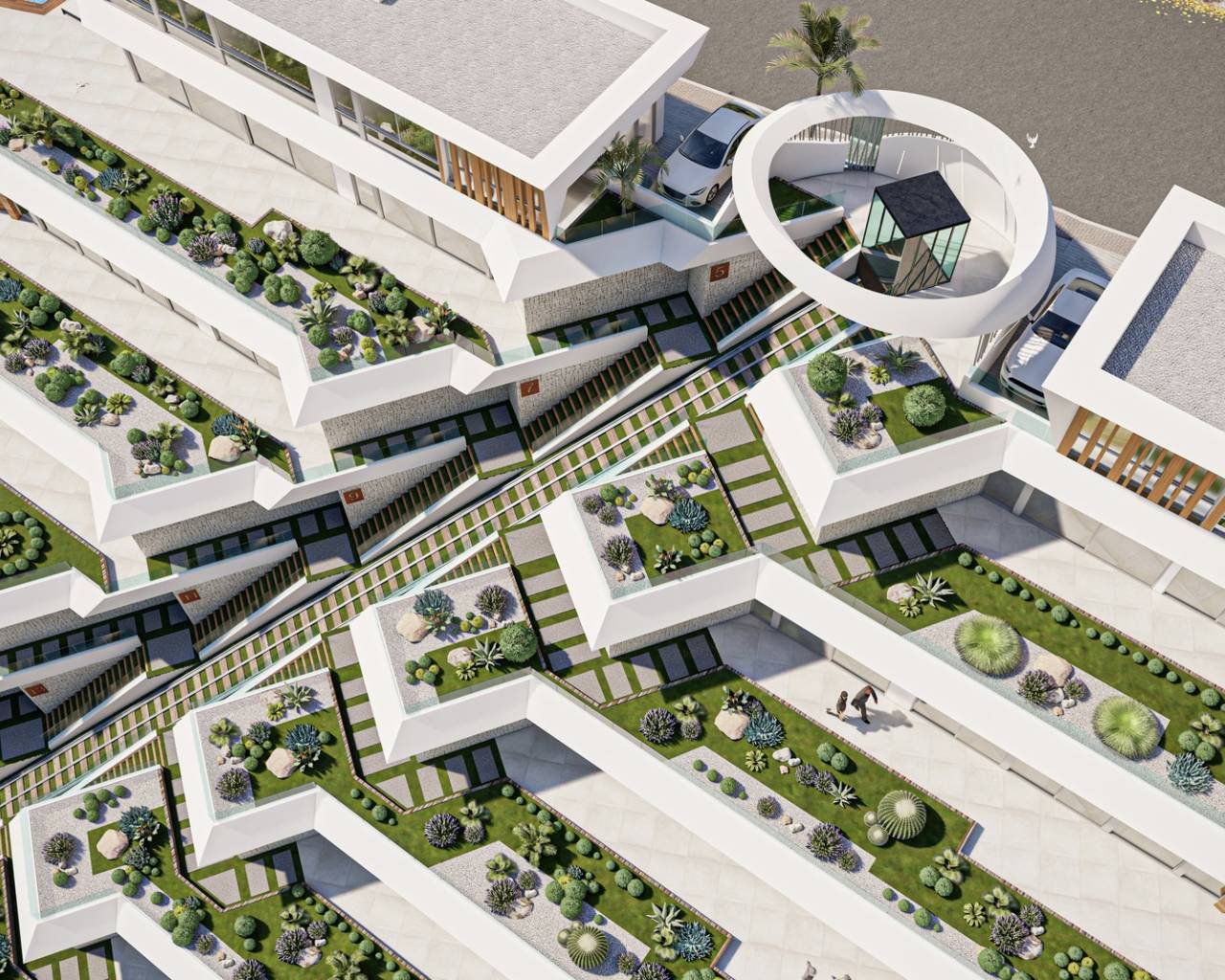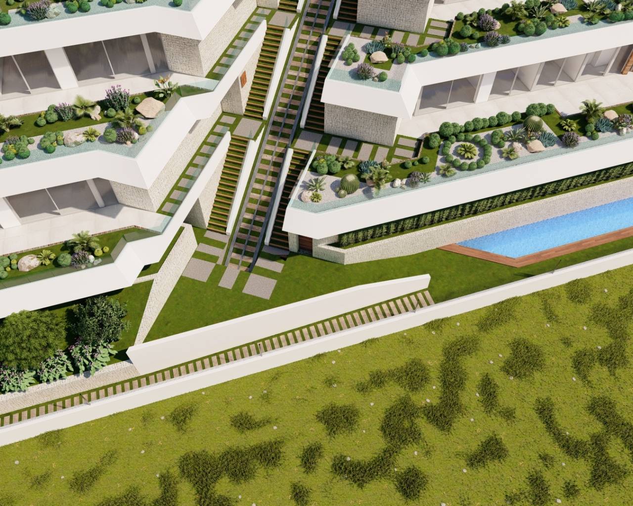 De buitenruimtes van deze woningen in Pueblo Mascarat zijn ontworpen om optimaal te genieten van de natuurlijke omgeving en het uitzicht op zee. Elke woning heeft een privéterras, ideaal om te ontspannen en van het landschap te genieten. Bovendien omvatten sommige woningen een privétuin, perfect voor degenen die op zoek zijn naar een persoonlijke groene ruimte. De aanwezigheid van een privézwembad in bepaalde typen maakt het mogelijk om te genieten van een verfrissende duik in de privacy van uw eigen huis. Pergola's bieden schaduw en stijl aan de buitenruimtes en creëren gezellige ruimtes voor ontspanning en buitenentertainment. De nabijheid van de zee, op slechts 400 meter afstand, maakt de toegang tot het strand gemakkelijk en snel, waardoor u op elk moment van de kust kunt genieten.