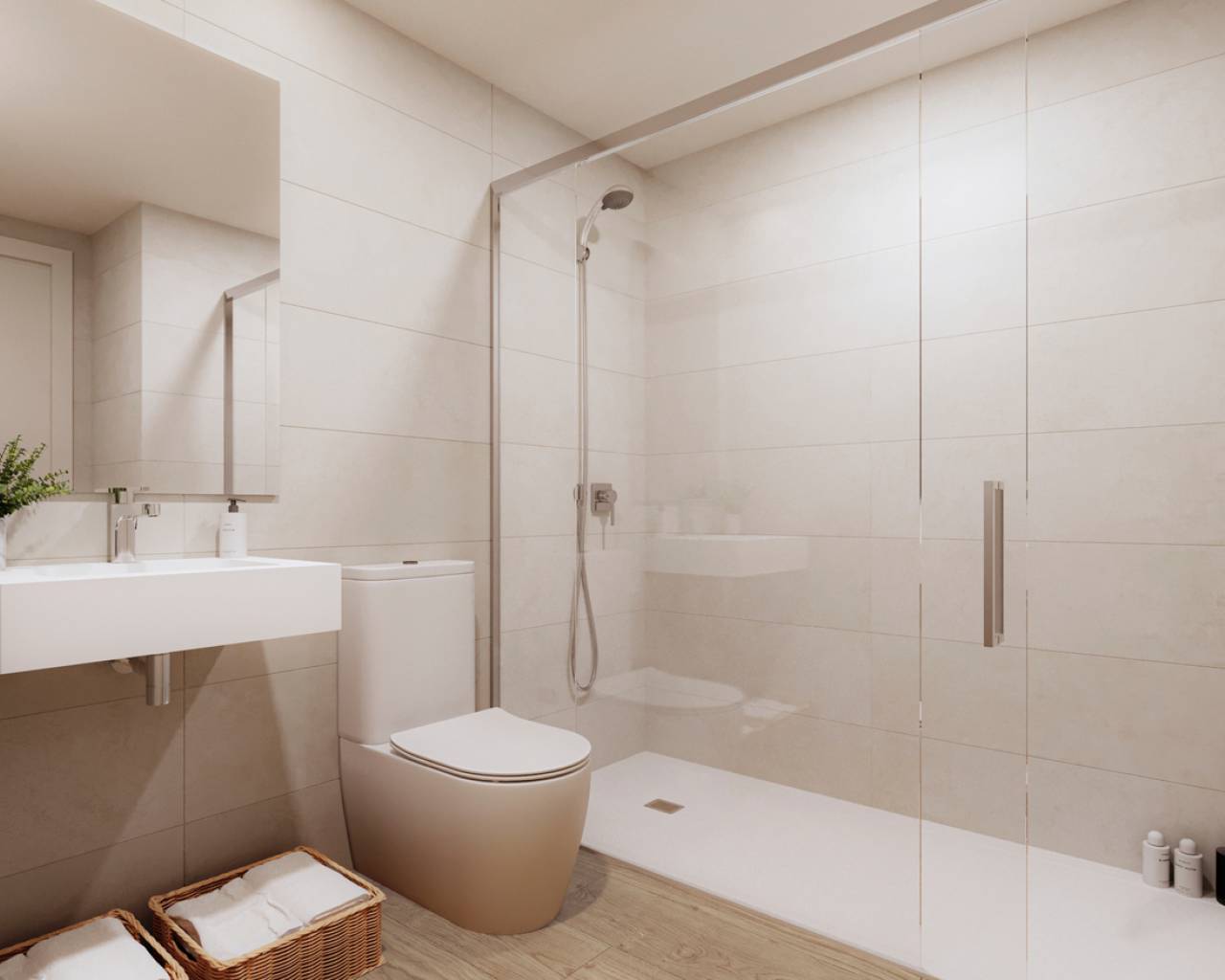 Het interieur van deze woningen is zorgvuldig ontworpen om een gezellige en functionele ruimte te bieden. De indelingsopties omvatten woningen met 2 en 3 slaapkamers, allemaal met 2 badkamers, wat comfort en privacy garandeert voor alle gezinsleden. De keuken is uitgerust met moderne apparatuur, wat de dagelijkse taken vergemakkelijkt. De airconditioning zorgt voor een aangename omgeving gedurende het hele jaar, terwijl de ingebouwde kasten efficiënte en georganiseerde opslag bieden. De porseleinen tegelvloeren zijn niet alleen esthetisch aantrekkelijk, maar ook gemakkelijk te onderhouden, wat een lange duurzaamheid verzekert.