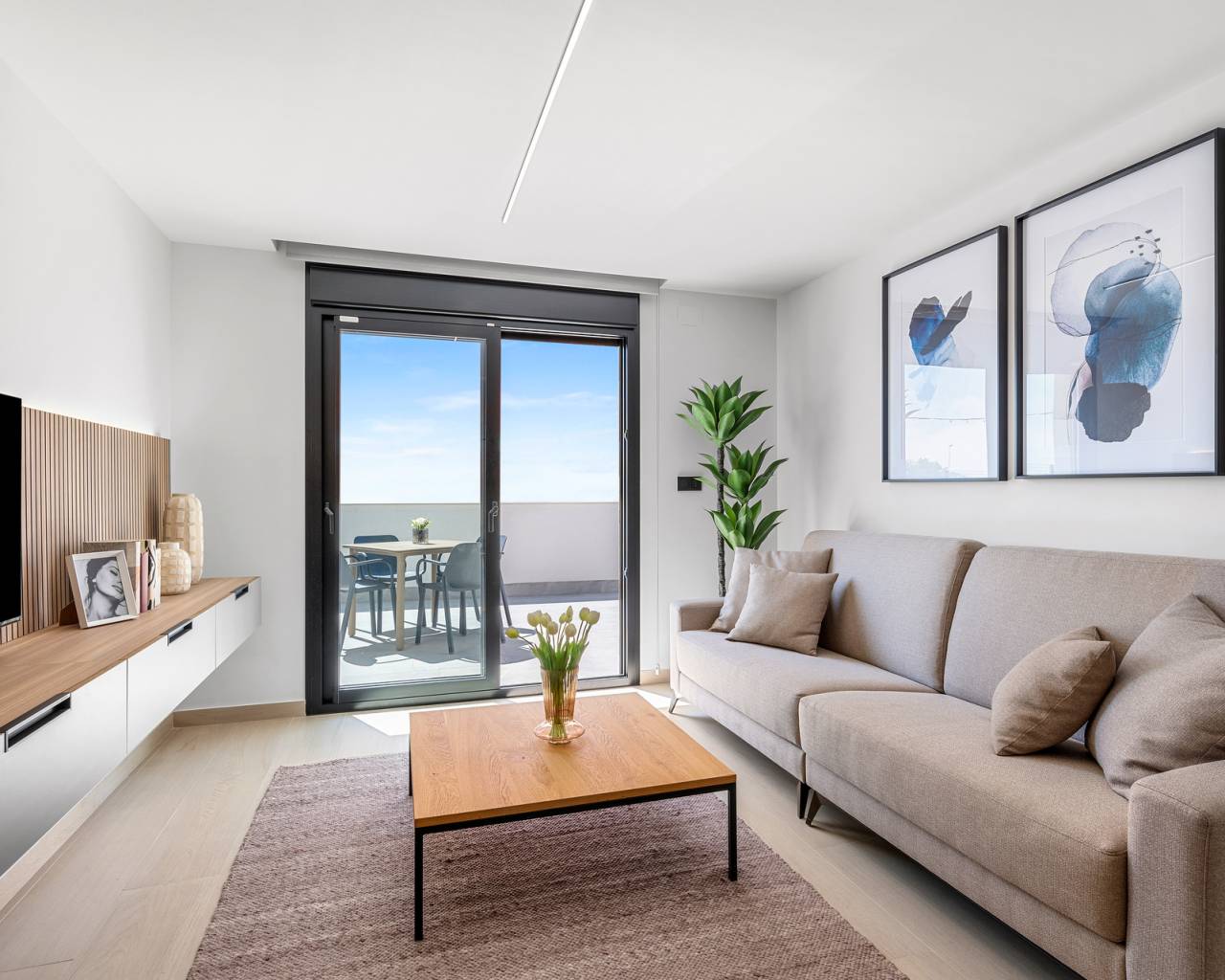 Gelegen in de charmante stad Guardamar del Segura, biedt dit wooncomplex een selectie van 44 woningen die zijn ontworpen om te voldoen aan de behoeften van de meest veeleisende kopers. De typologieopties omvatten appartementen, begane grond en penthouses, elk met unieke kenmerken die comfort en stijl garanderen. De nabijheid van de zee, op slechts 4 km afstand, en de luchthaven, op 38 km afstand, maakt deze locatie ideaal voor zowel degenen die een permanente woning zoeken als voor degenen die een tweede woning dicht bij de kust willen. De woningen zijn uitgerust met airconditioning, ingebouwde kasten en apparatuur, wat ervoor zorgt dat elk detail is doordacht voor het comfort van de bewoners. Bovendien geven de porseleinen tegelvloeren en de elektrische rolluiken een vleugje moderniteit en functionaliteit.