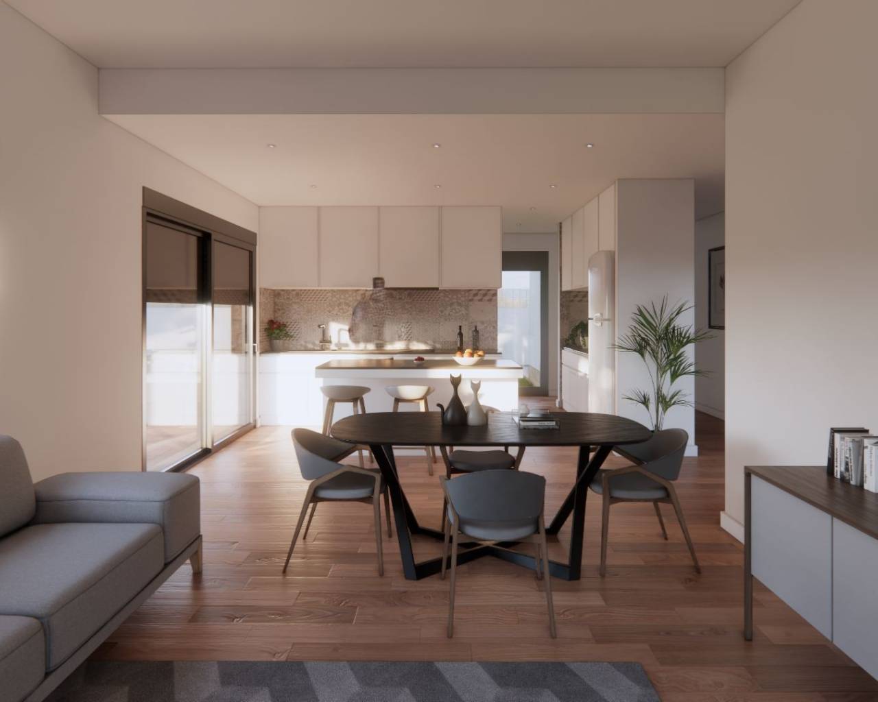Het interieur van het chalet is ontworpen met aandacht voor detail en hoogwaardige materialen. De porseleinen tegelvloeren geven een moderne en elegante uitstraling, terwijl elektrische rolluiken en de video-intercom comfort en veiligheid bieden. Ingebouwde kasten bieden veel opbergruimte en zorgen voor orde en esthetiek in huis. De voorinstallatie van airconditioning zorgt ervoor dat het binnenklimaat altijd aangenaam is en zich aanpast aan de behoeften van elk seizoen.