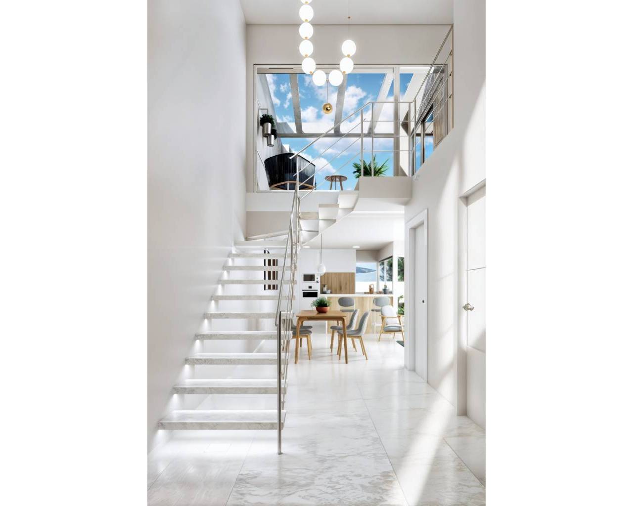 De buitenruimtes van deze twee-onder-een-kapwoningen in Alfaz del Pi zijn ontworpen om optimaal te genieten van het mediterrane klimaat. Elke woning heeft een privétuin, ideaal om een persoonlijke groene ruimte te creëren of om buitenmomenten met het gezin te beleven. Bovendien bieden de terrassen een perfecte plek om te ontspannen of sociale bijeenkomsten te organiseren. Voor degenen die op zoek zijn naar een extra vleugje luxe, is er de optie om een privézwembad toe te voegen, wat aanzienlijke waarde toevoegt aan het pand en de mogelijkheid biedt om te genieten van een verfrissende duik in de privacy van uw eigen huis.