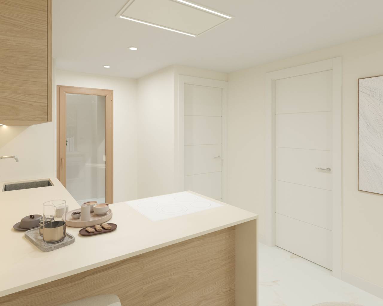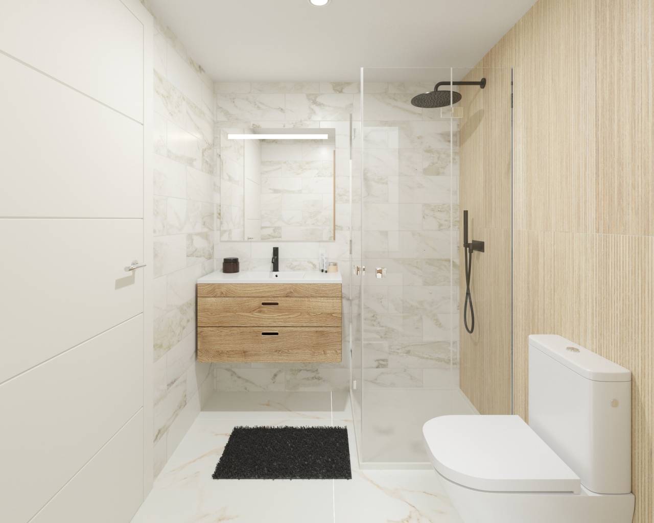 Binnen zijn de rijtjeshuizen uitgerust met kenmerken die stijl en functionaliteit combineren. De vloeren van porseleinen tegels geven een moderne uitstraling en zijn gemakkelijk te onderhouden, ideaal voor dagelijks gebruik. De inbouwkasten in de slaapkamers bieden efficiënte opbergruimte, waardoor de ruimtes netjes en rommelvrij blijven. De indeling met drie slaapkamers en drie badkamers is ontworpen om maximaal comfort en privacy te bieden, aangepast aan de behoeften van gezinnen of koppels die op zoek zijn naar een ruim en goed georganiseerd huis. Elk detail van het interieur is ontworpen om een gezellige en praktische sfeer te bieden, waardoor deze rijtjeshuizen een aantrekkelijke optie zijn voor degenen die op zoek zijn naar een woning in Dolores.