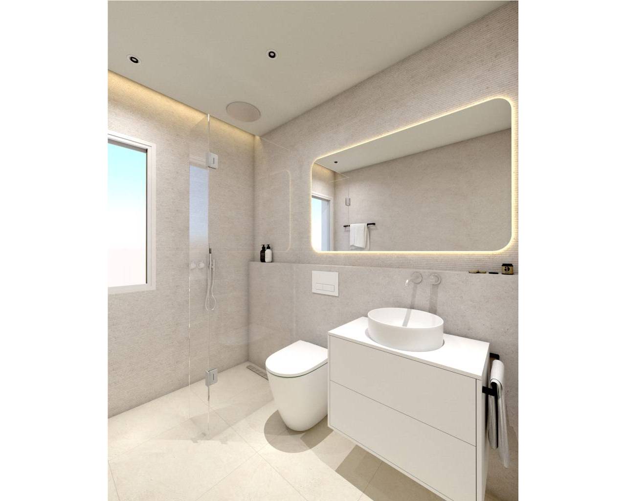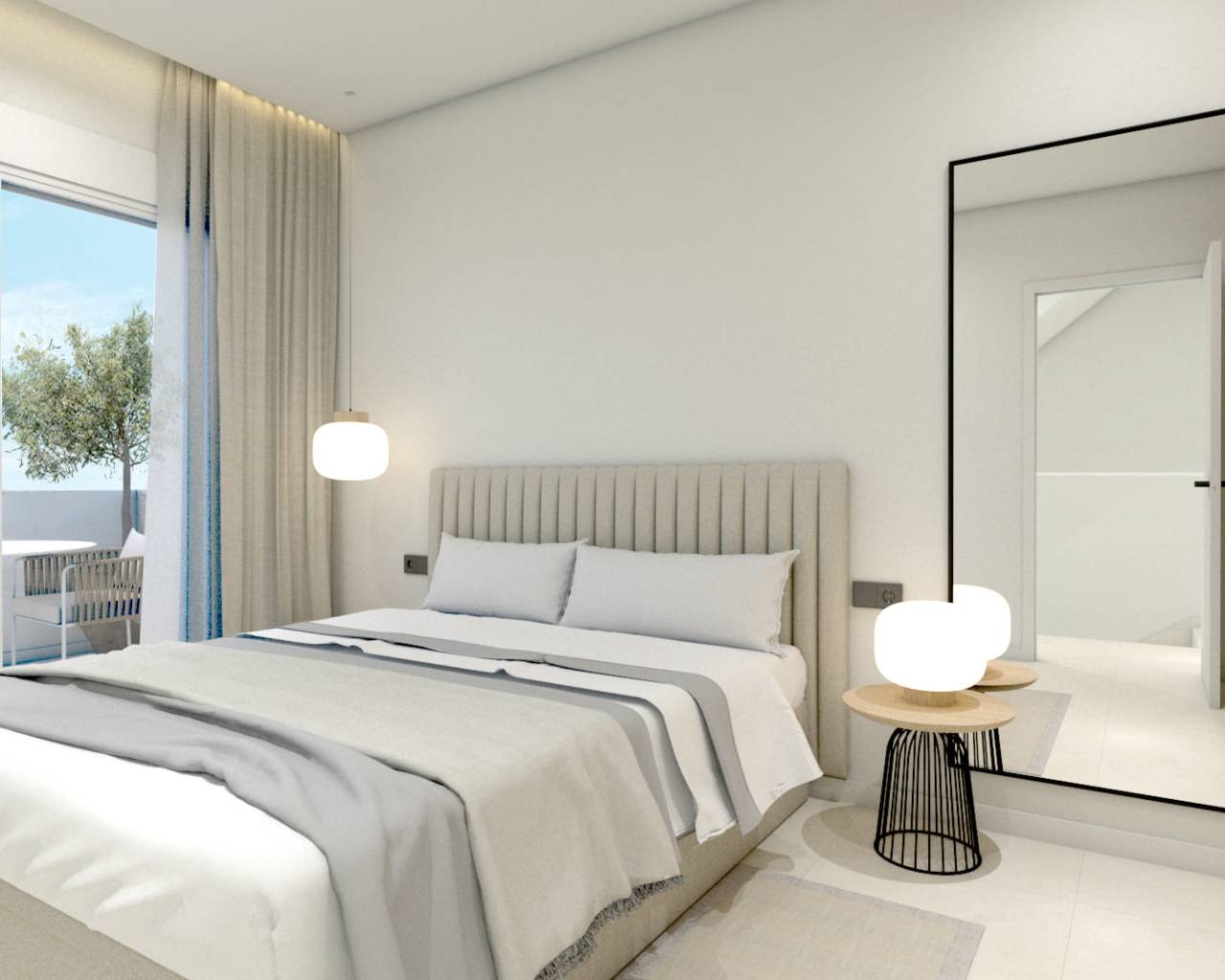 De buitenruimtes van deze woningen zijn ontworpen om optimaal te genieten van het mediterrane klimaat. Elke woning heeft een privézwembad, ideaal om af te koelen tijdens de warme zomerdagen. De ruime terrassen bieden een perfecte ruimte om te ontspannen of gasten te vermaken, terwijl het solarium een extra plek biedt om in volledige privacy van de zon te genieten. De aangelegde tuinen complementeren de omgeving en creëren een groene oase die uitnodigt tot rust en contemplatie.
