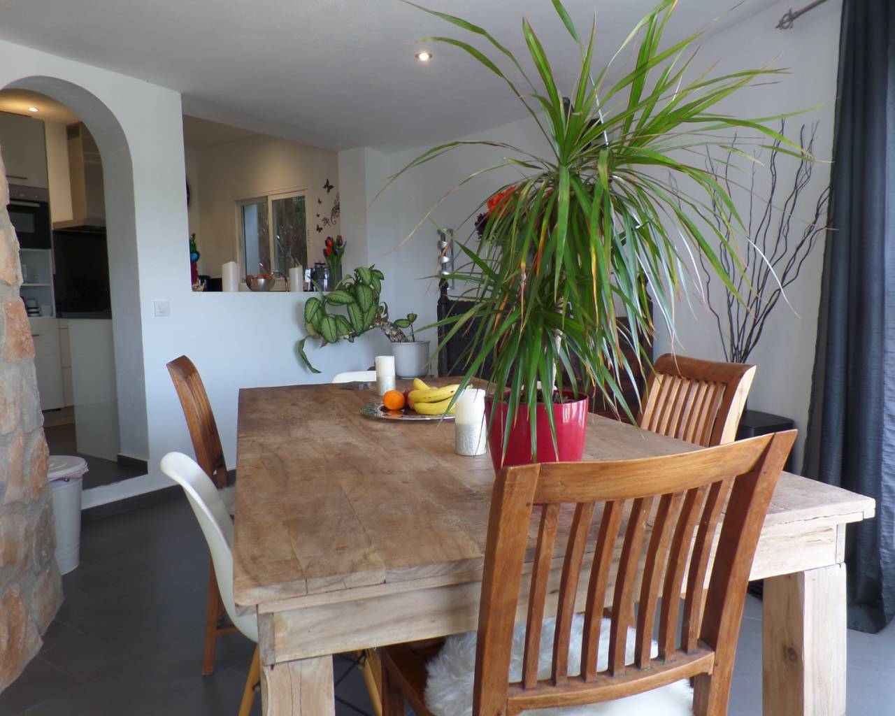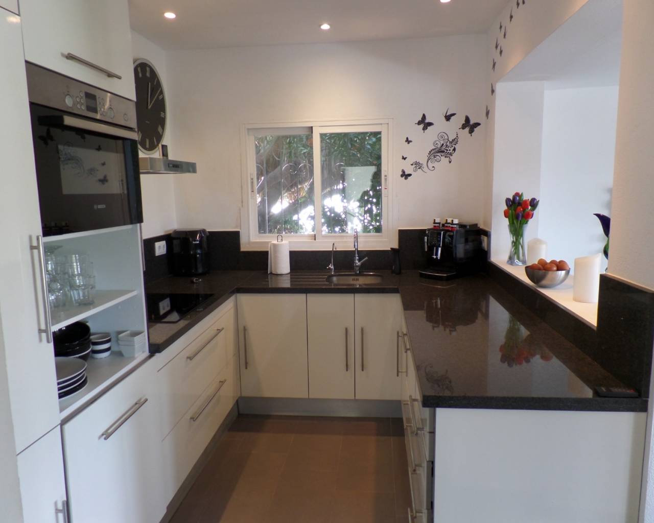 Gerenoveerde villa in mediterrane stijl te koop in Buenavista, Benissa. Deze prachtige, ruime villa met gastenverblijf staat op een perceel van 674 m² met een bebouwde oppervlakte van meer dan 219 m². Centraal gelegen tussen Moraira en Calpe, is het pand verdeeld in twee aparte wooneenheden en biedt het een uitstekende mogelijkheid voor gezinnen of mensen die op zoek zijn naar een permanente woning, investering of verhuurmogelijkheid. De hoofdwoning beschikt over een grote woonkamer, een glazen terras, een aparte keuken, 3 slaapkamers en 2 complete badkamers. Op de begane grond bevindt zich een woon-eetkamer met open keuken, 2 slaapkamers, een complete badkamer, een extra gastentoilet en toegang tot het zwembad. De woning is voorzien van extra's zoals dub glazing, centrale verwarming, een pelletkachel en een uitstekende ligging op het zuiden, wat het hele jaar door zonneschijn garandeert. Daarnaast is de villa uitgerust met split-airconditioning in diverse kamers, zodat u het hele jaar door van comfort kunt genieten. Het zwembad van meer dan 25 m² met terras biedt een prachtig, onbelemmerd uitzicht over de vallei en de zee en zorgt voor een privé en ontspannen omgeving. Buiten de woning zijn er diverse buitenruimtes. Er is een privézwembad, meerdere terrassen, een barbecue, een fraai aangelegde tuin en een afgesloten carport van 36 m². Neem voor meer informatie en om een bezichtiging te regelen contact met ons op.