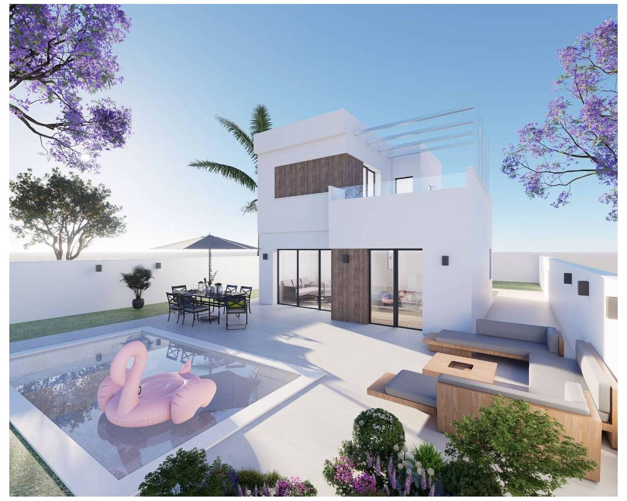 Set on independent plots averaging over 300 m², these villas provide ample outdoor space for relaxation, al fresco dining, or simply enjoying the Costa Blanca sun. The generous 50 m² terrace is perfect for morning coffee or evening sunsets, and buyers can opt to install a private swimming pool, transforming the garden into a personal oasis. A private parking space is included for convenience.